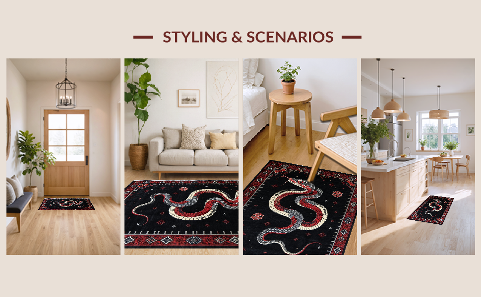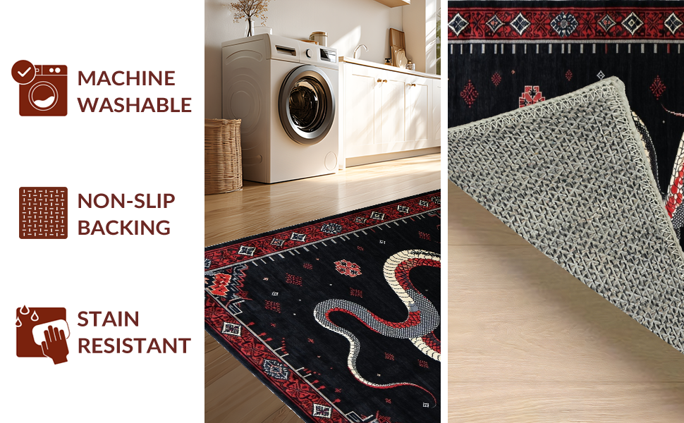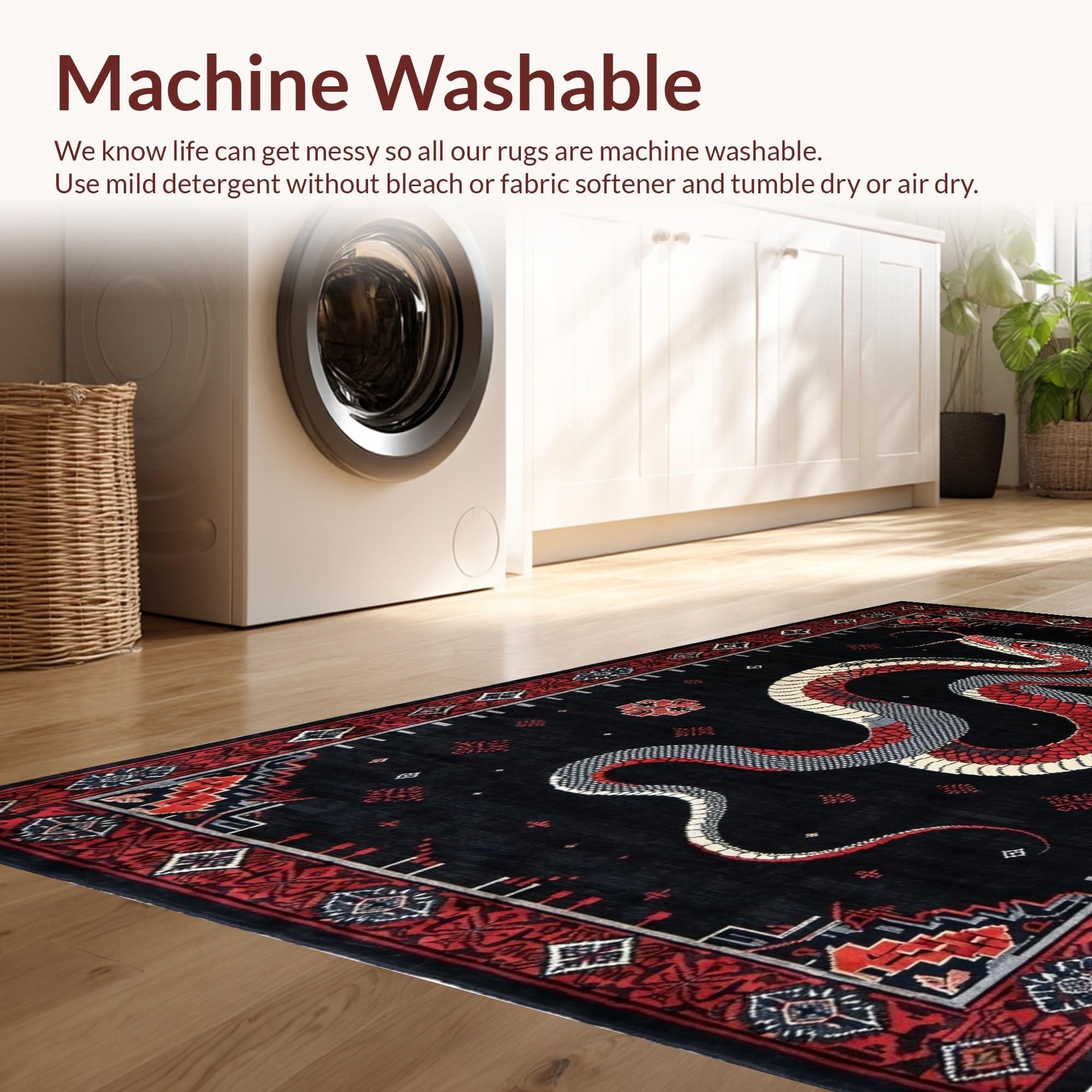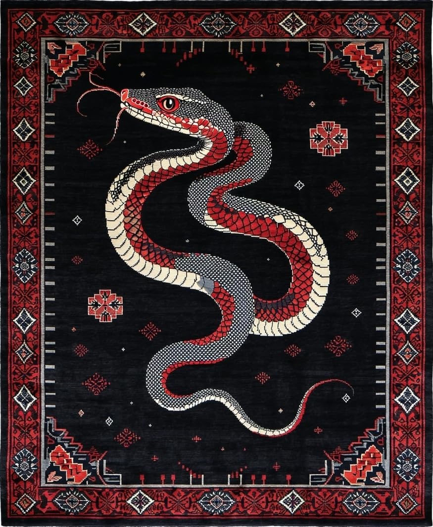 Ultra Soft Area Rug, Non Slip, Stain Resistant, Washable Area Rugs for Living Room, Bedroom, Stylish Modern Snake Graphic(Black) Overview: