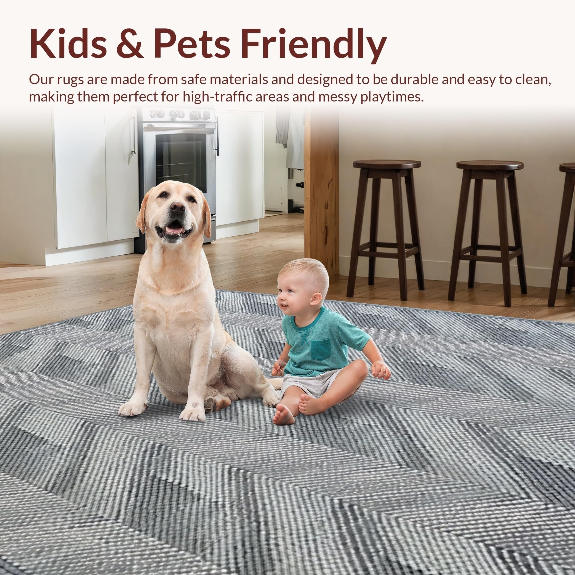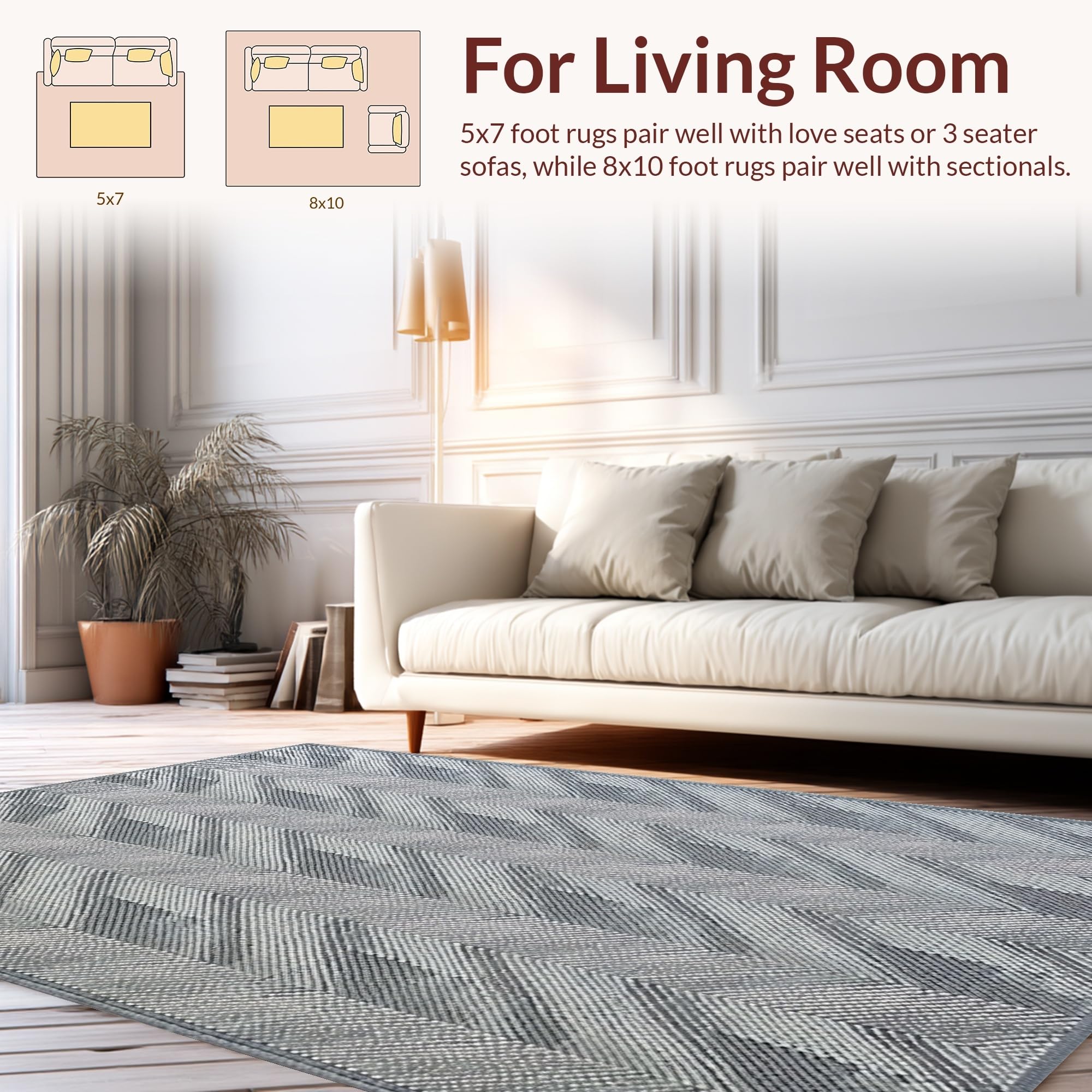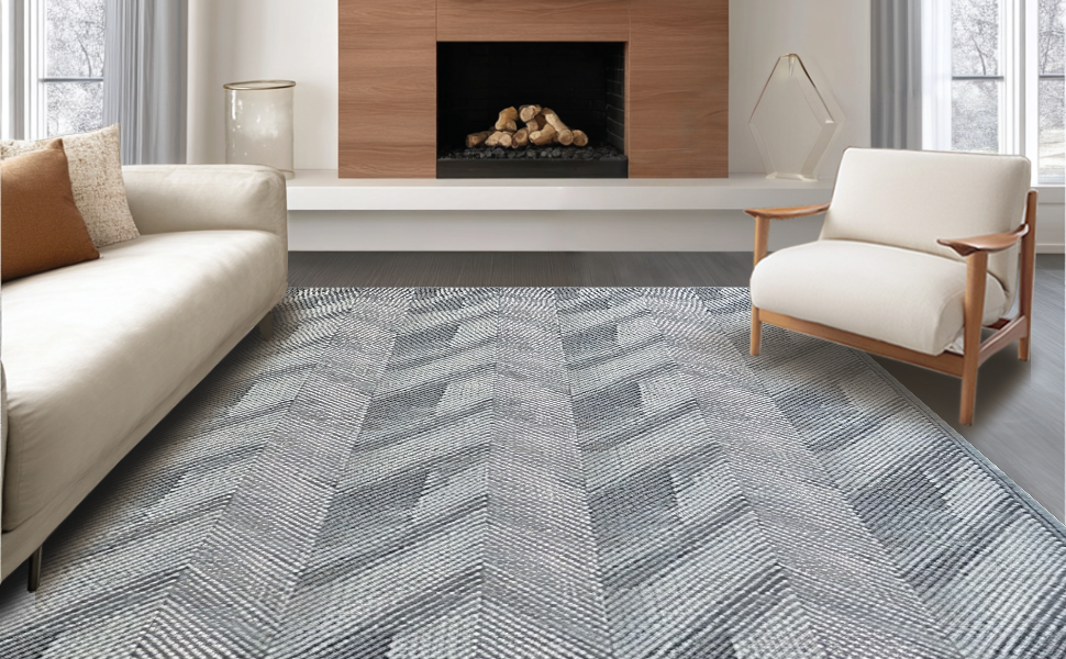 Ultra Soft Area Rug, Non Slip, Stain Resistant, Washable Area Rugs for Living Room, Bedroom, Stylish Modernist Chevron Statement(Gray) Overview: