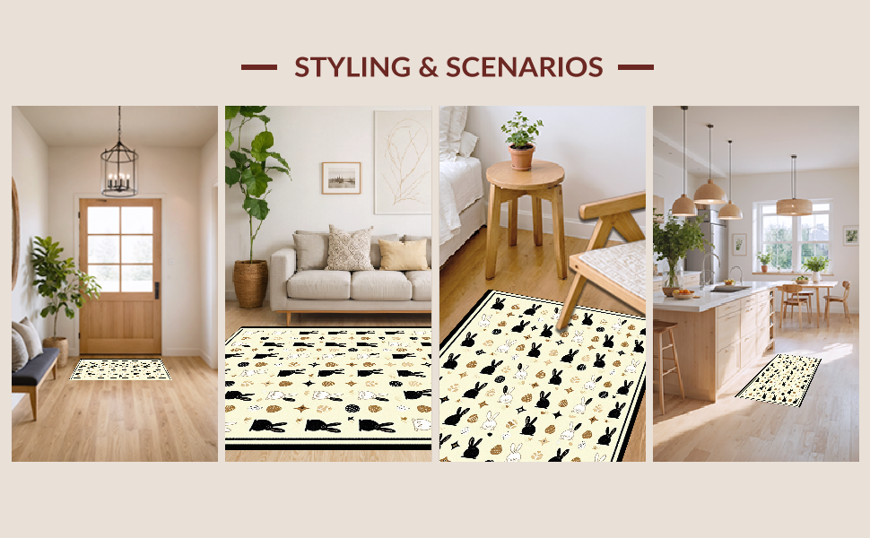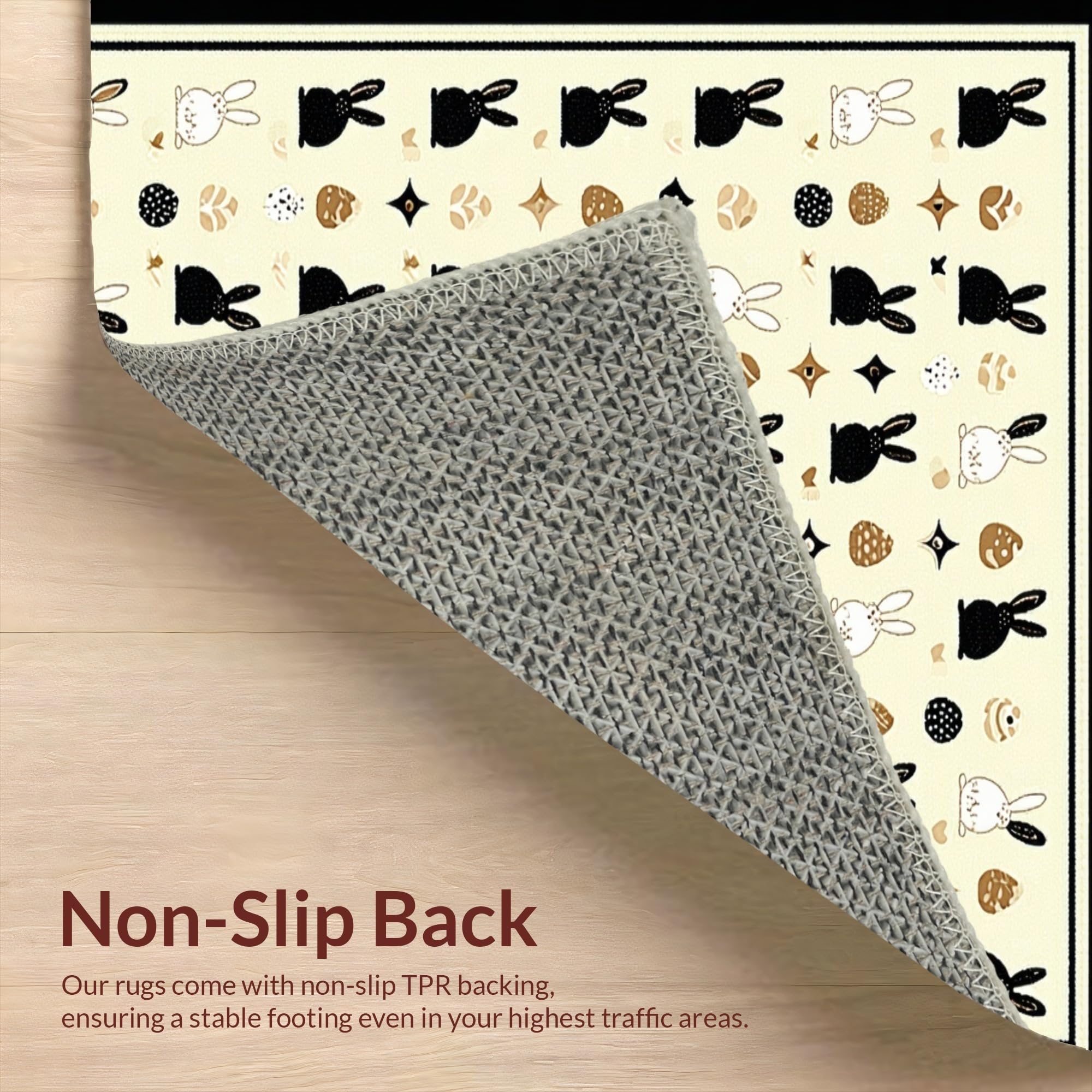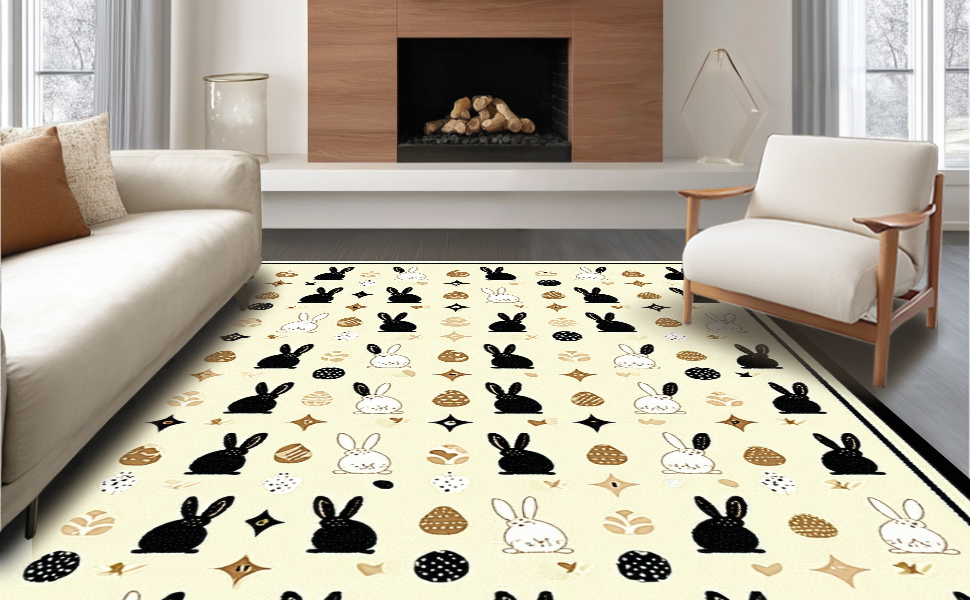 Ultra Soft Area Rug, Non Slip, Stain Resistant, Washable Area Rugs for Living Room, Bedroom, Stylish Monochrome Bunny Illustration(Beige) Overview: