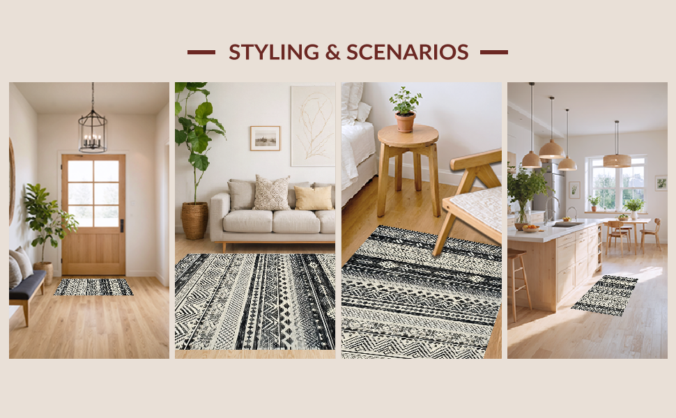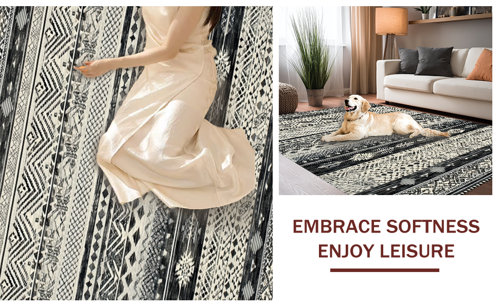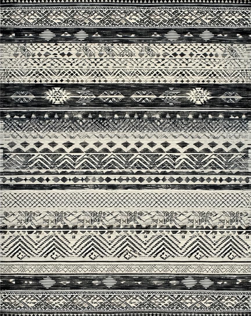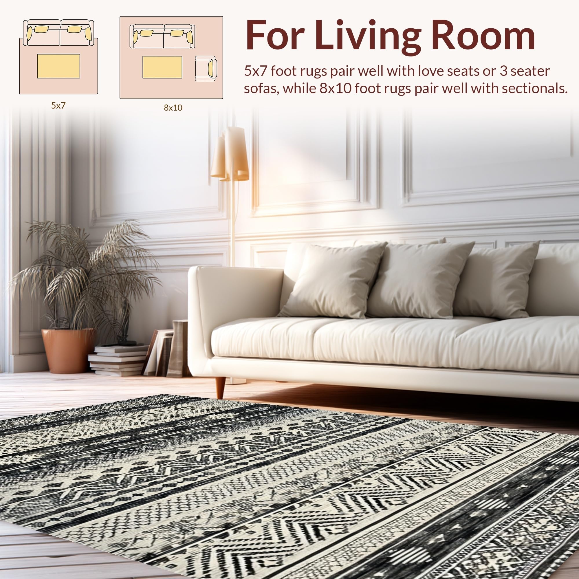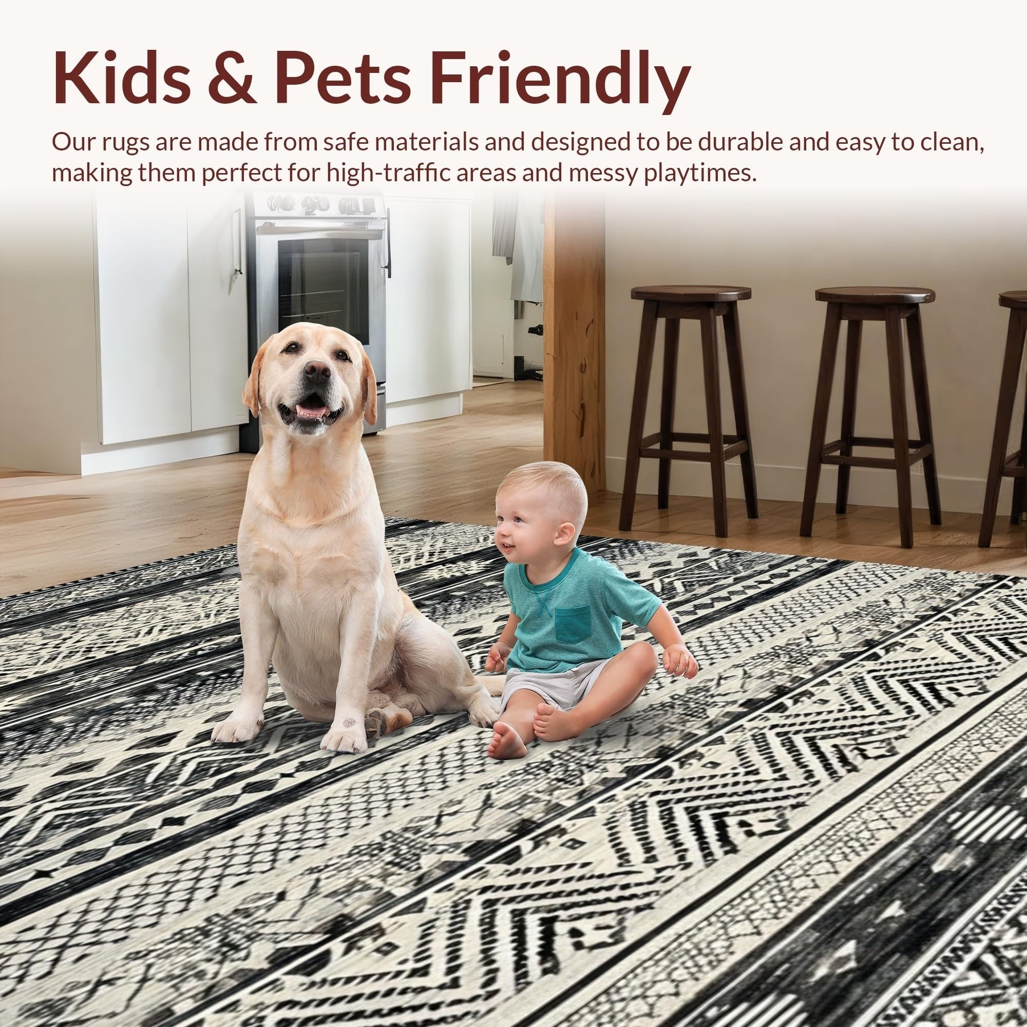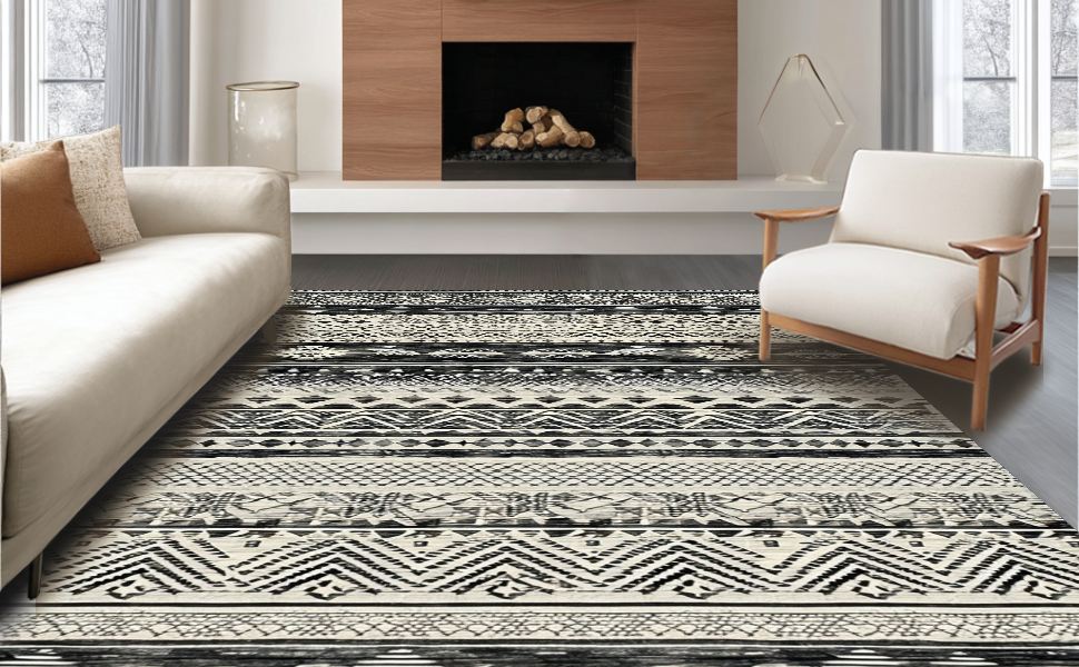 Ultra Soft Area Rug, Non Slip, Stain Resistant, Washable Area Rugs for Living Room, Bedroom, Stylish Monochrome Diamond Motif(Black) Overview: