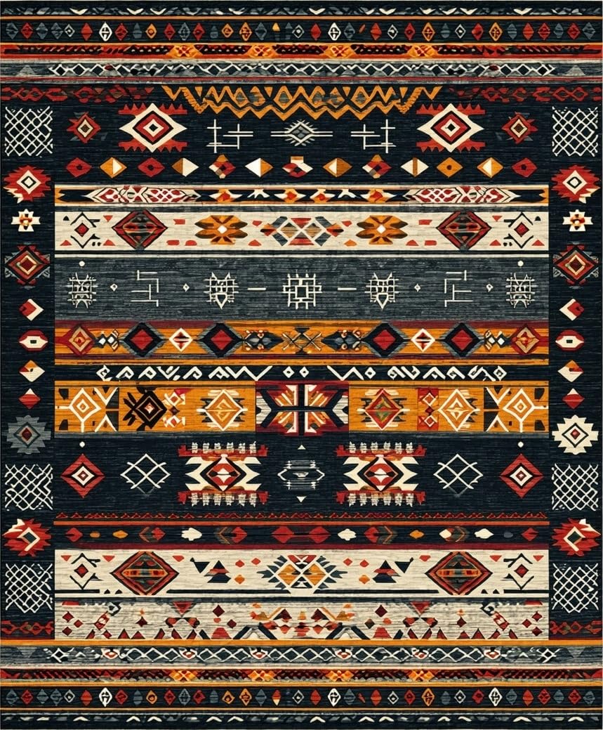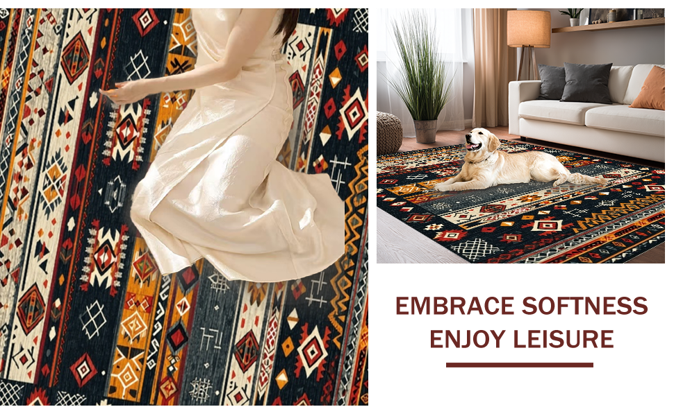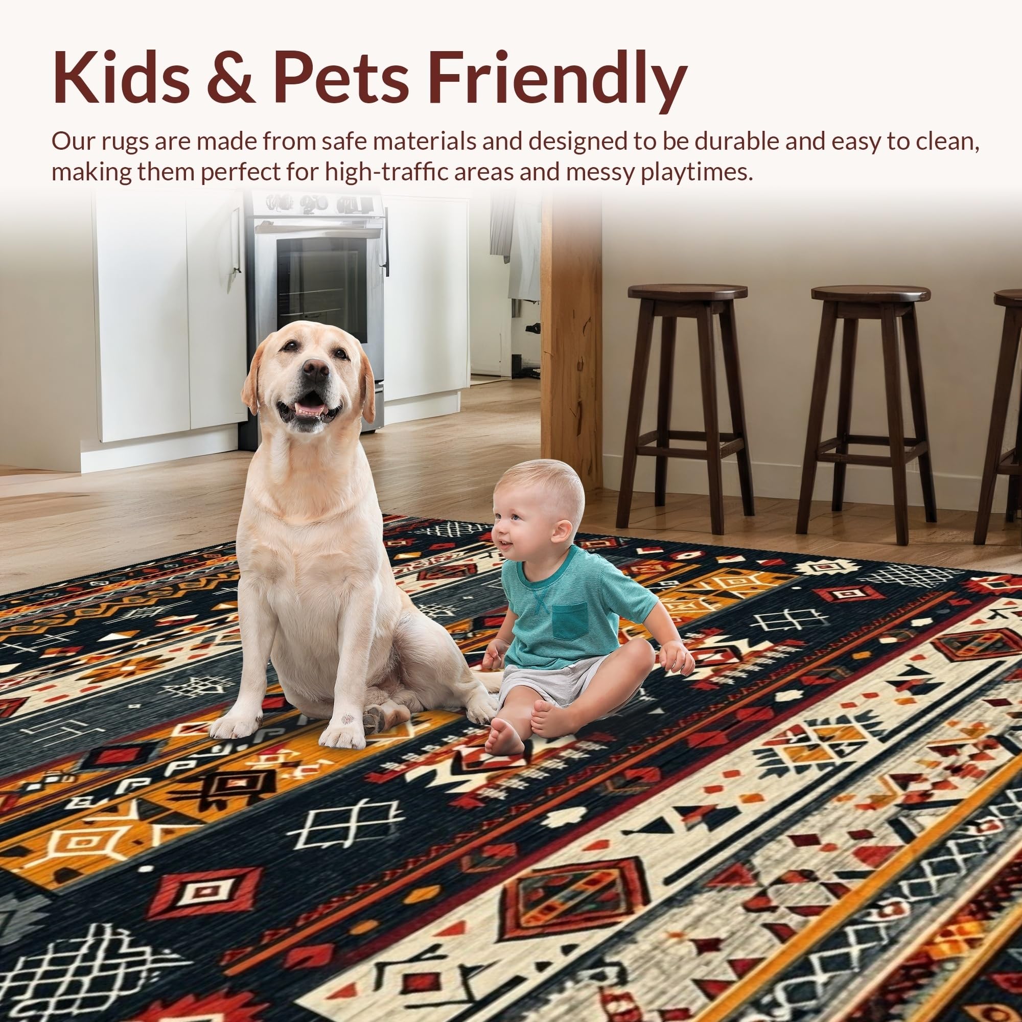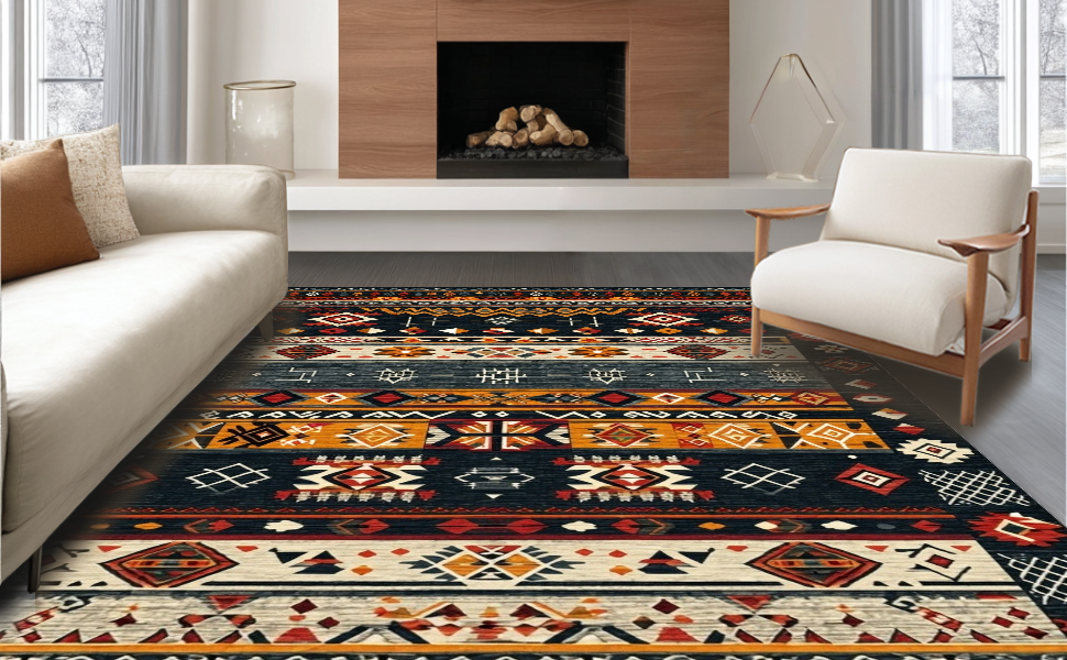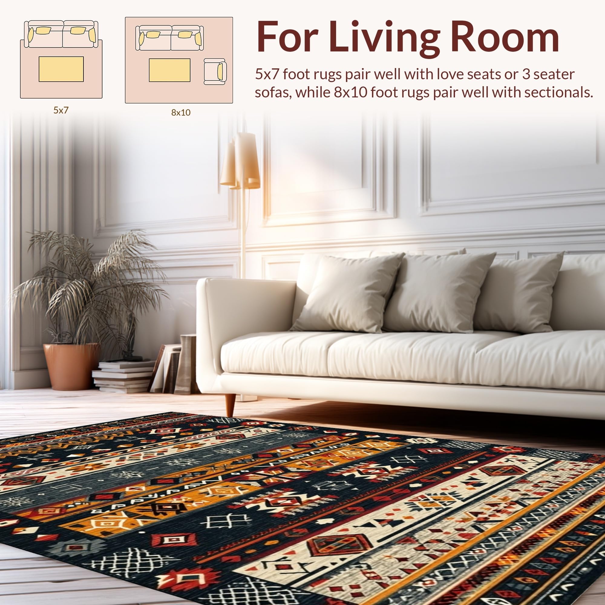 Ultra Soft Area Rug, Non Slip, Stain Resistant, Washable Area Rugs for Living Room, Bedroom, Stylish Monochrome Ethnic Design(Black) Overview: