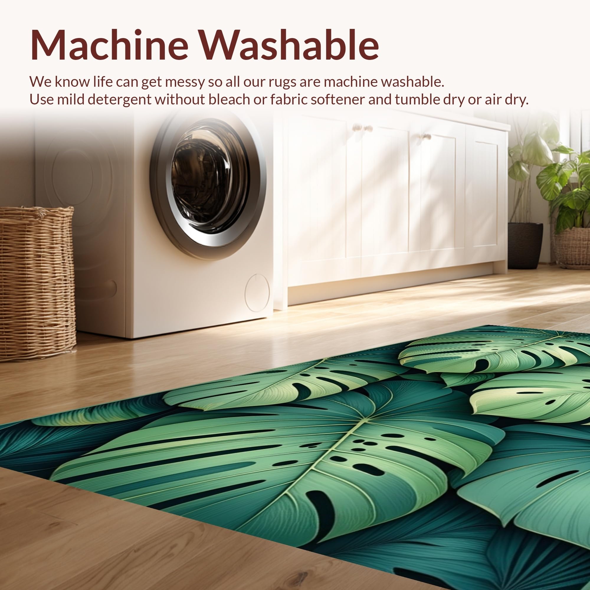 - Machine Washable: Our rugs can be easily thrown in the wash machine.