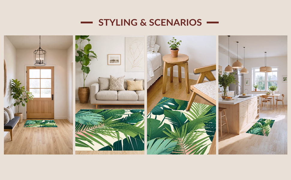 Ultra Soft Area Rug, Non Slip, Stain Resistant, Washable Area Rugs for Living Room, Bedroom, Stylish Nature-Inspired Bath Decor(Green) Overview: