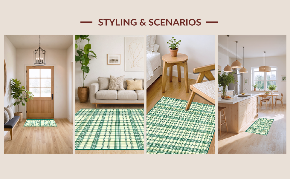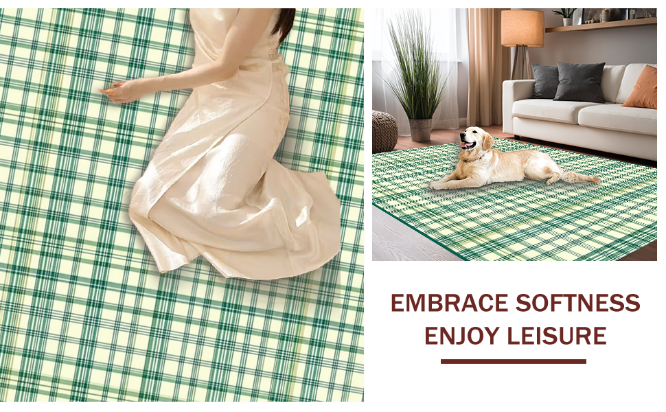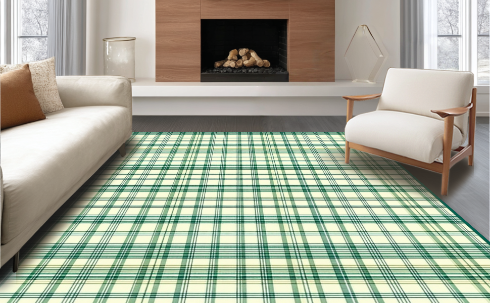 Ultra Soft Area Rug, Non Slip, Stain Resistant, Washable Area Rugs for Living Room, Bedroom, Stylish Outdoor Plaid Patterned Mat(Beige) Overview:
