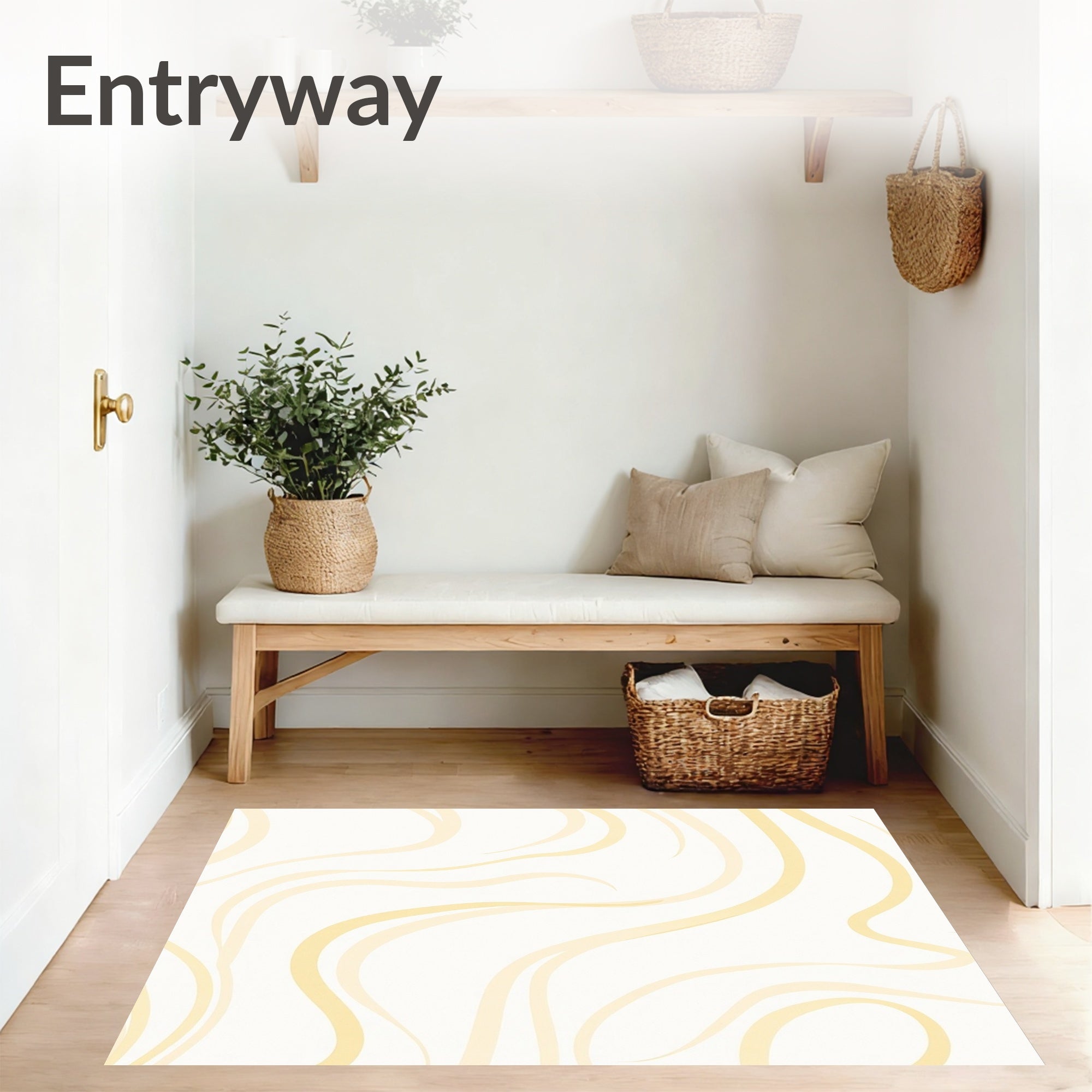 Ultra Soft Area Rug, Non Slip, Stain Resistant, Washable Area Rugs for Living Room, Bedroom, Stylish Smooth Décor Enhancement With Gentle Wave Design(Beige) Overview:
