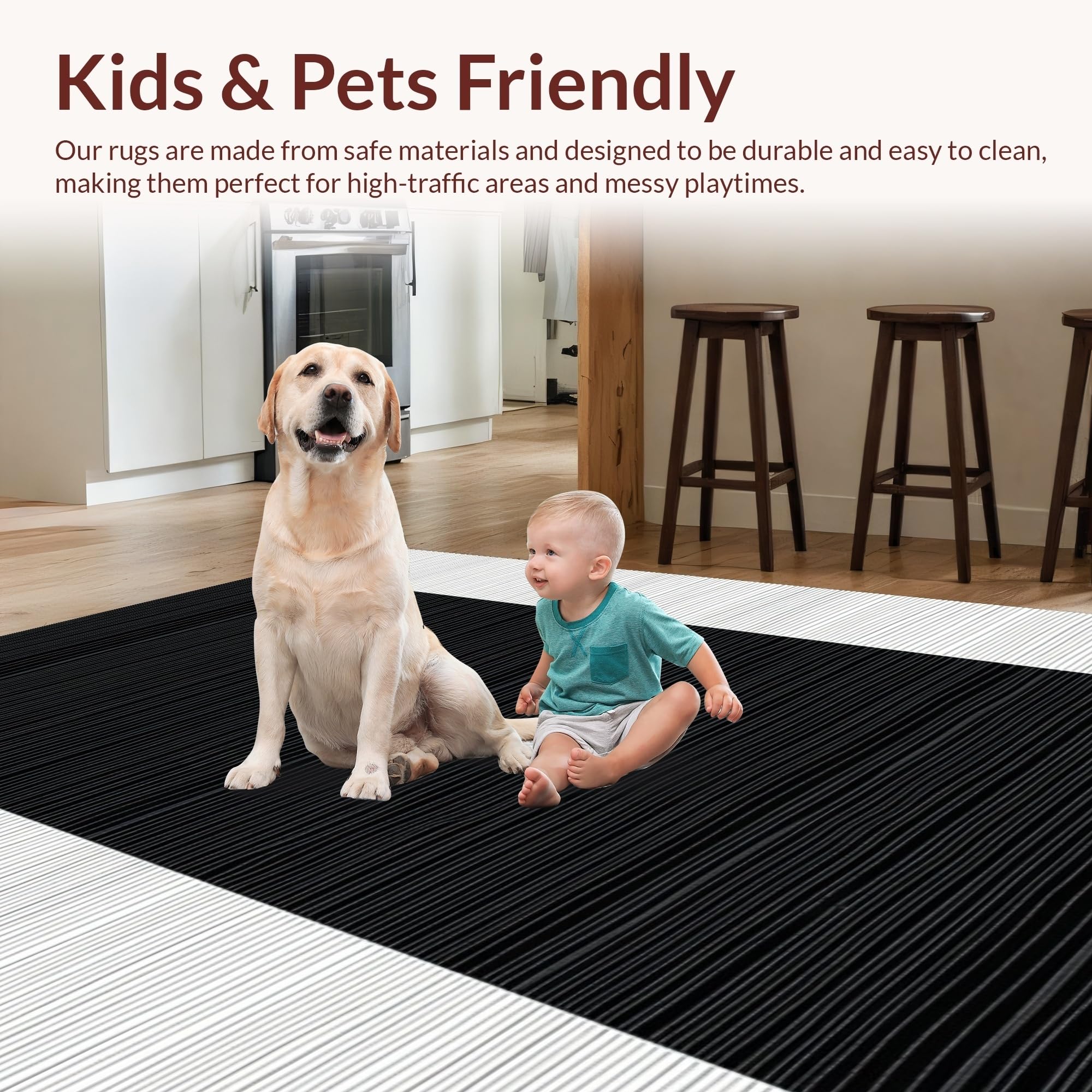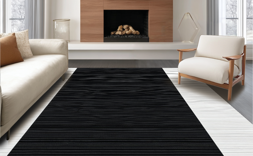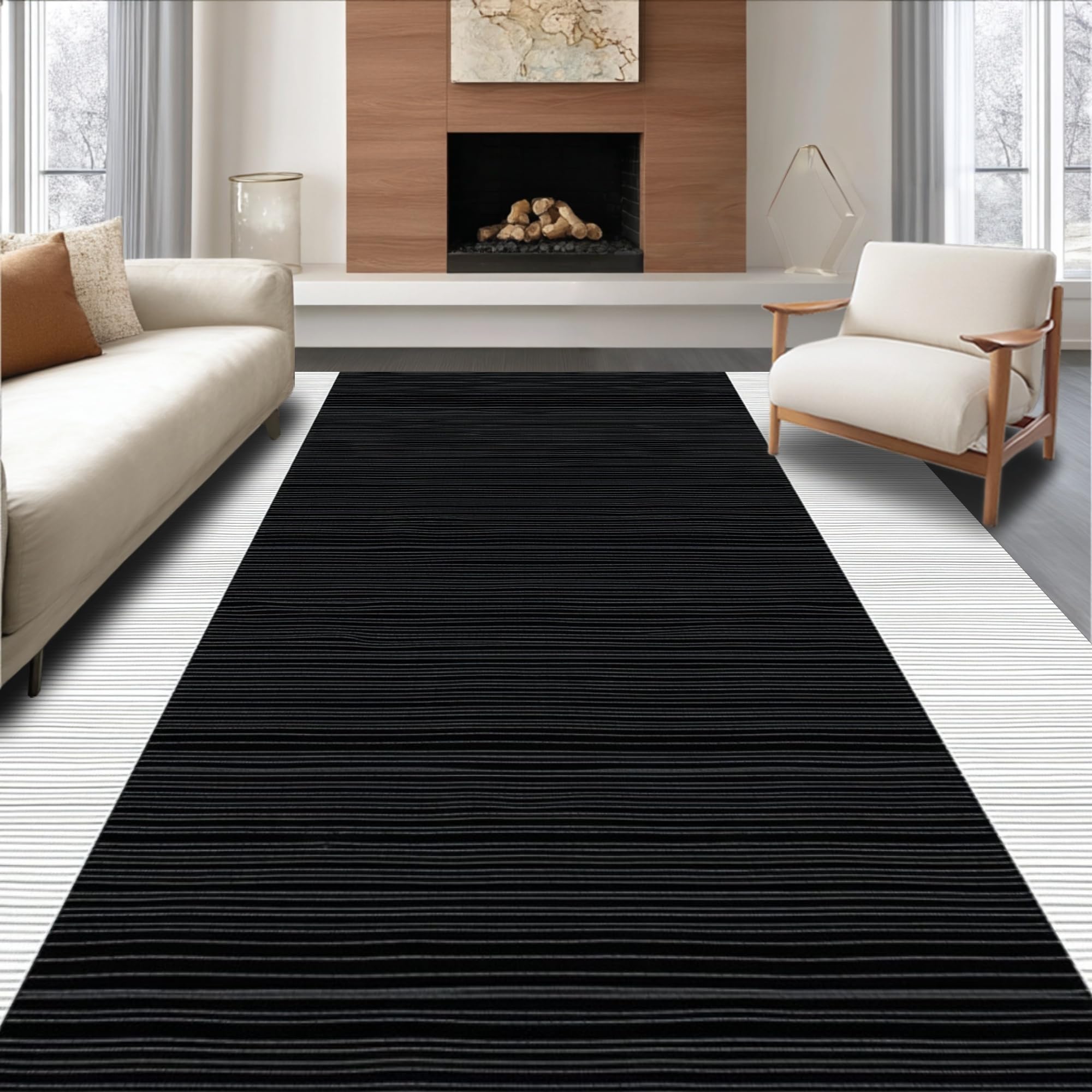 Ultra Soft Area Rug, Non Slip, Stain Resistant, Washable Area Rugs for Living Room, Bedroom, Stylish Striped Modern Graphic Influence(Black) Overview: