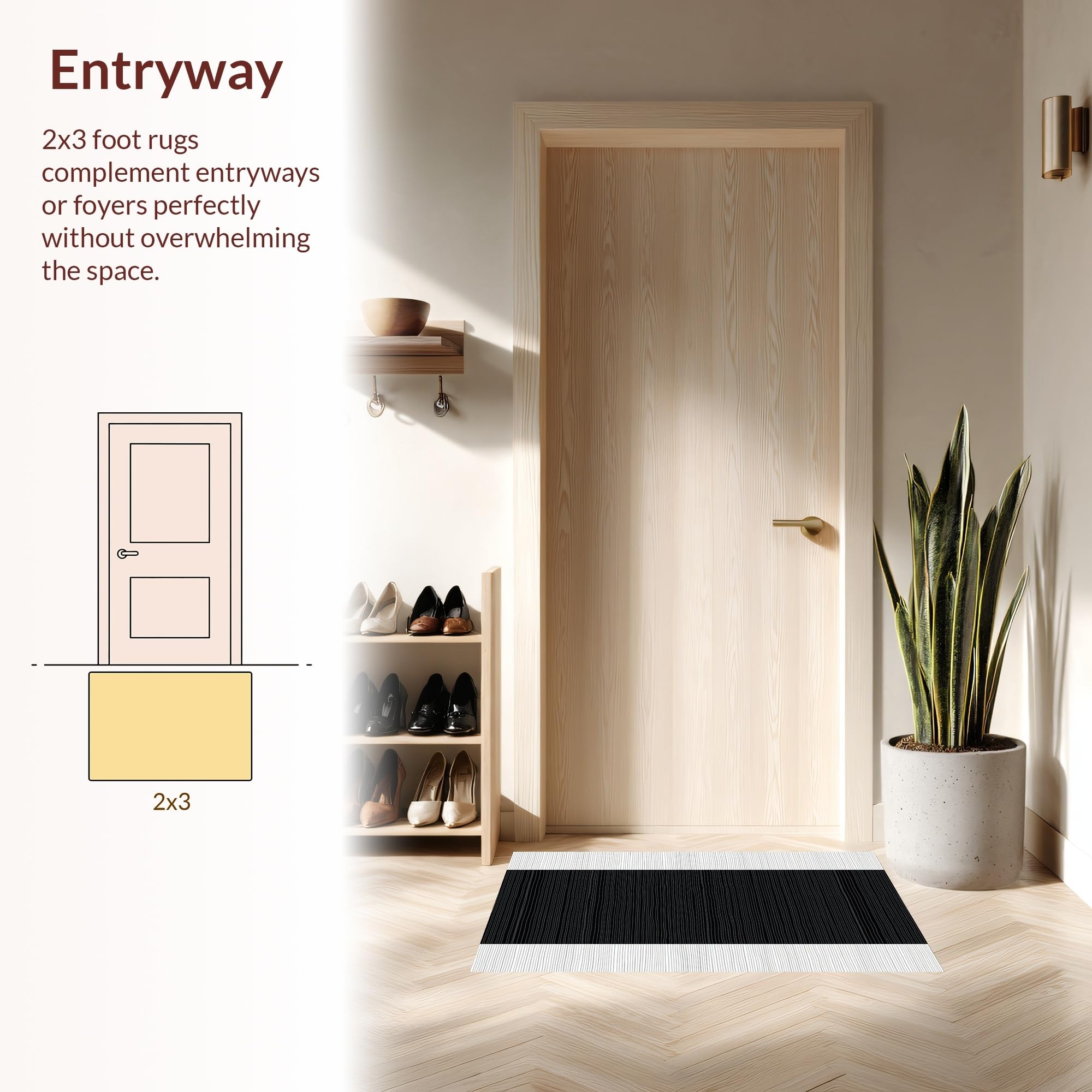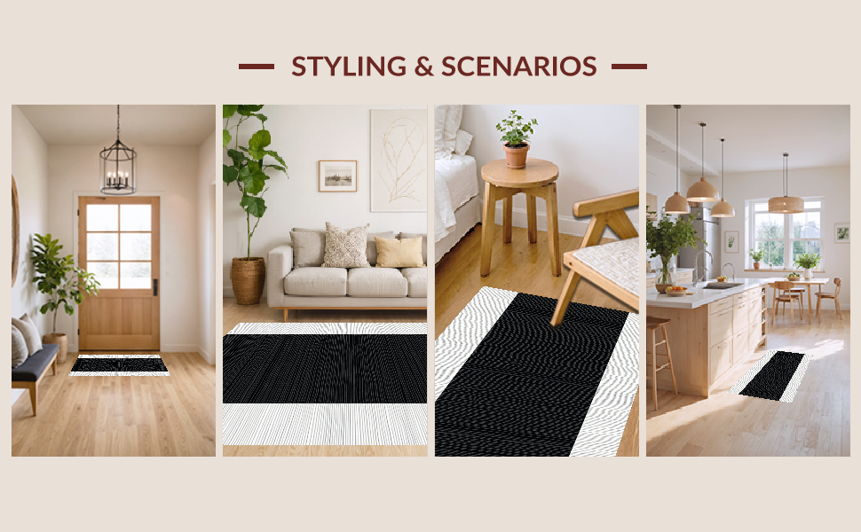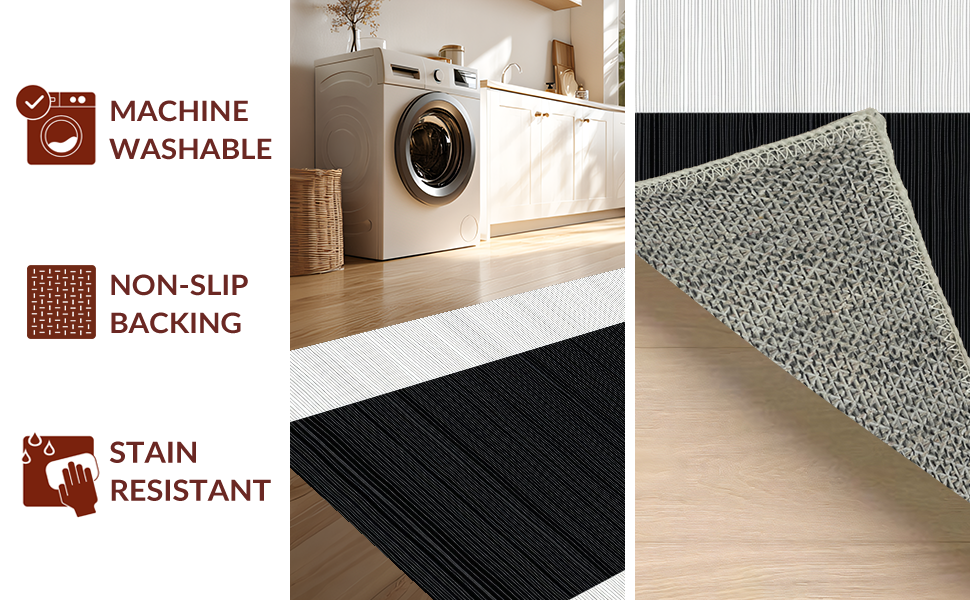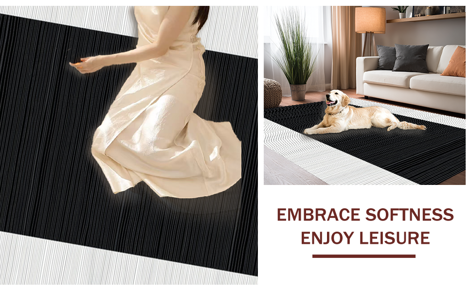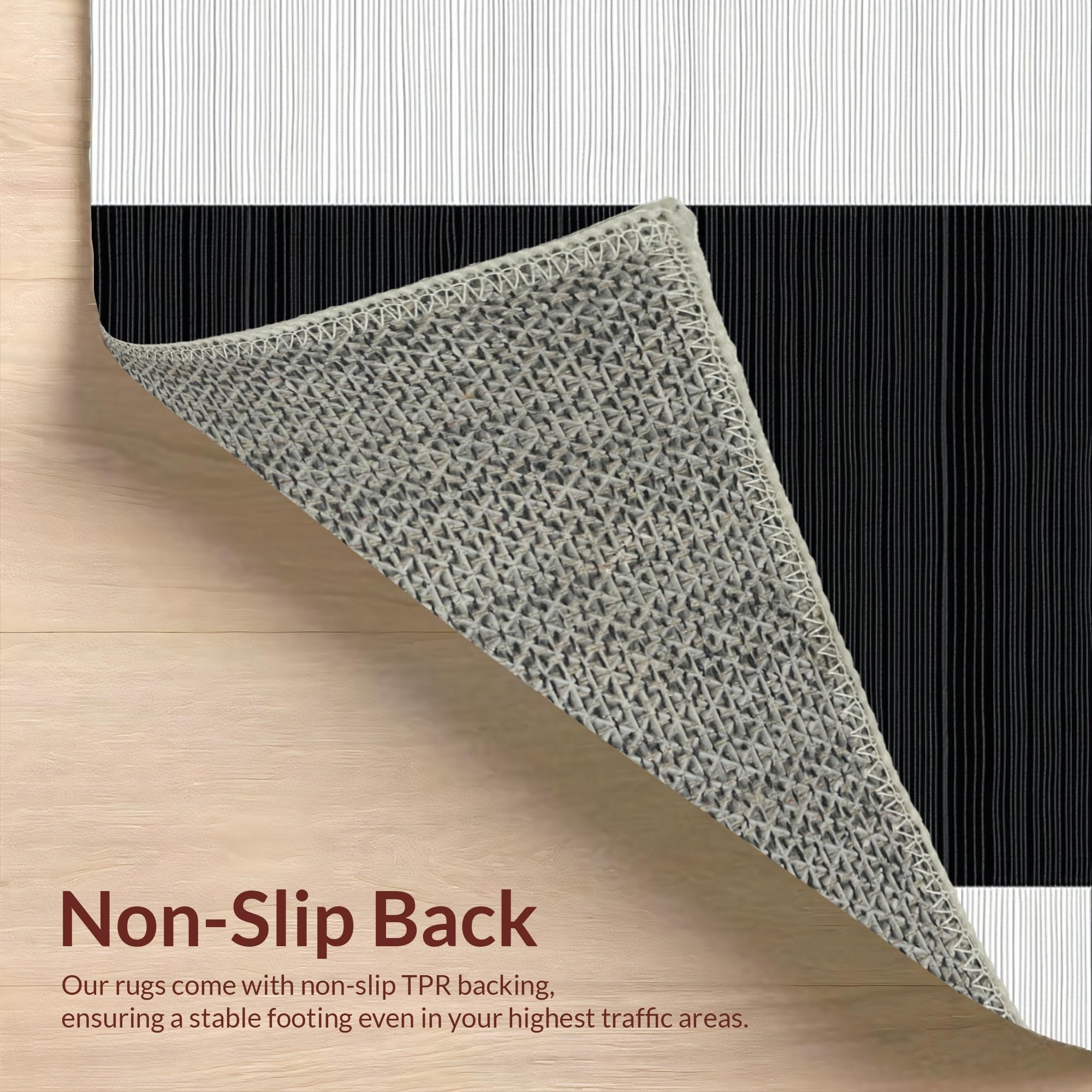Ultra Soft Area Rug, Non Slip, Stain Resistant, Washable Area Rugs for Living Room, Bedroom, Stylish Striped Modern Graphic Influence(Black) Overview: