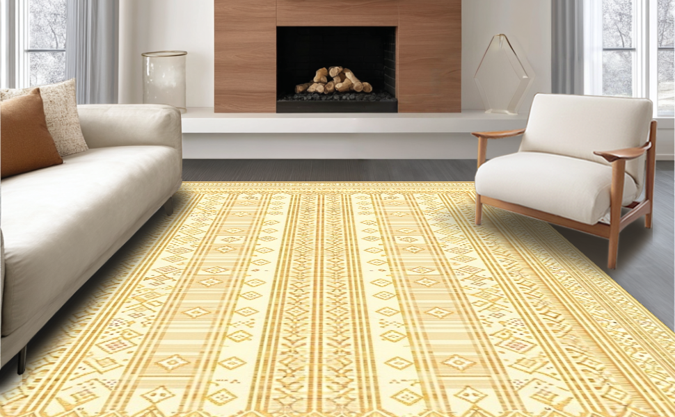 Ultra Soft Area Rug, Non Slip, Stain Resistant, Washable Area Rugs for Living Room, Bedroom, Stylish Transitional Symmetrical Shapes(Beige) Overview:
