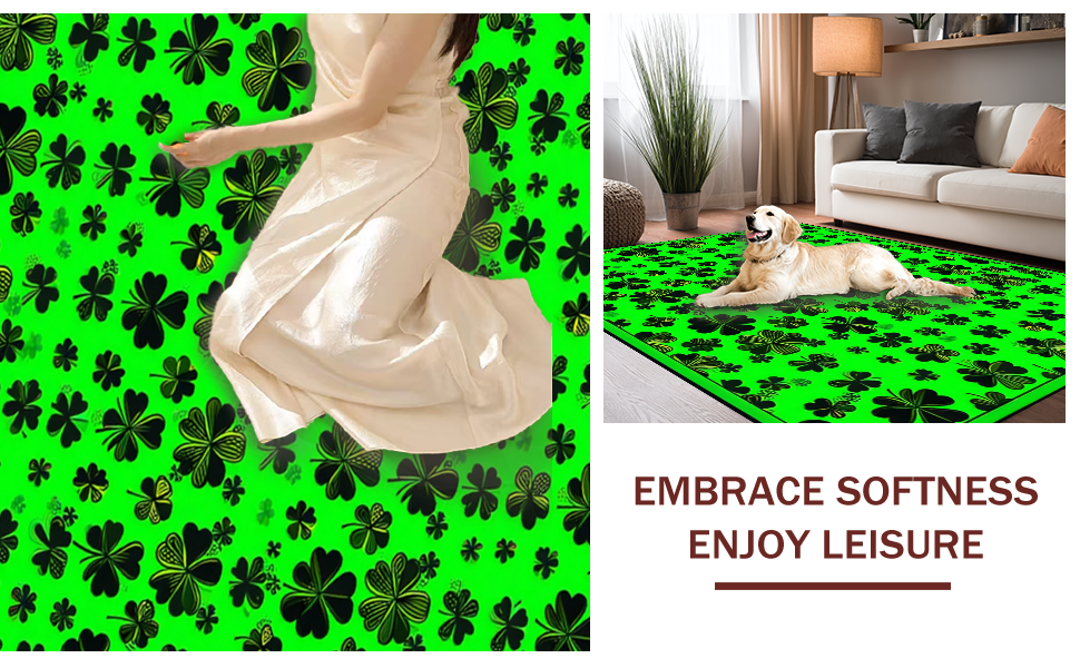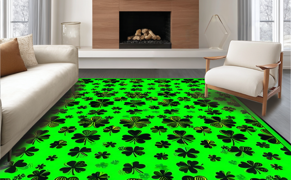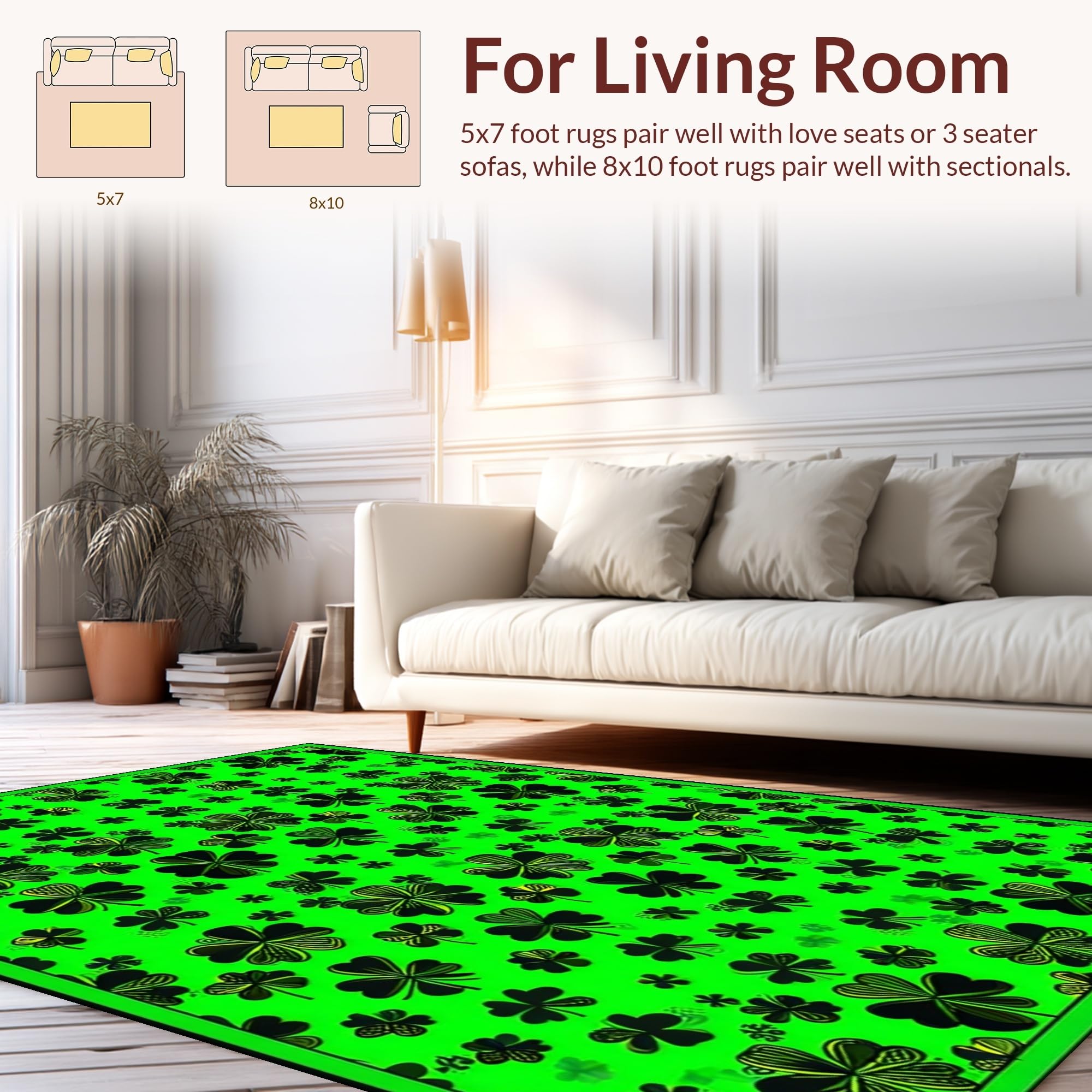 Ultra Soft Area Rug, Non Slip, Stain Resistant, Washable Area Rugs for Living Room, Bedroom, Stylish Tufted Shamrock Composition(Green) Overview: