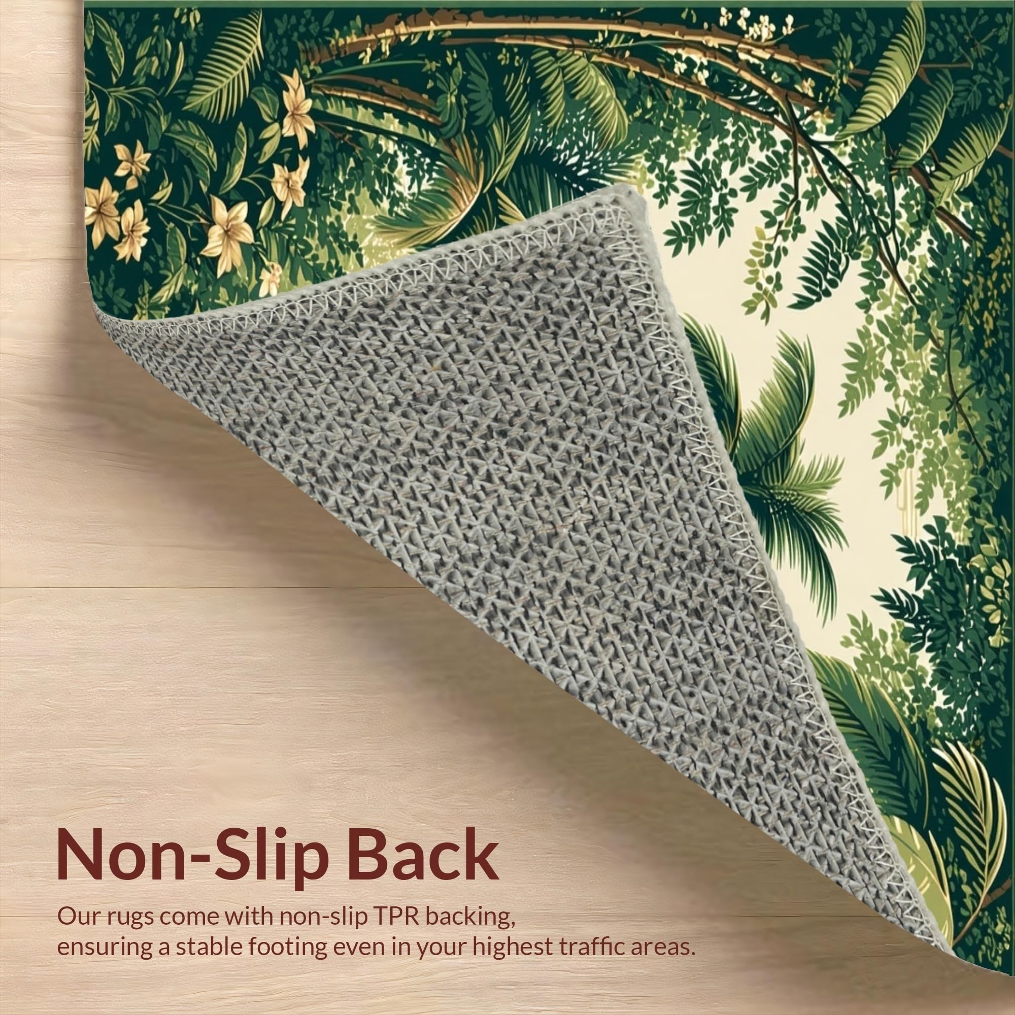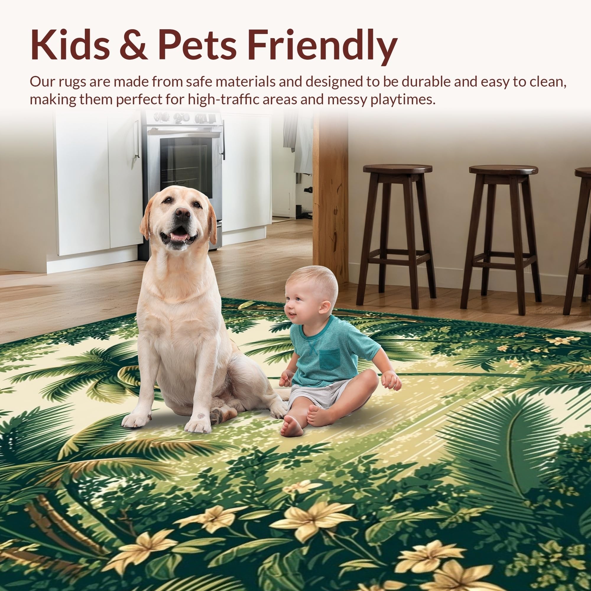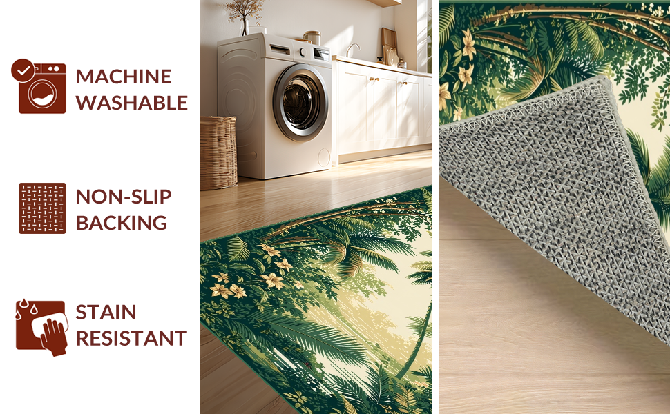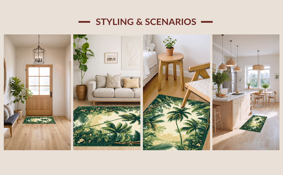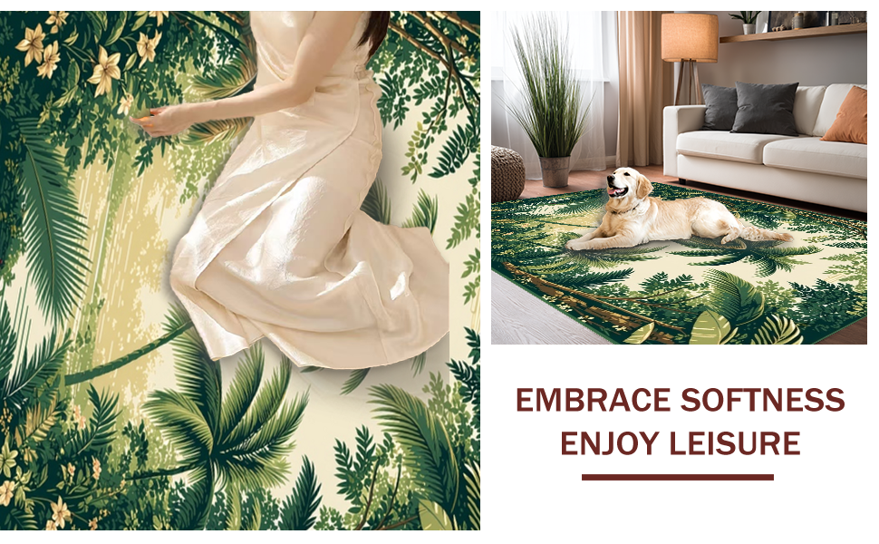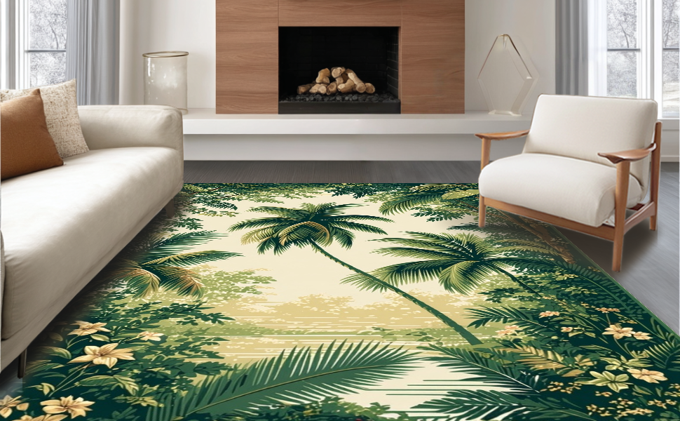 Ultra Soft Area Rug, Non Slip, Stain Resistant, Washable Area Rugs for Living Room, Bedroom, Stylish Vintage Inspired Palm Prints(Green) Overview: