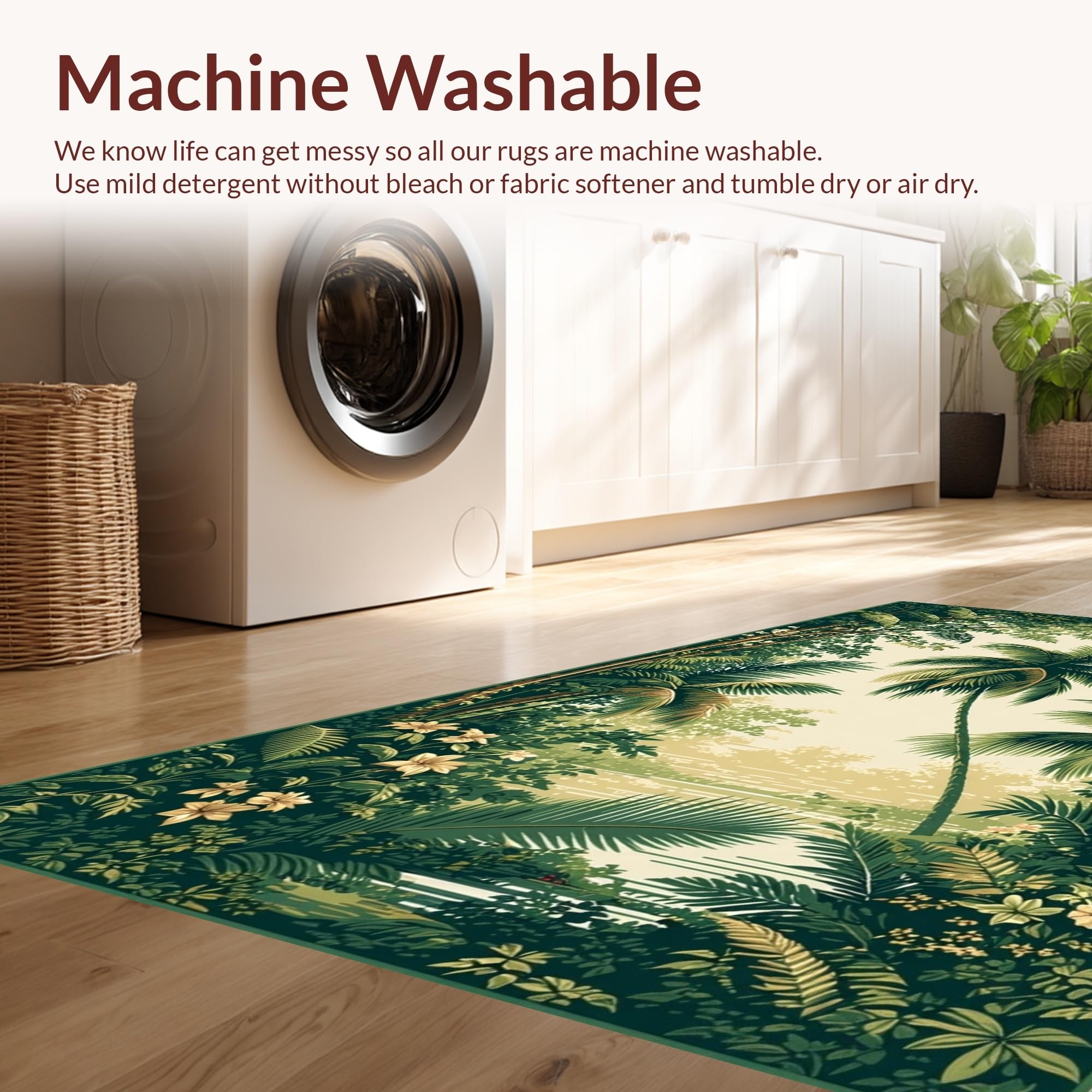 - Machine Washable: Our rugs can be easily thrown in the wash machine.