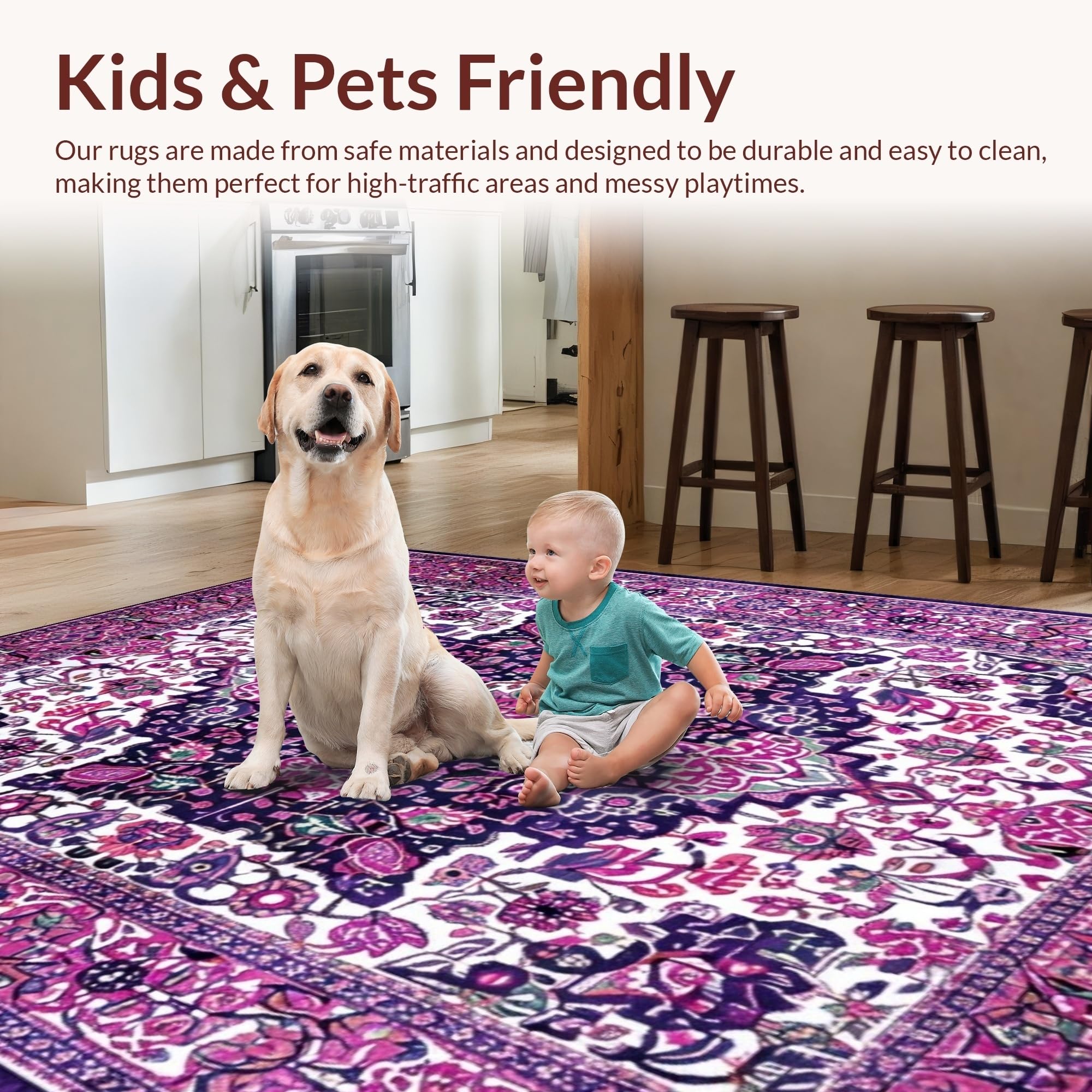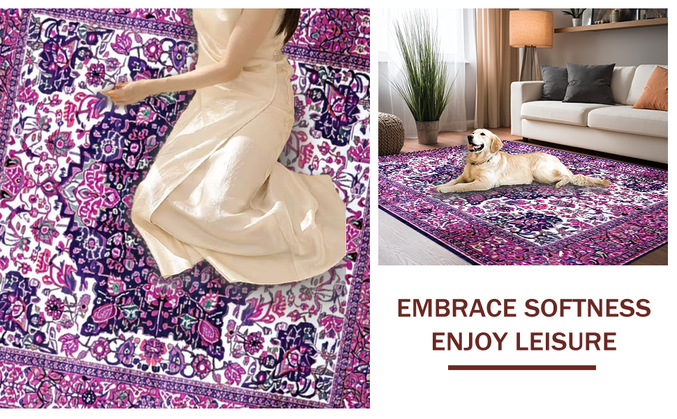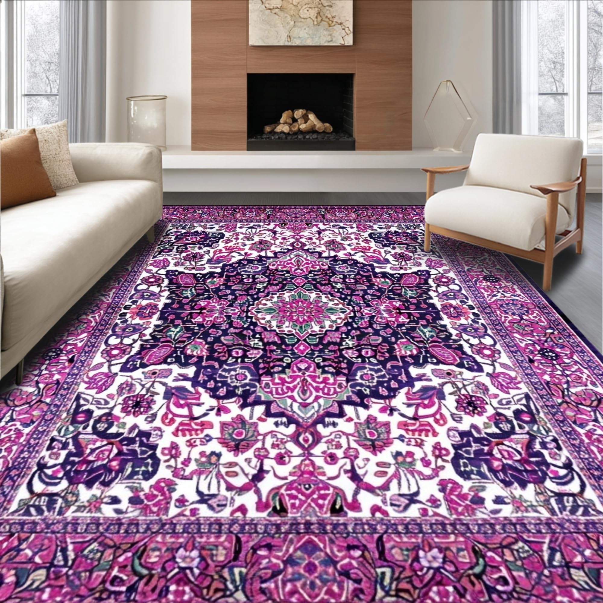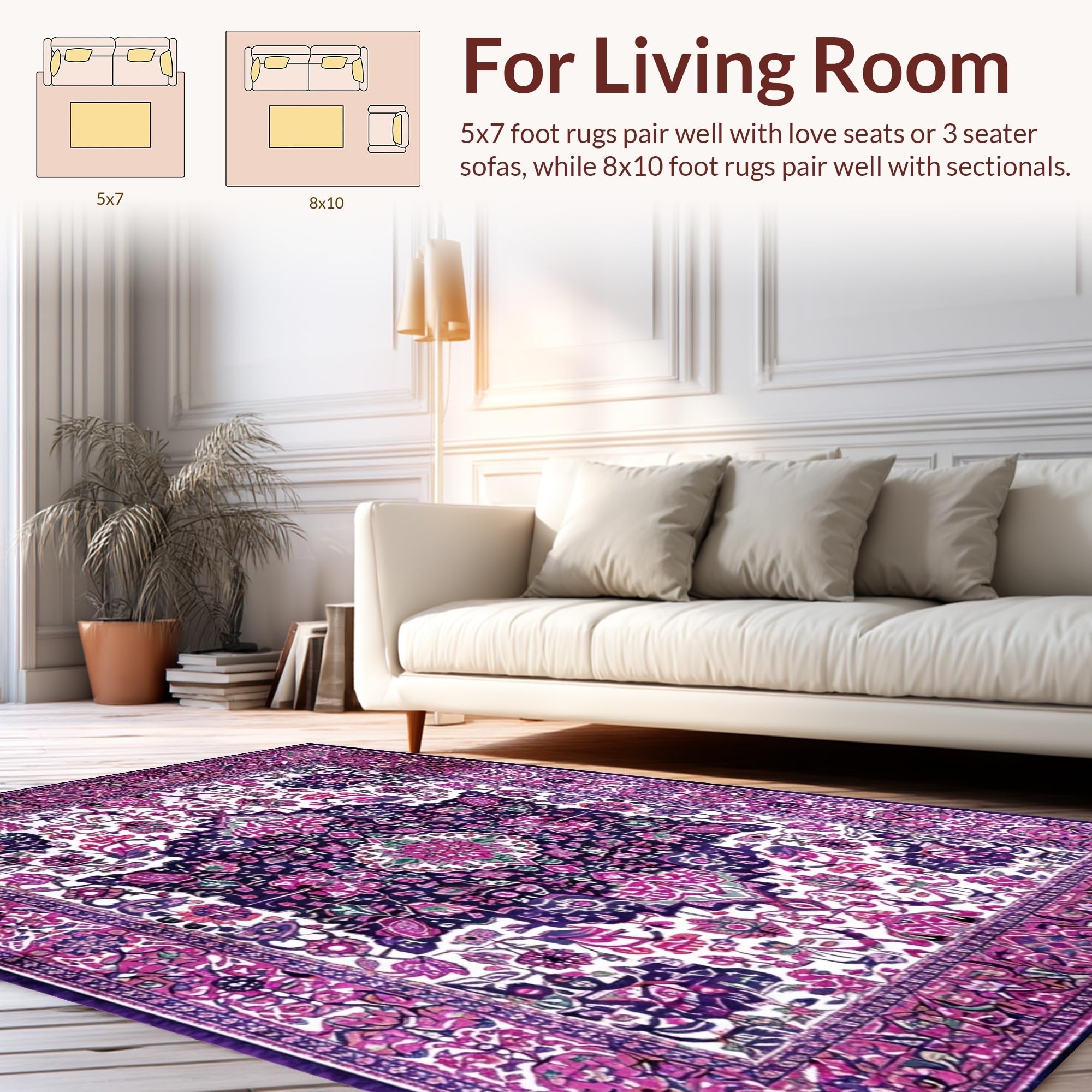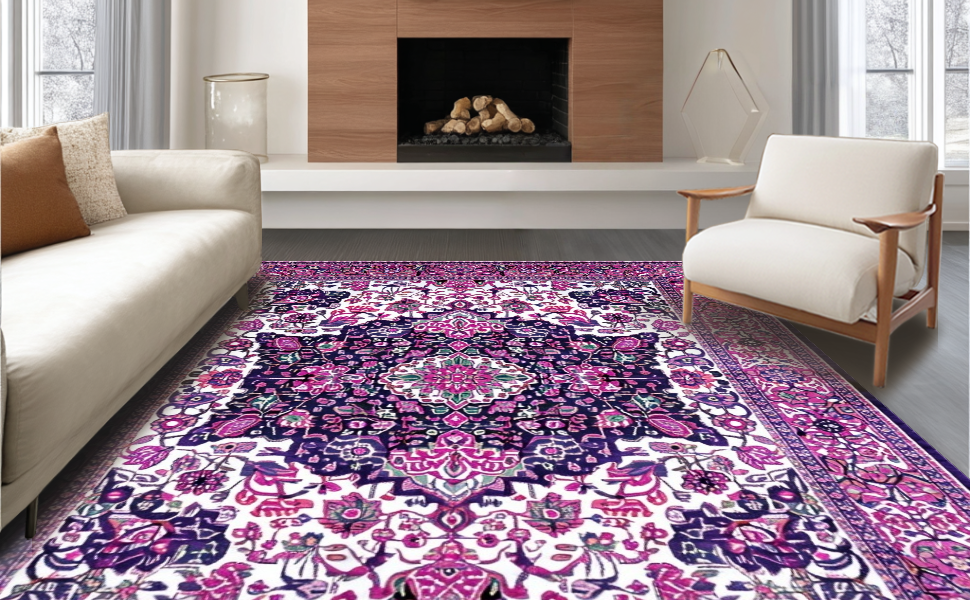 Ultra Soft Area Rug, Non Slip, Stain Resistant, Washable Area Rugs for Living Room, Bedroom, Stylish Vintage Nature Scene(Purple) Overview: