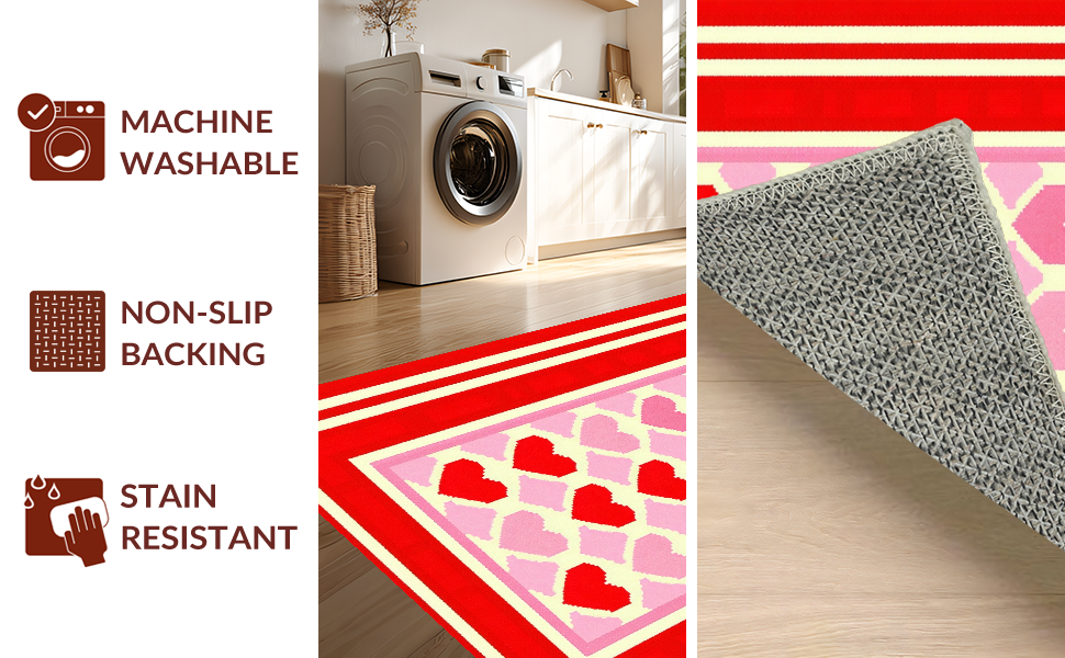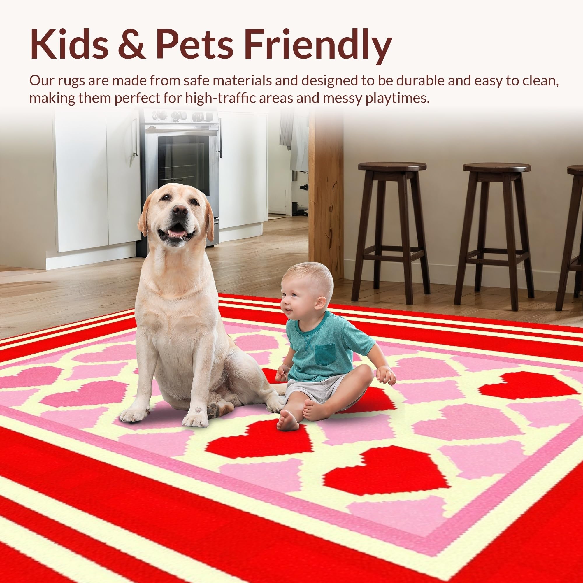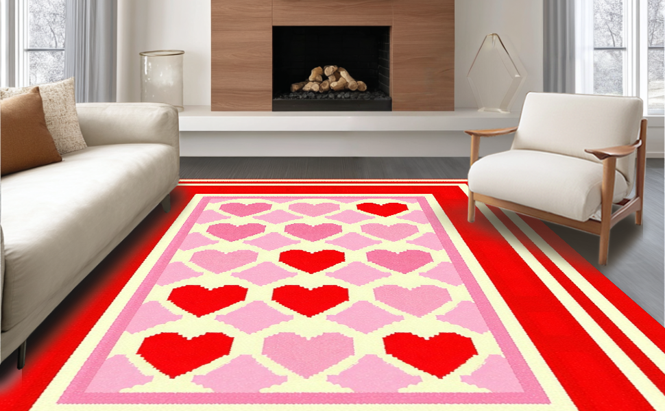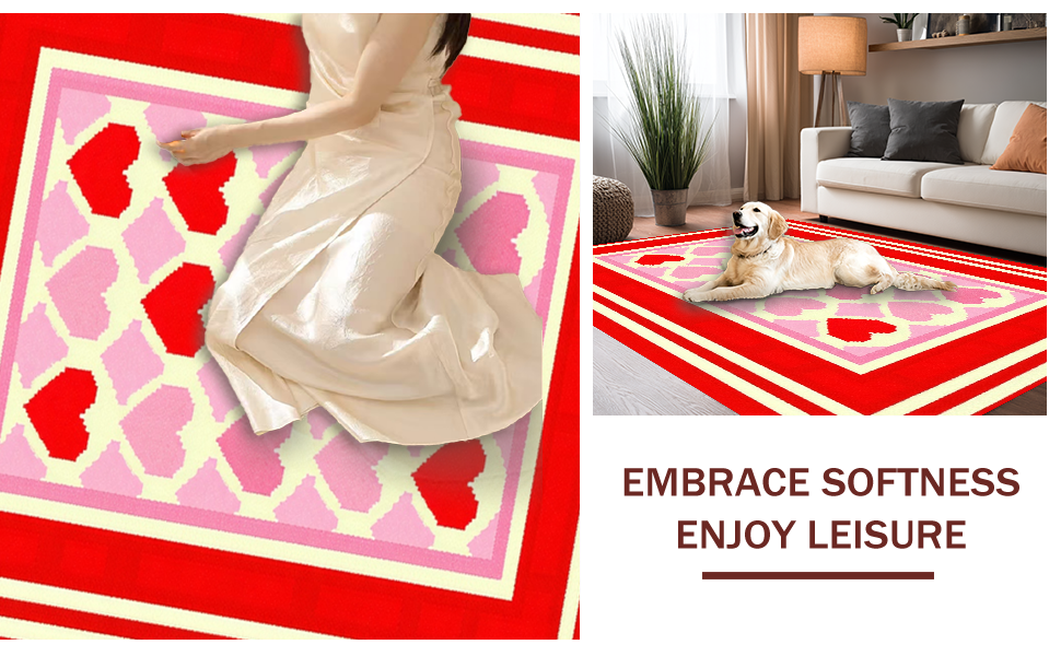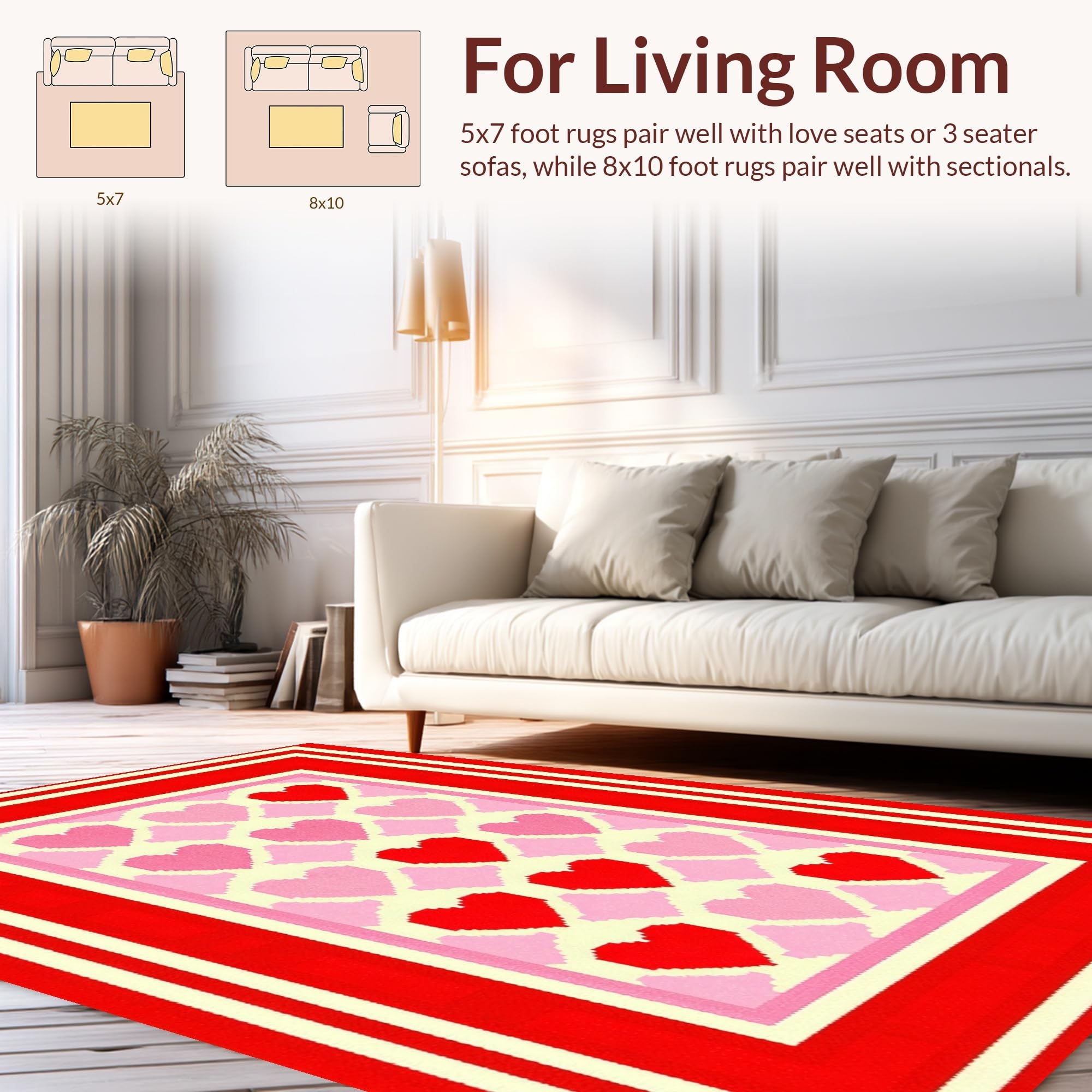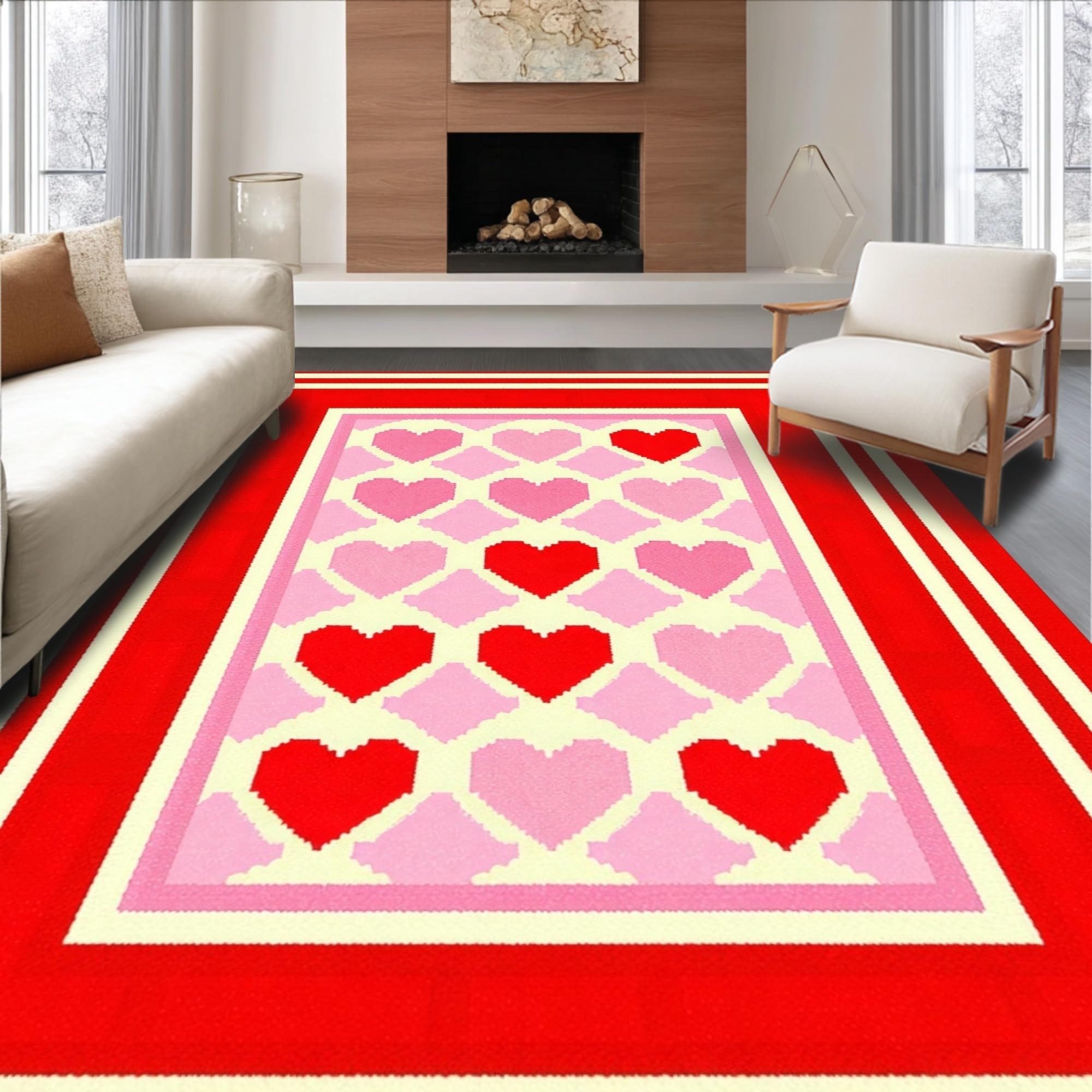 Ultra Soft Area Rug, Non Slip, Stain Resistant, Washable Area Rugs for Living Room, Bedroom, Stylish Y2K Inspirational Theme(Red) Overview: