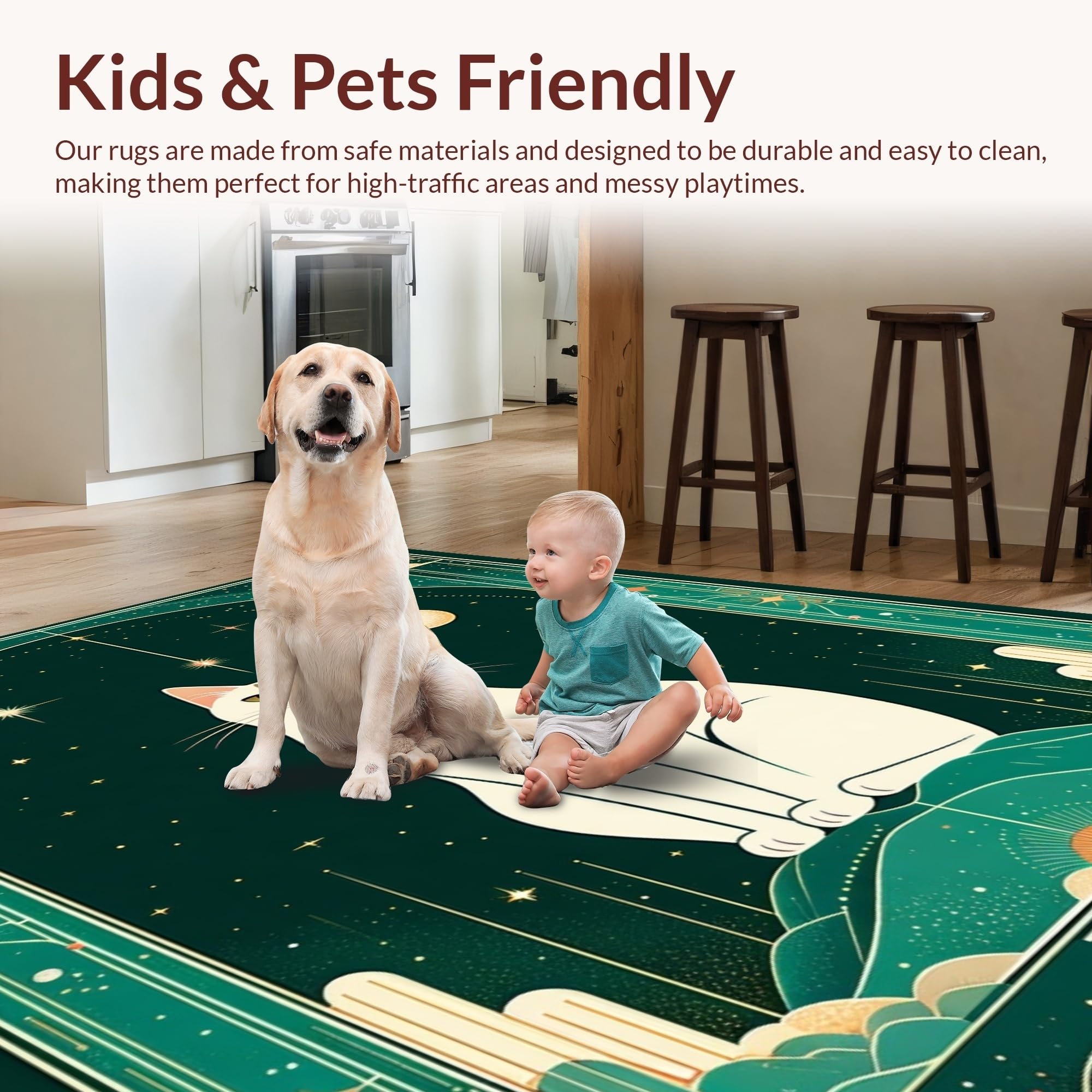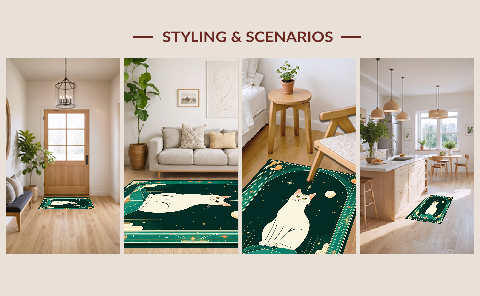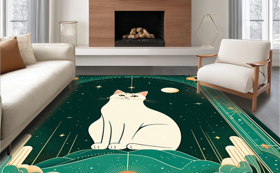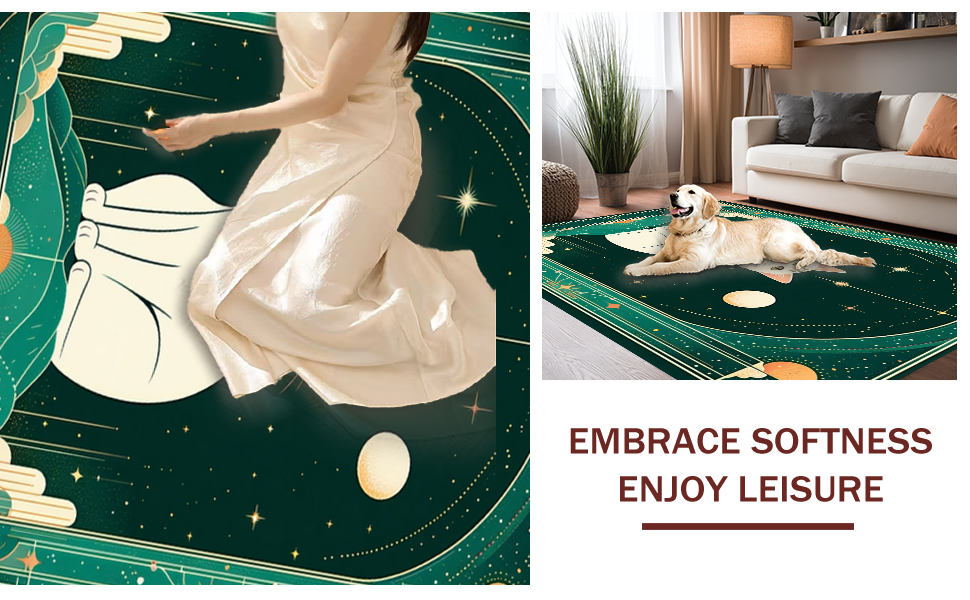 Ultra Soft Area Rug, Non Slip, Stain Resistant, Washable Area Rugs for Living Room, Bedroom, Sublime Ethereal Zodiac Imagery(Green) Overview:
