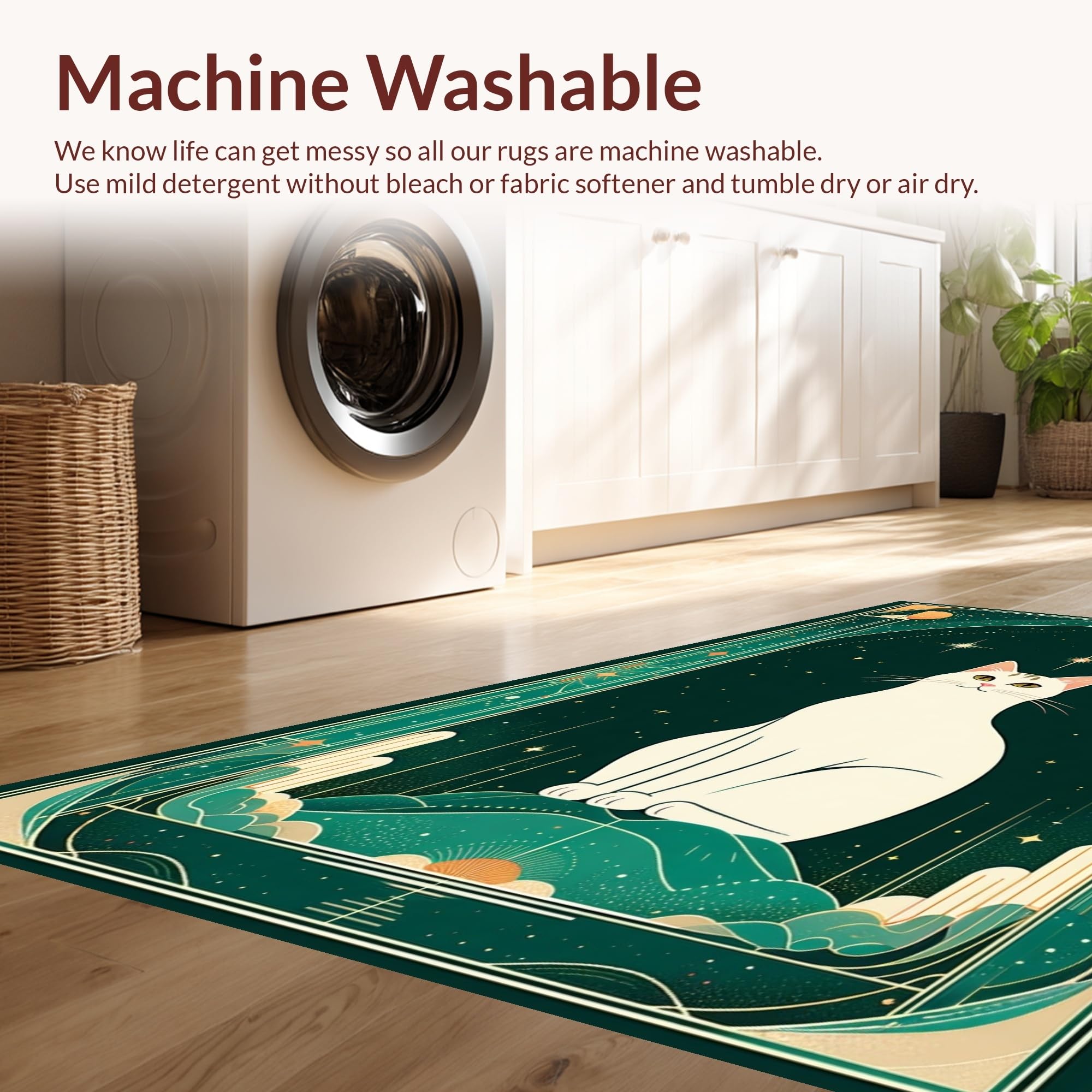 - Machine Washable: Our rugs can be easily thrown in the wash machine.