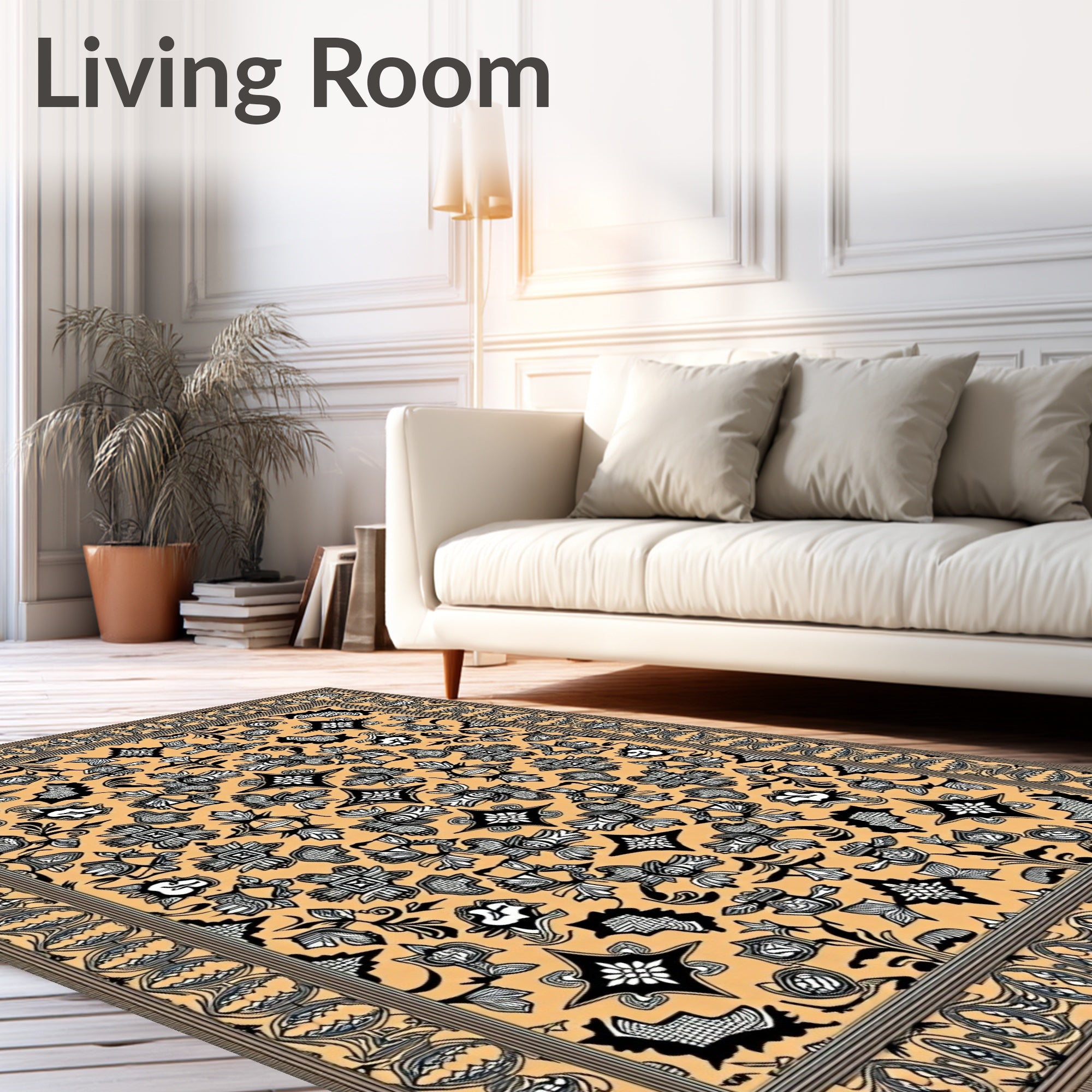 Ultra Soft Area Rug, Non Slip, Stain Resistant, Washable Area Rugs for Living Room, Bedroom, Subtle Boho Floral Tapestry Featuring Ochre and Earth Hues(Beige) Overview: