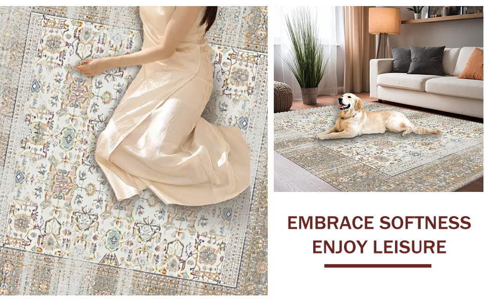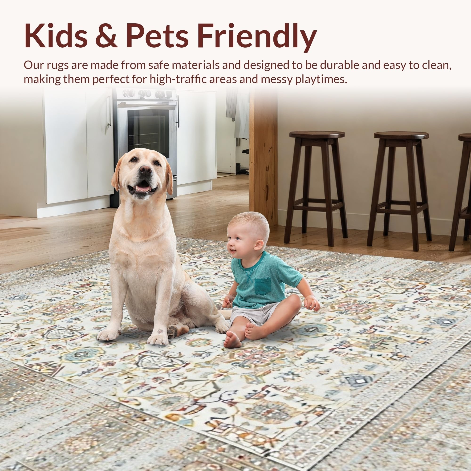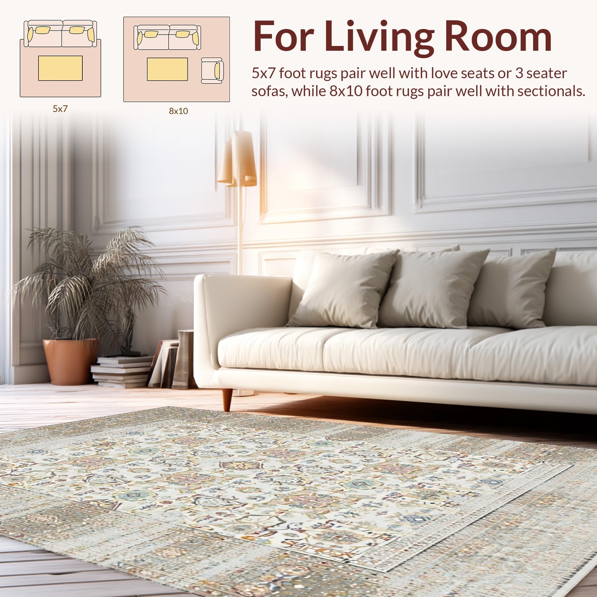 Ultra Soft Area Rug, Non Slip, Stain Resistant, Washable Area Rugs for Living Room, Bedroom, Subtle Earth Tone Pattern Play(Beige) Overview: