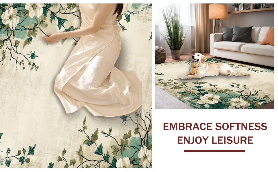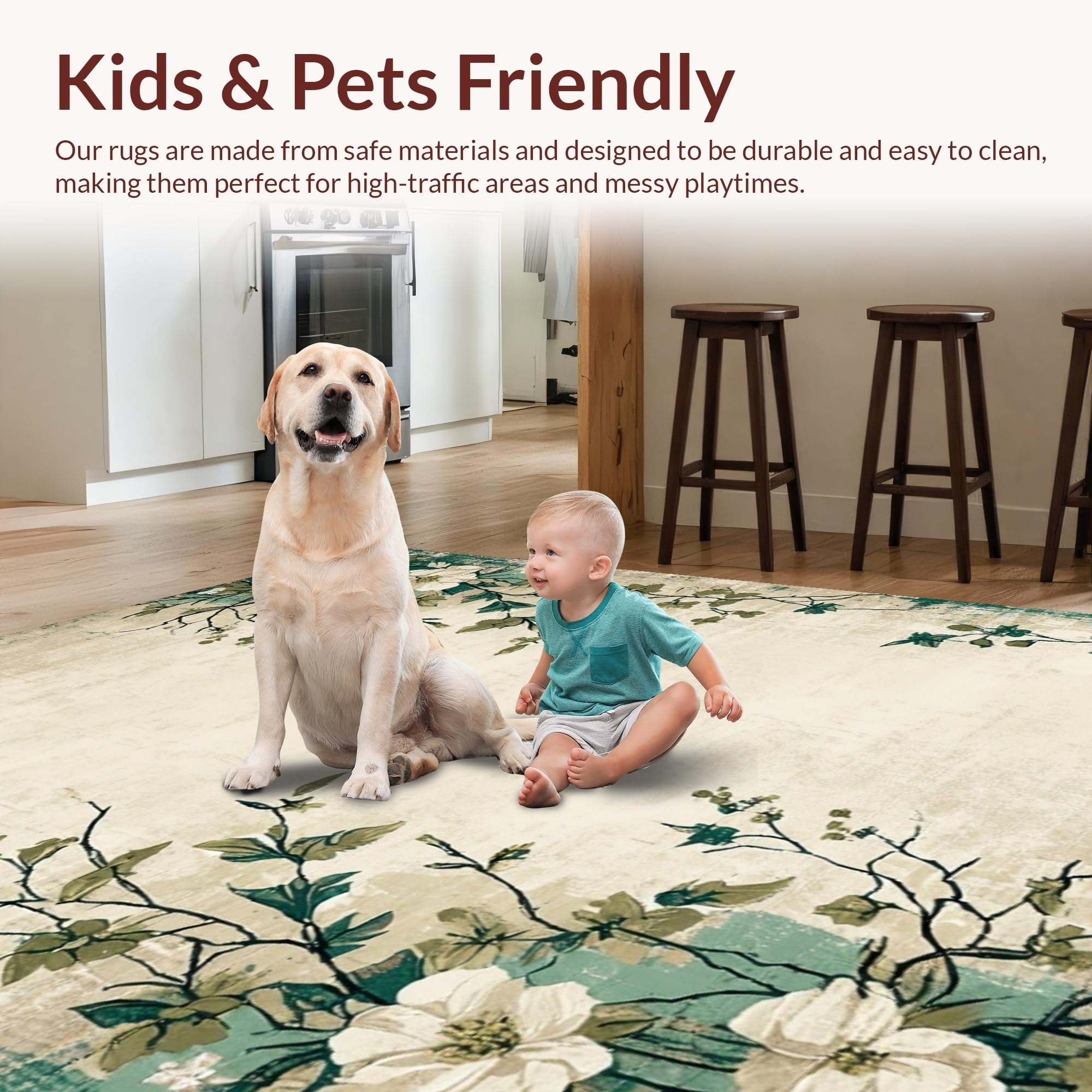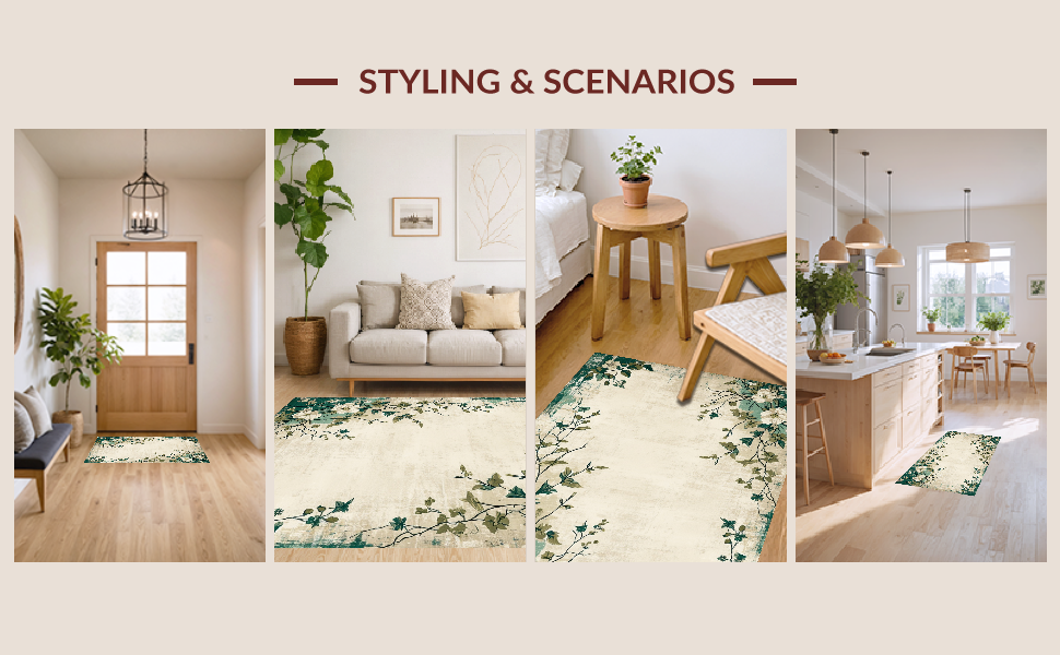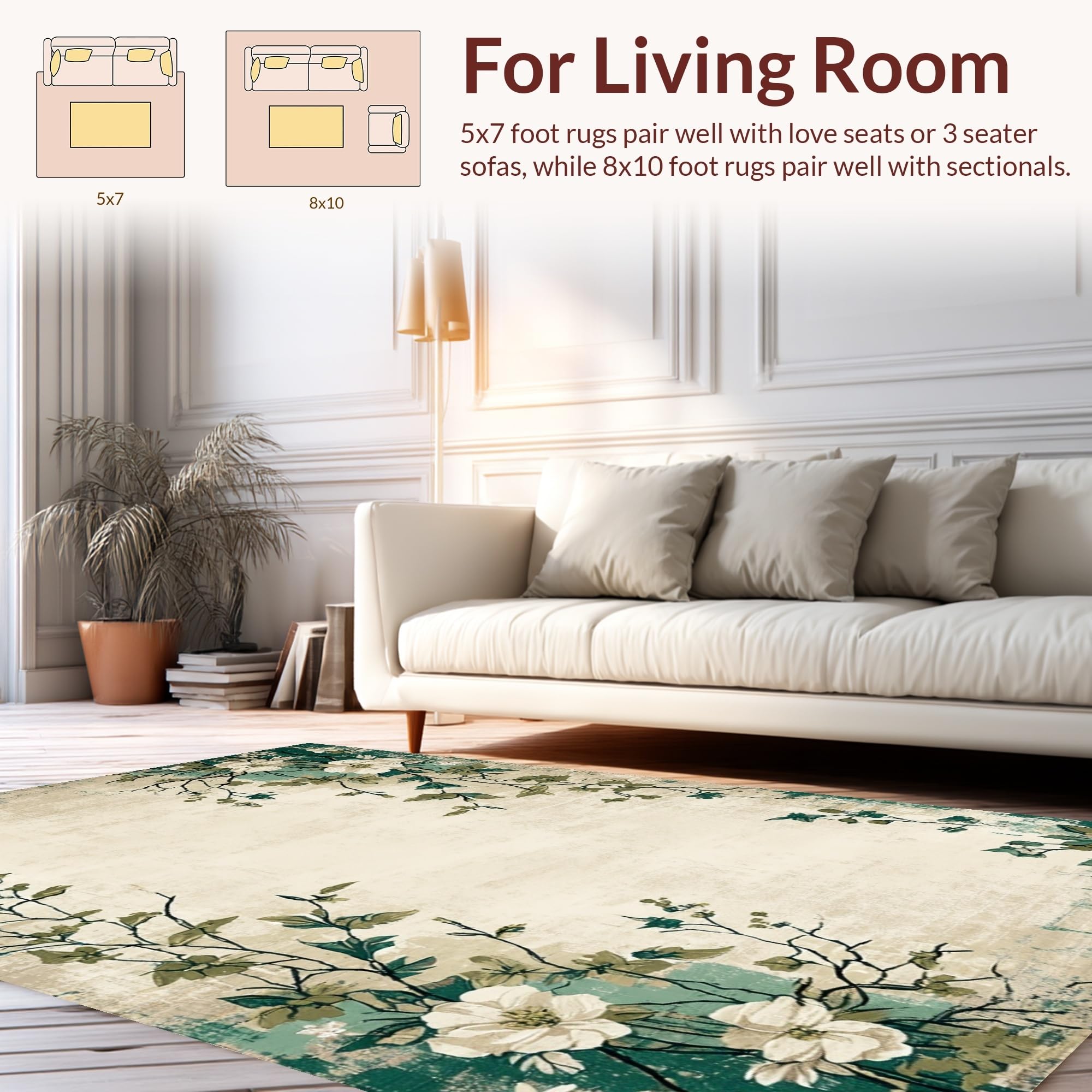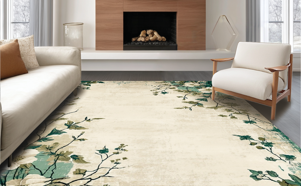 Ultra Soft Area Rug, Non Slip, Stain Resistant, Washable Area Rugs for Living Room, Bedroom, Subtle Rustic Leafy Arrangement(Beige) Overview: