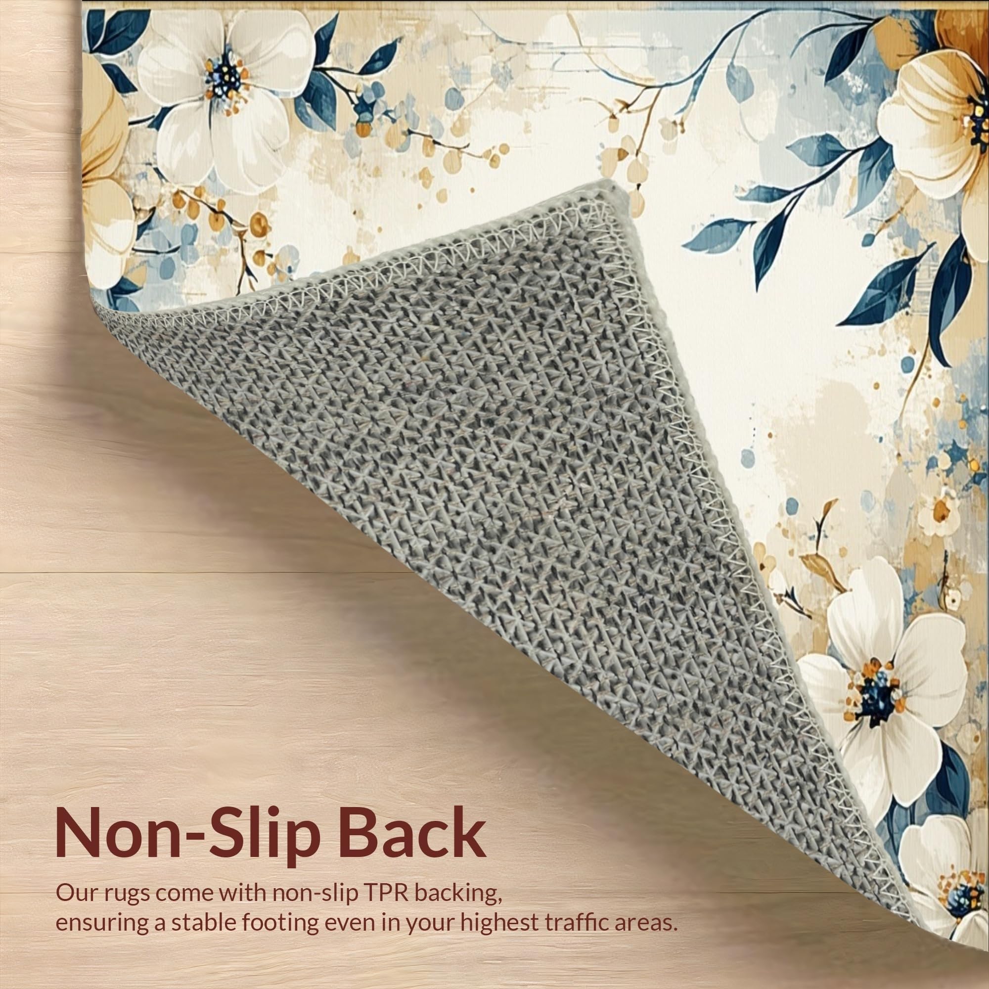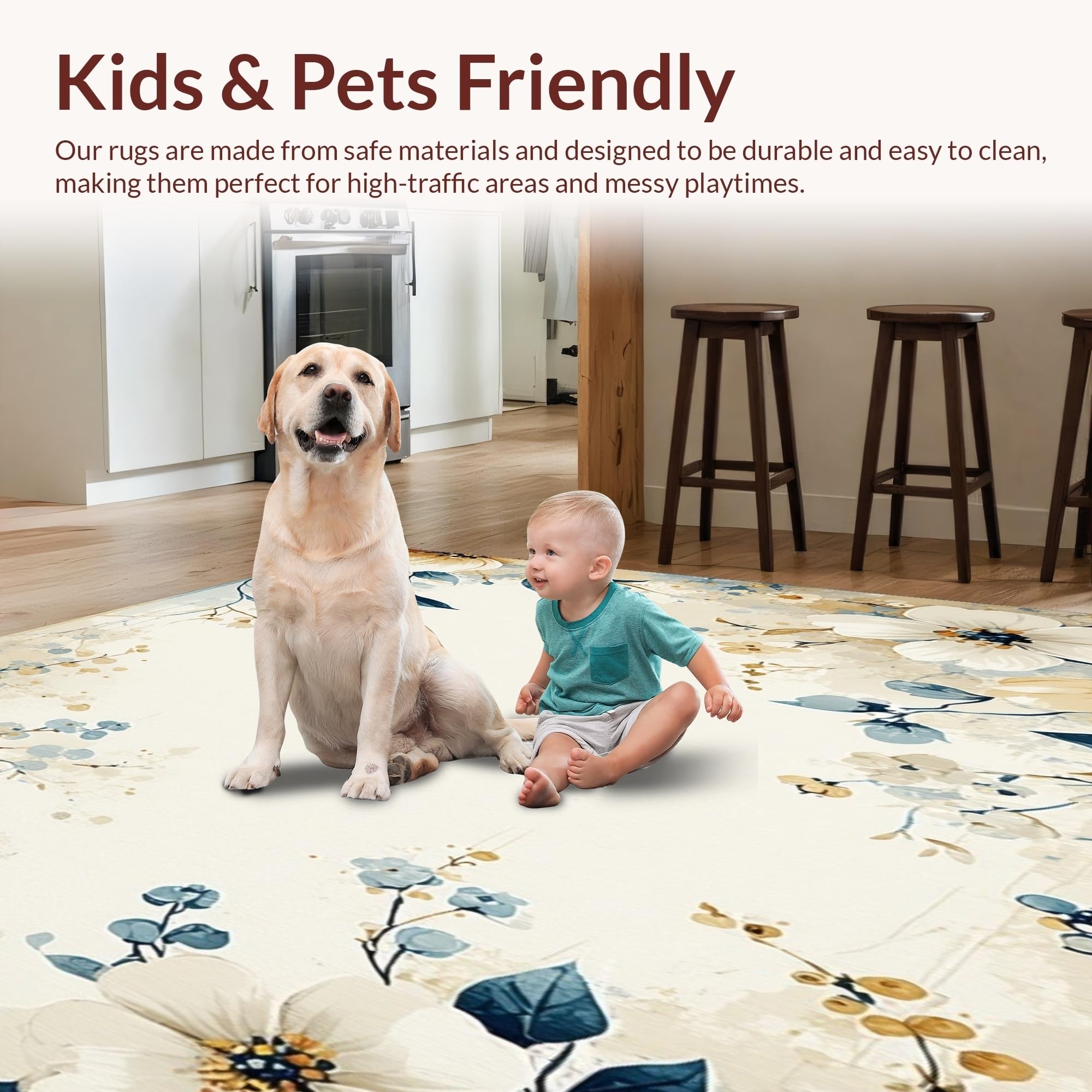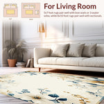 Ultra Soft Area Rug, Non Slip, Stain Resistant, Washable Area Rugs for Living Room, Bedroom, Summer Boho Flower Print with Artistic Botanical Shapes and Neutral Tones(Beige) Overview: