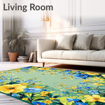 Flatwoven High Traffic Area Rug, Summer Floral Bath, Non Slip, Stain Resistant, Washable Area Rugs for Living Room, Bedroom (Blue) Overview: