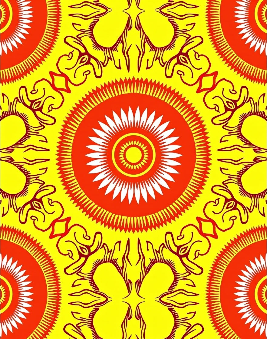 Sunburst Medallion Interlocking Motif with Artistic Floral Detailing(Yellow)