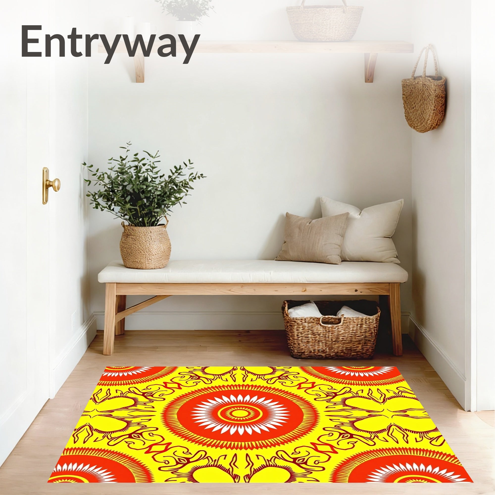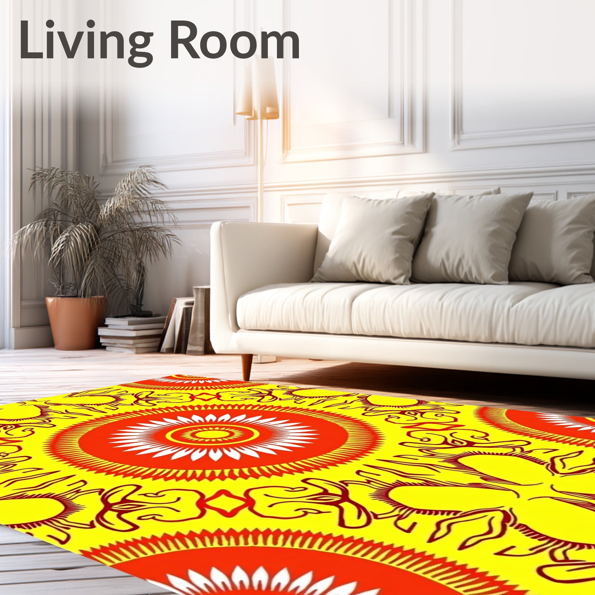 Ultra Soft Area Rug, Non Slip, Stain Resistant, Washable Area Rugs for Living Room, Bedroom, Sunburst Medallion Interlocking Motif with Artistic Floral Detailing(Yellow) Overview: