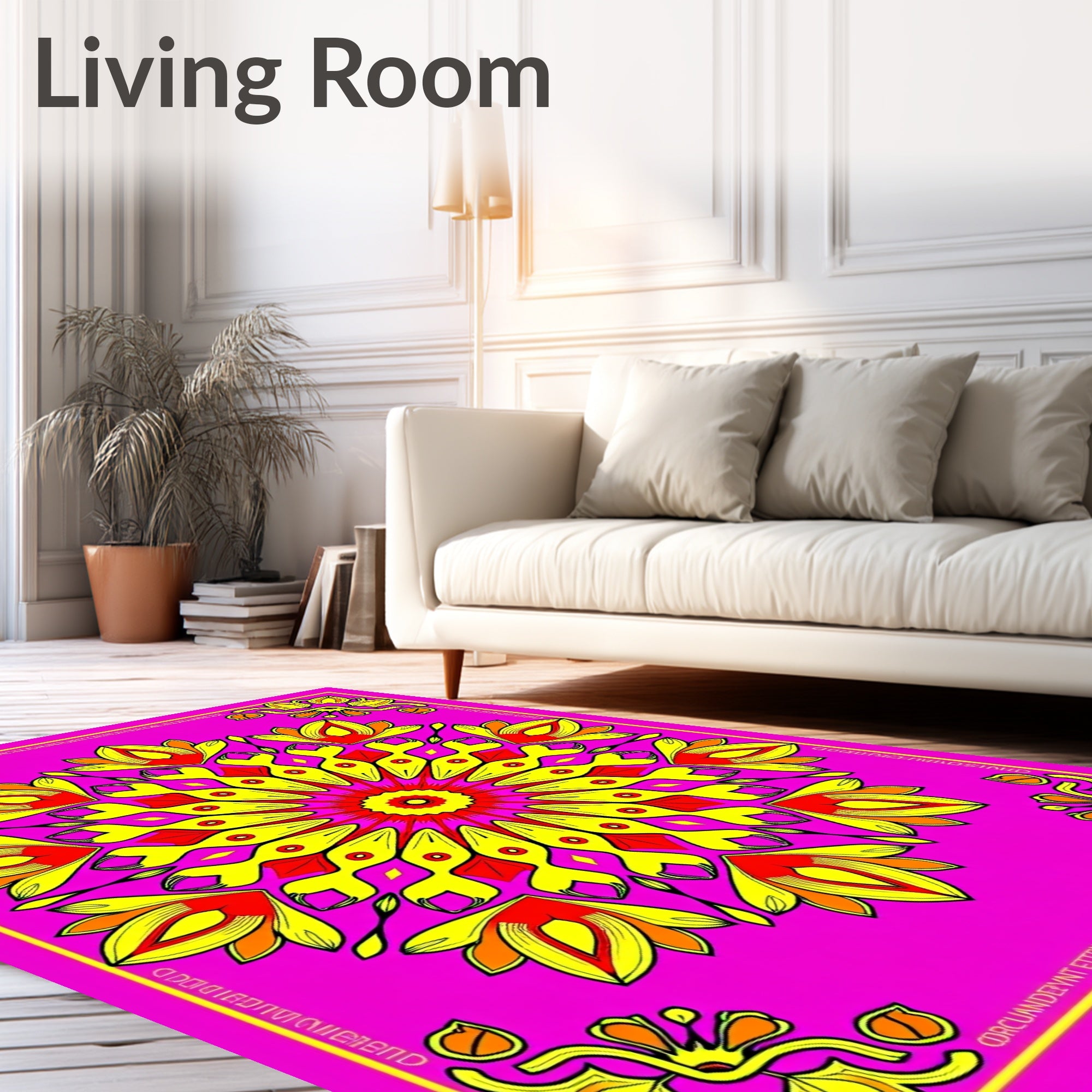 Ultra Soft Area Rug, Non Slip, Stain Resistant, Washable Area Rugs for Living Room, Bedroom, Sunburst with Intricate Floral Motifs Decorative(Pink) Overview: