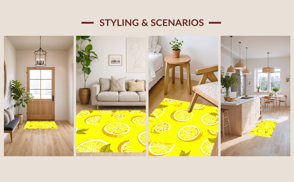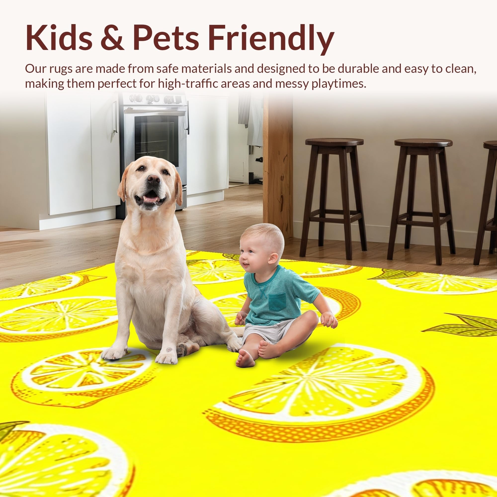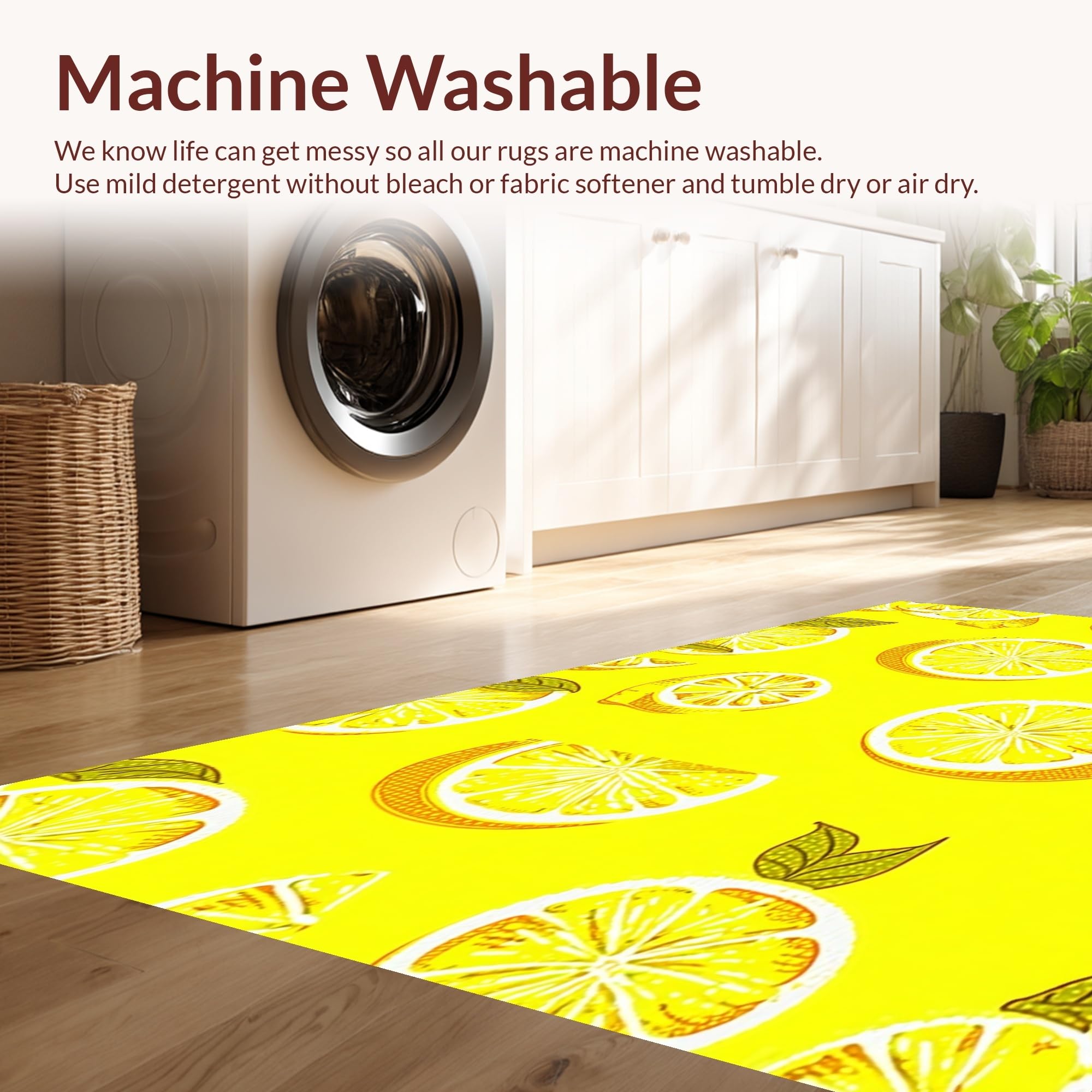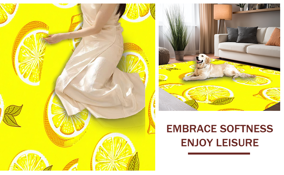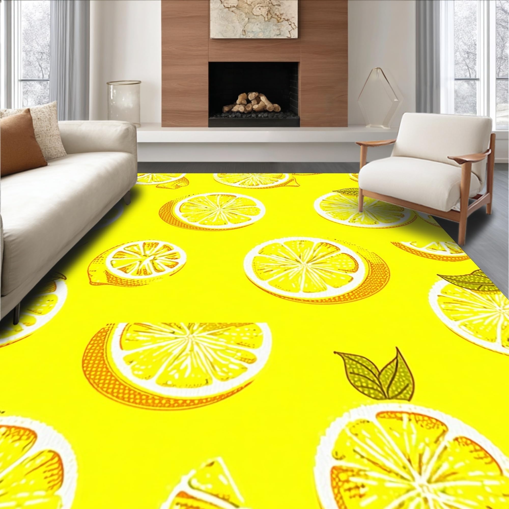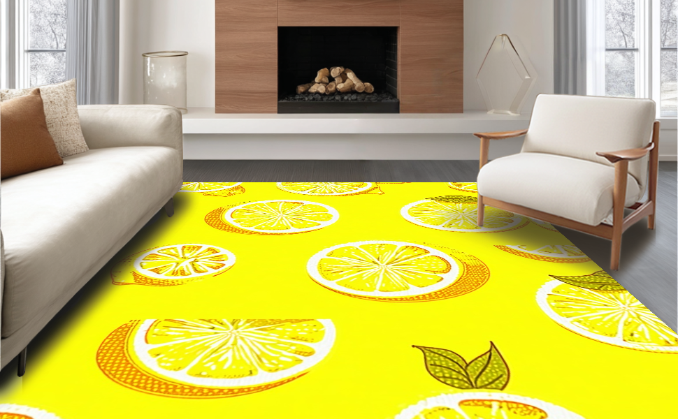 Ultra Soft Area Rug, Non Slip, Stain Resistant, Washable Area Rugs for Living Room, Bedroom, Sunny Citrus Themed Artistry(Yellow) Overview: