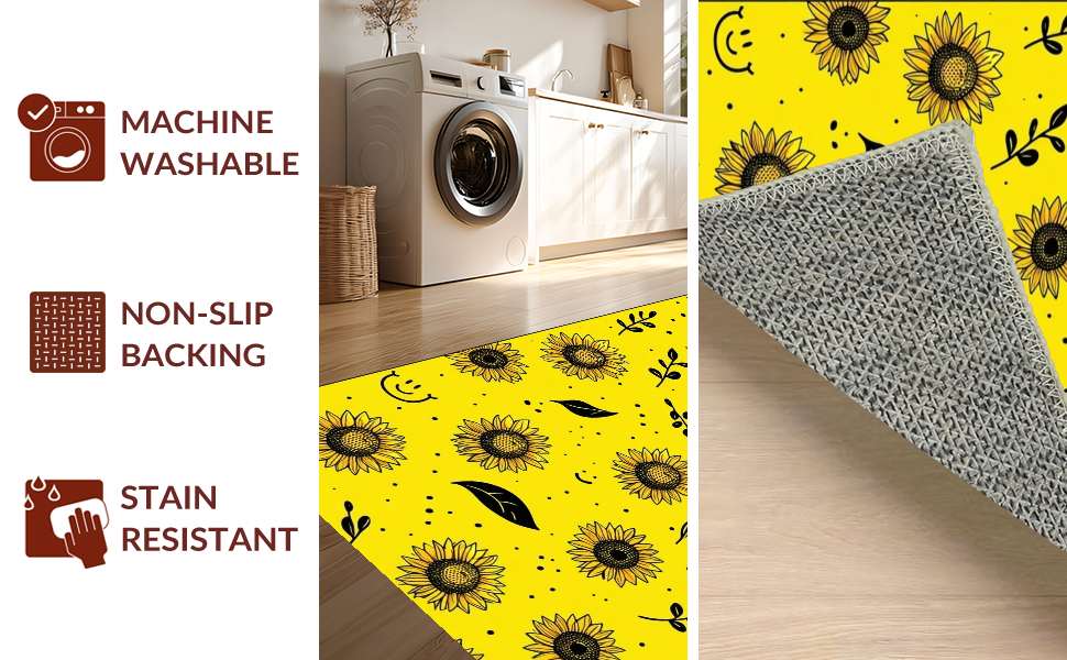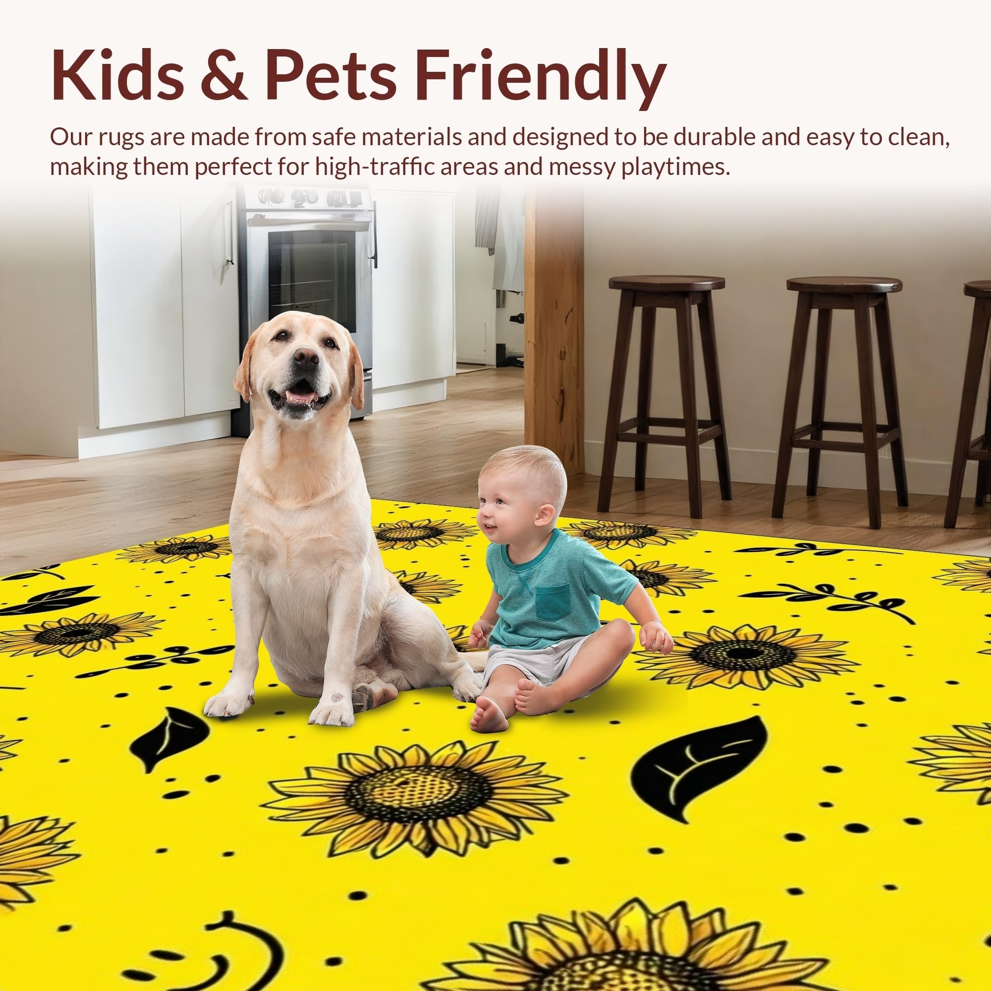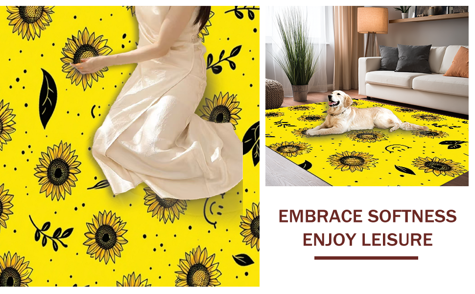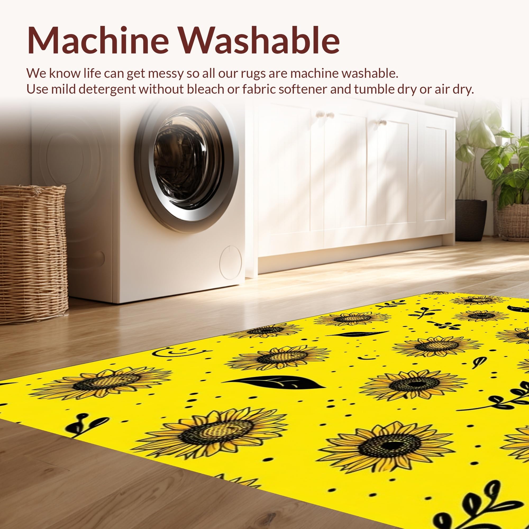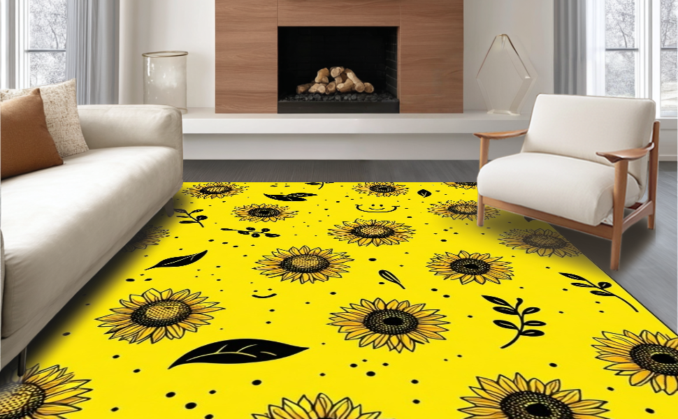 Ultra Soft Area Rug, Non Slip, Stain Resistant, Washable Area Rugs for Living Room, Bedroom, Sunny Floral Vibe Rug(Yellow) Overview: