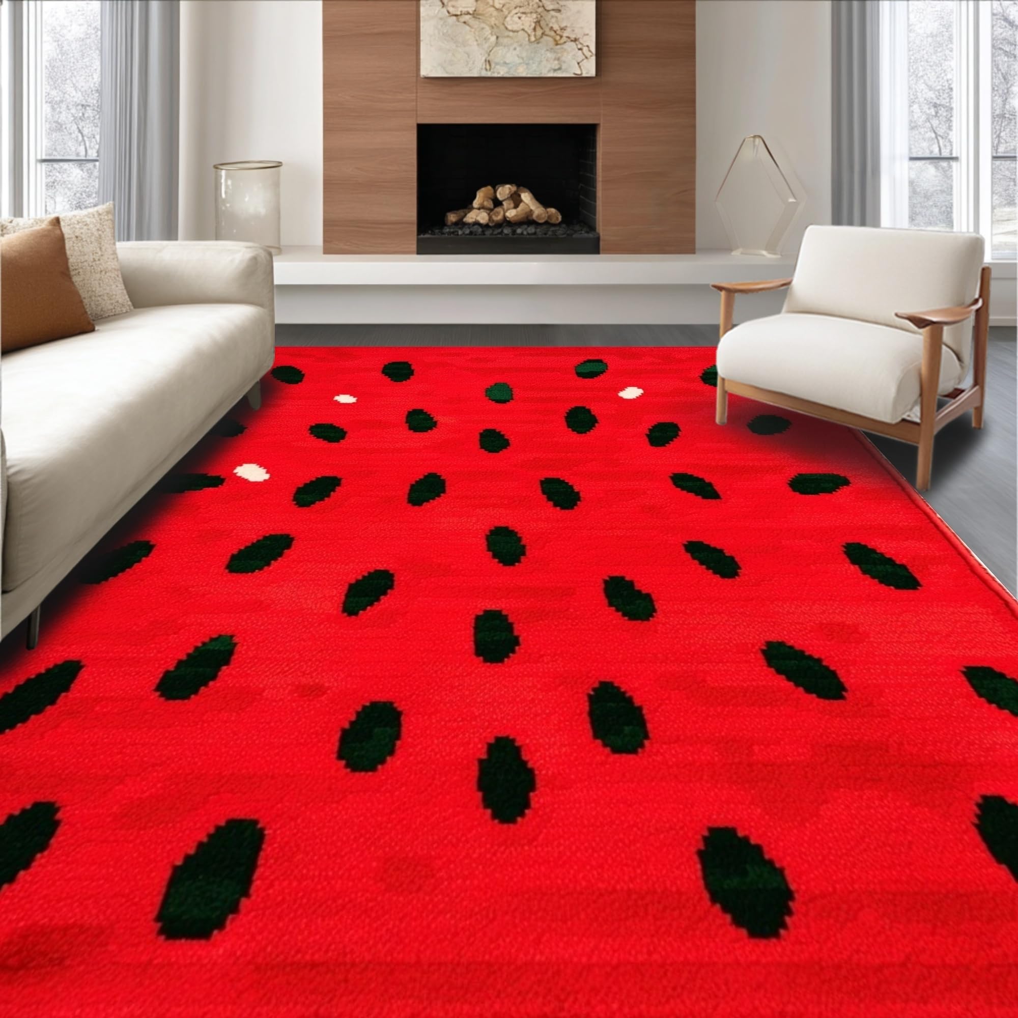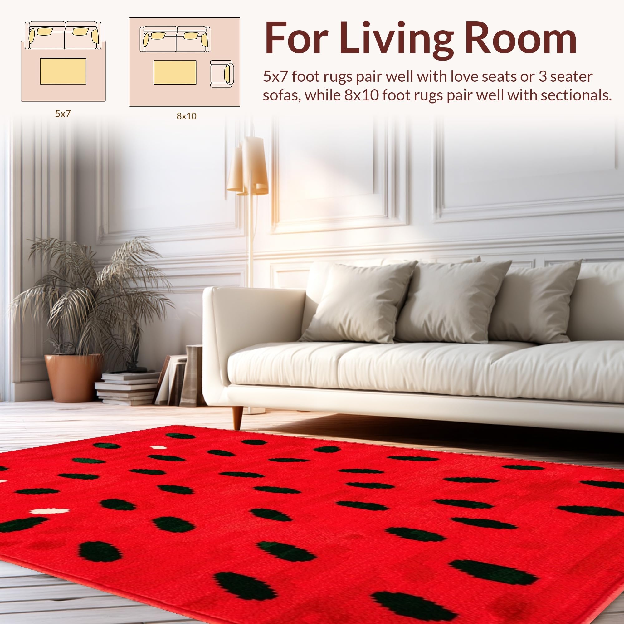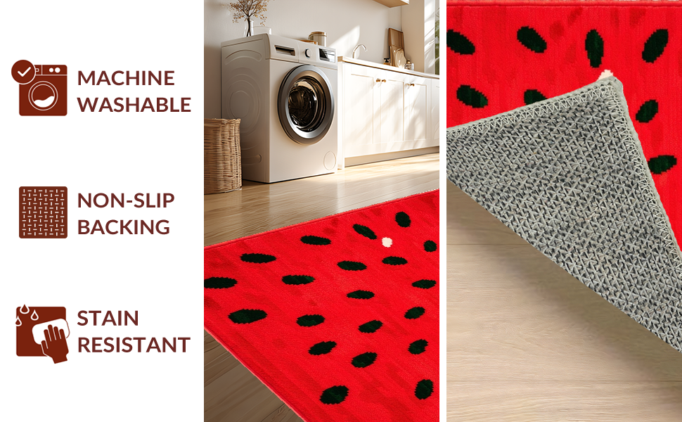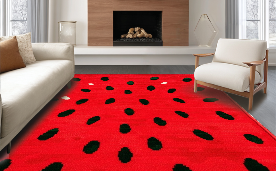 Ultra Soft Area Rug, Non Slip, Stain Resistant, Washable Area Rugs for Living Room, Bedroom, Sunny Fruit Fantasy Floor Covering(Red) Overview: