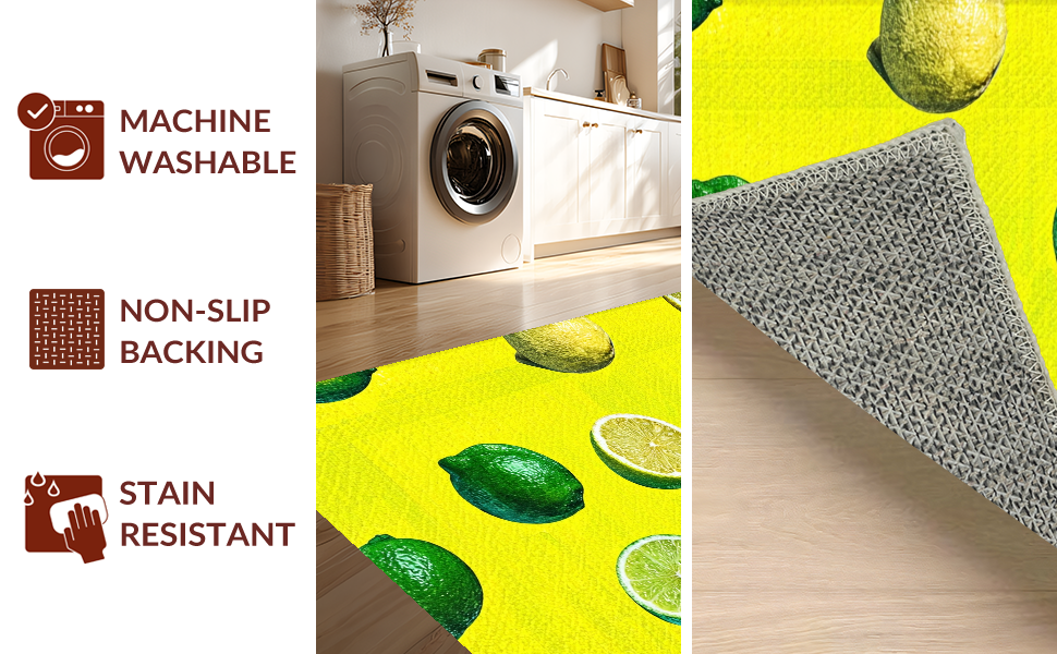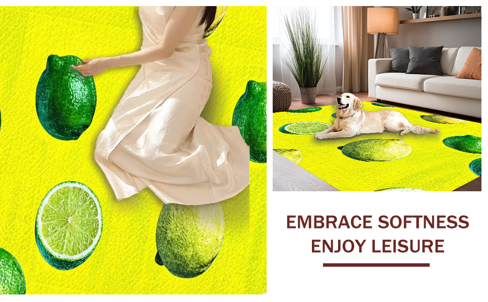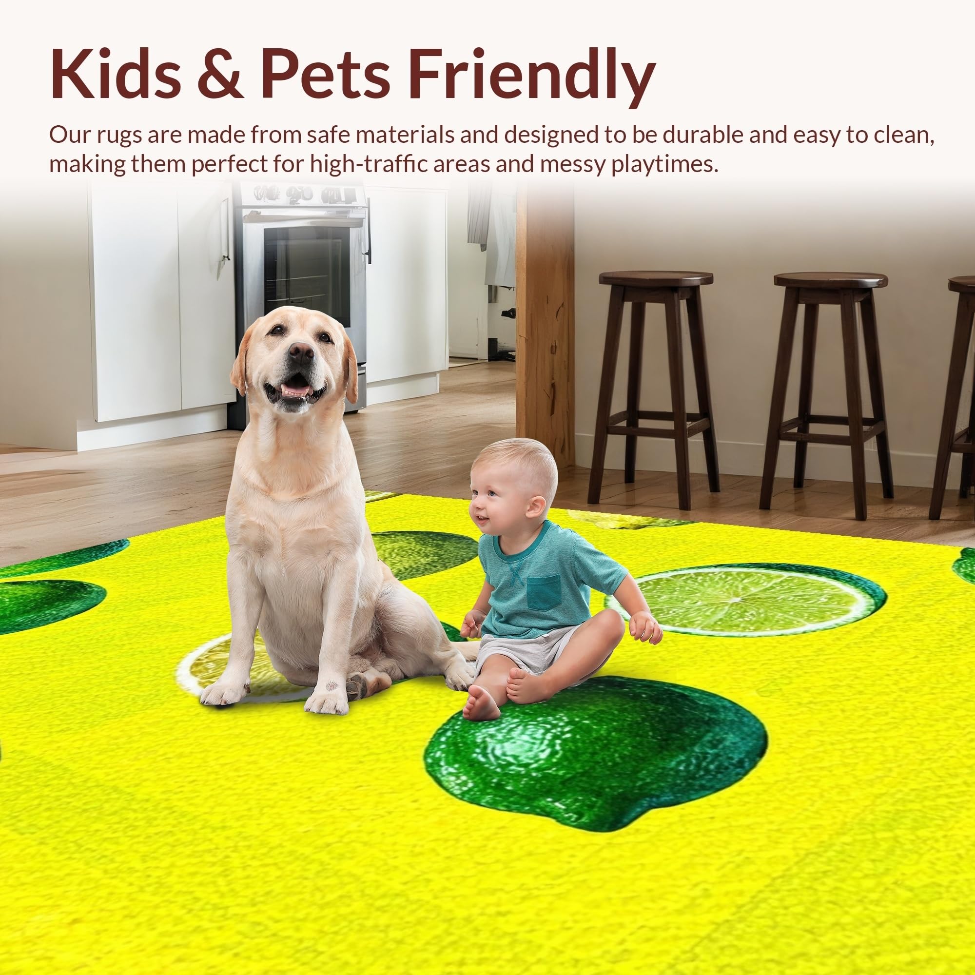 Ultra Soft Area Rug, Non Slip, Stain Resistant, Washable Area Rugs for Living Room, Bedroom, Sunny Lemon Fresh Abstract Art(Yellow) Overview: