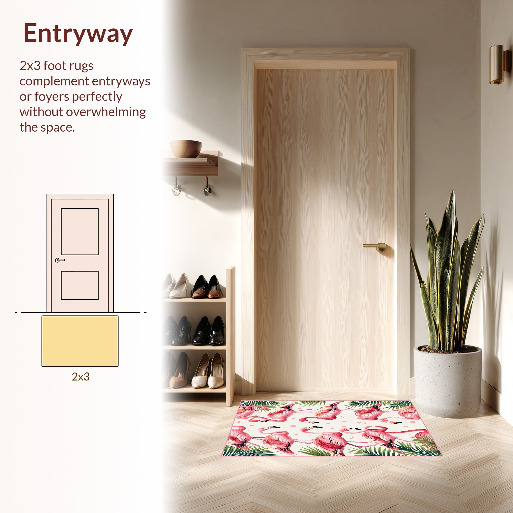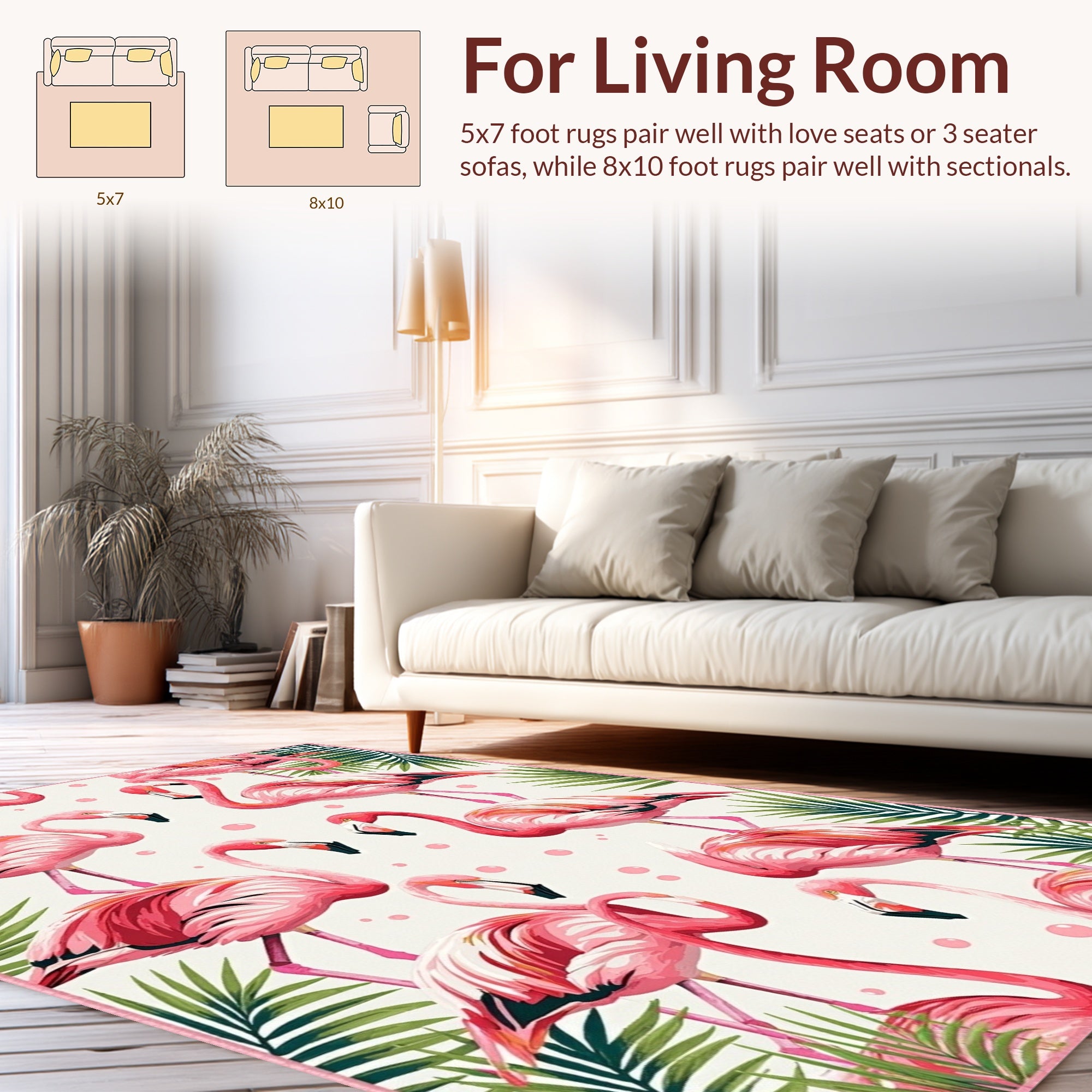 Flatwoven High Traffic Area Rug, Sunny Pastel Flamingo, Non Slip, Stain Resistant, Washable Area Rugs for Living Room, Bedroom (Pink) Overview: