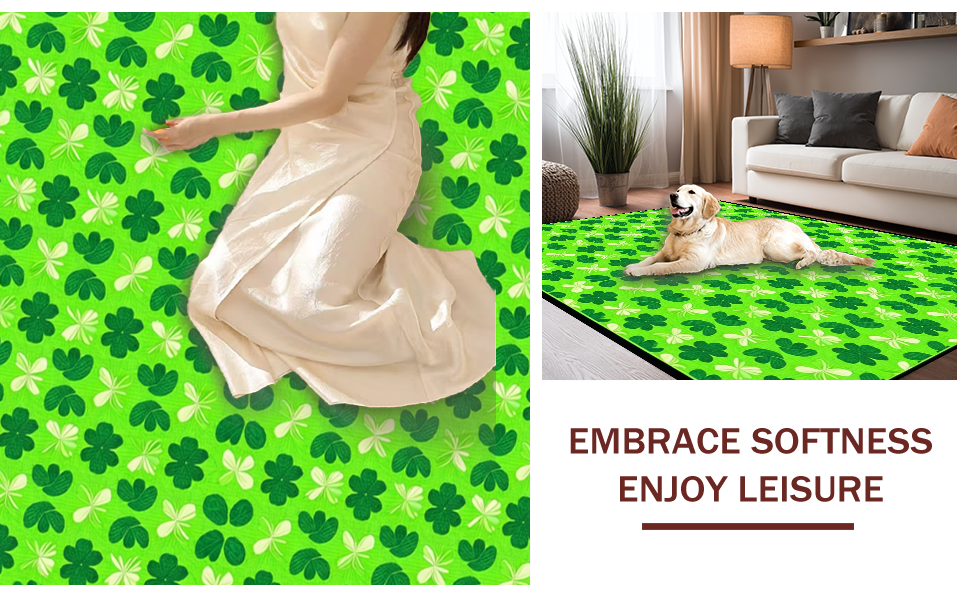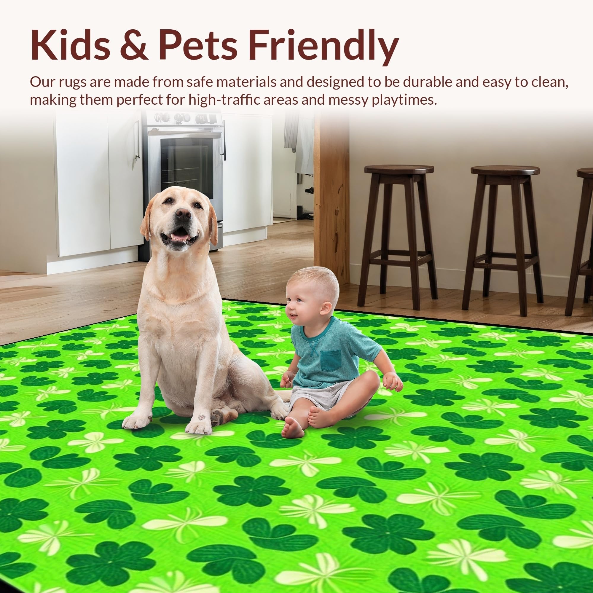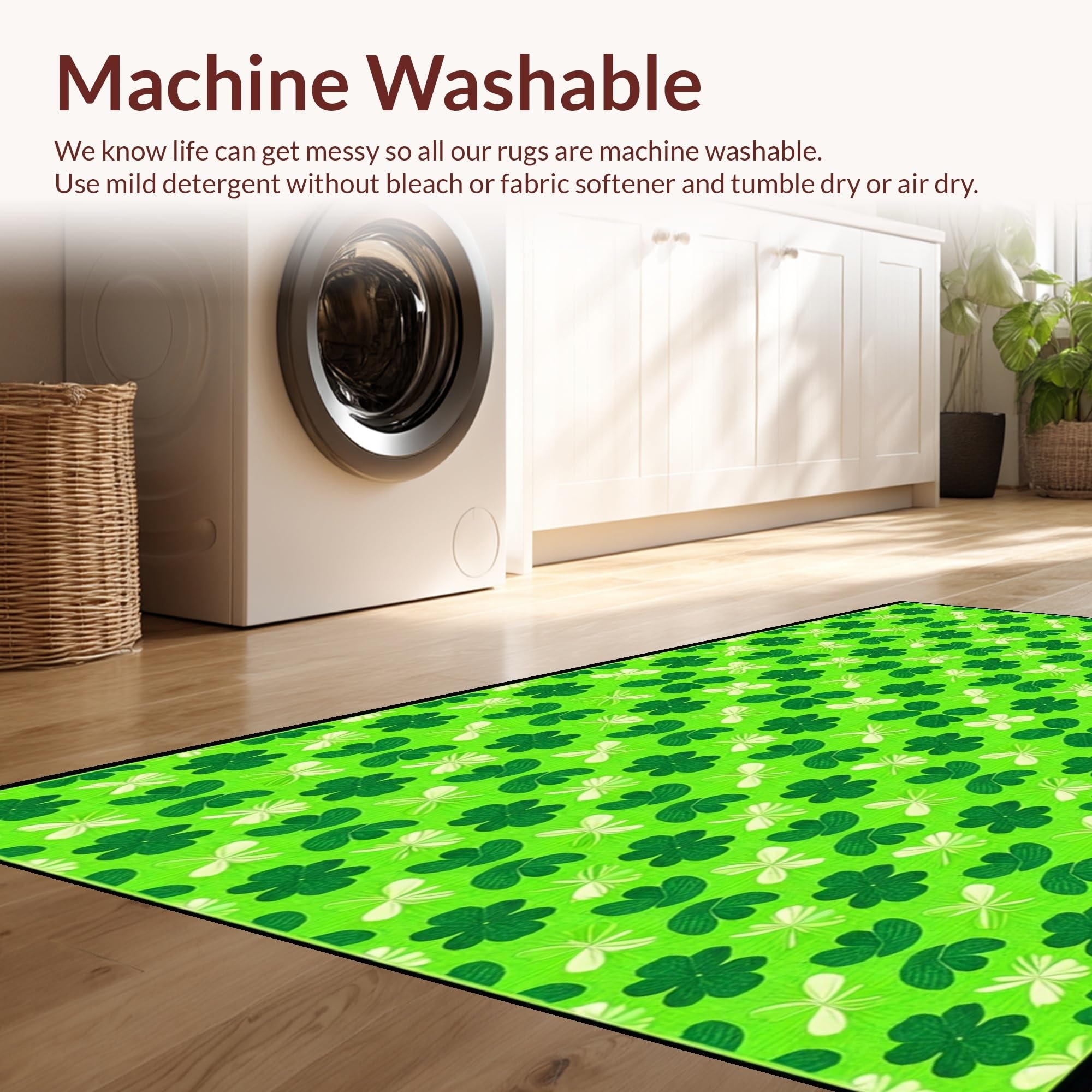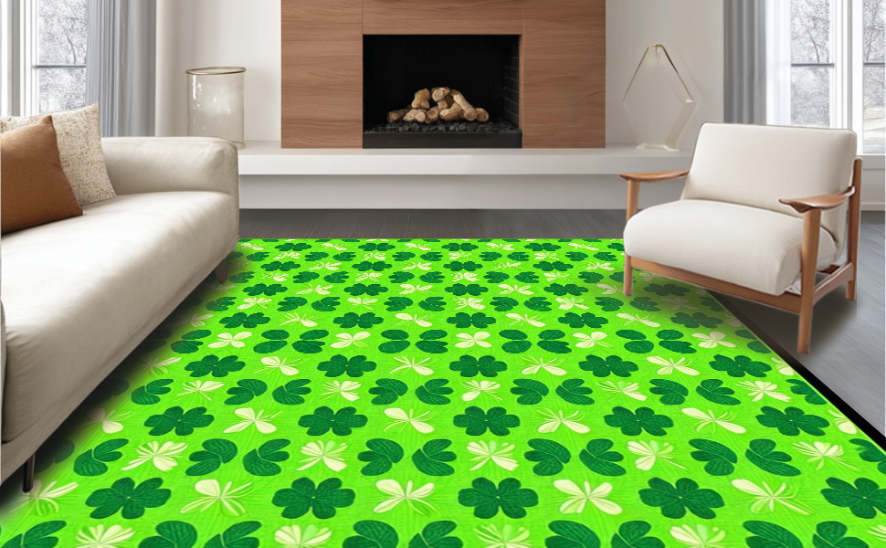 Ultra Soft Area Rug, Non Slip, Stain Resistant, Washable Area Rugs for Living Room, Bedroom, Sunny Playful Clover Composition(Green) Overview: