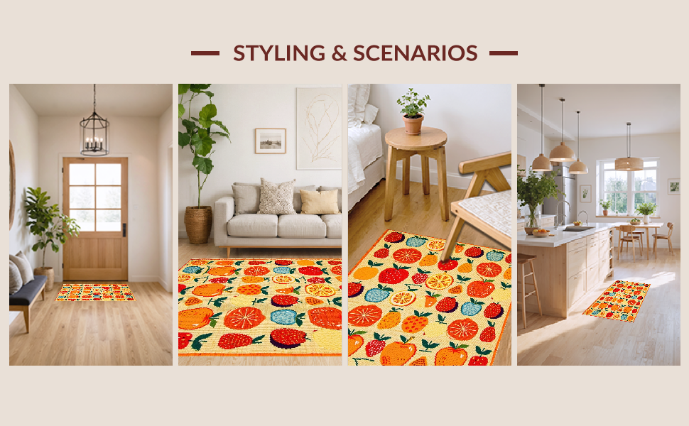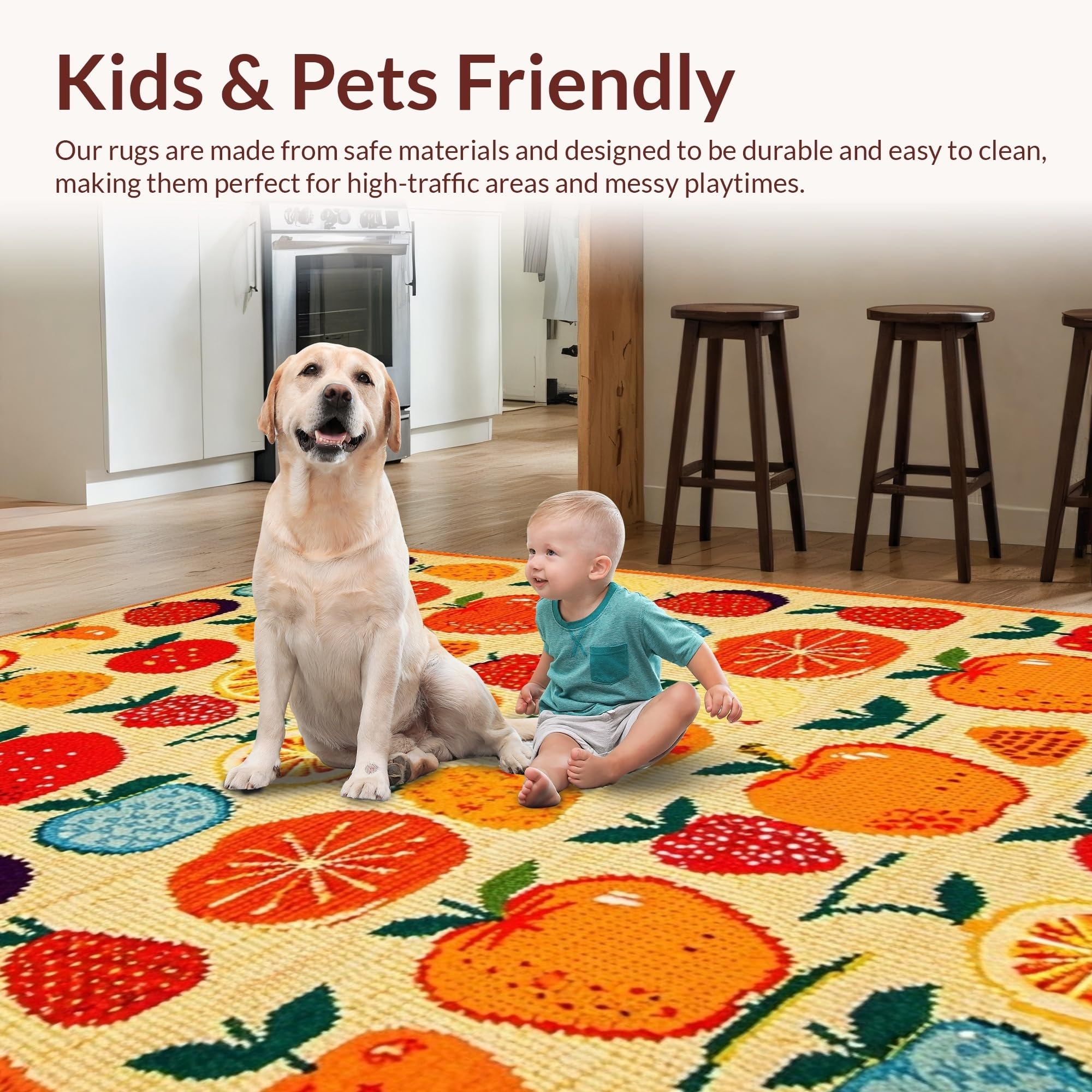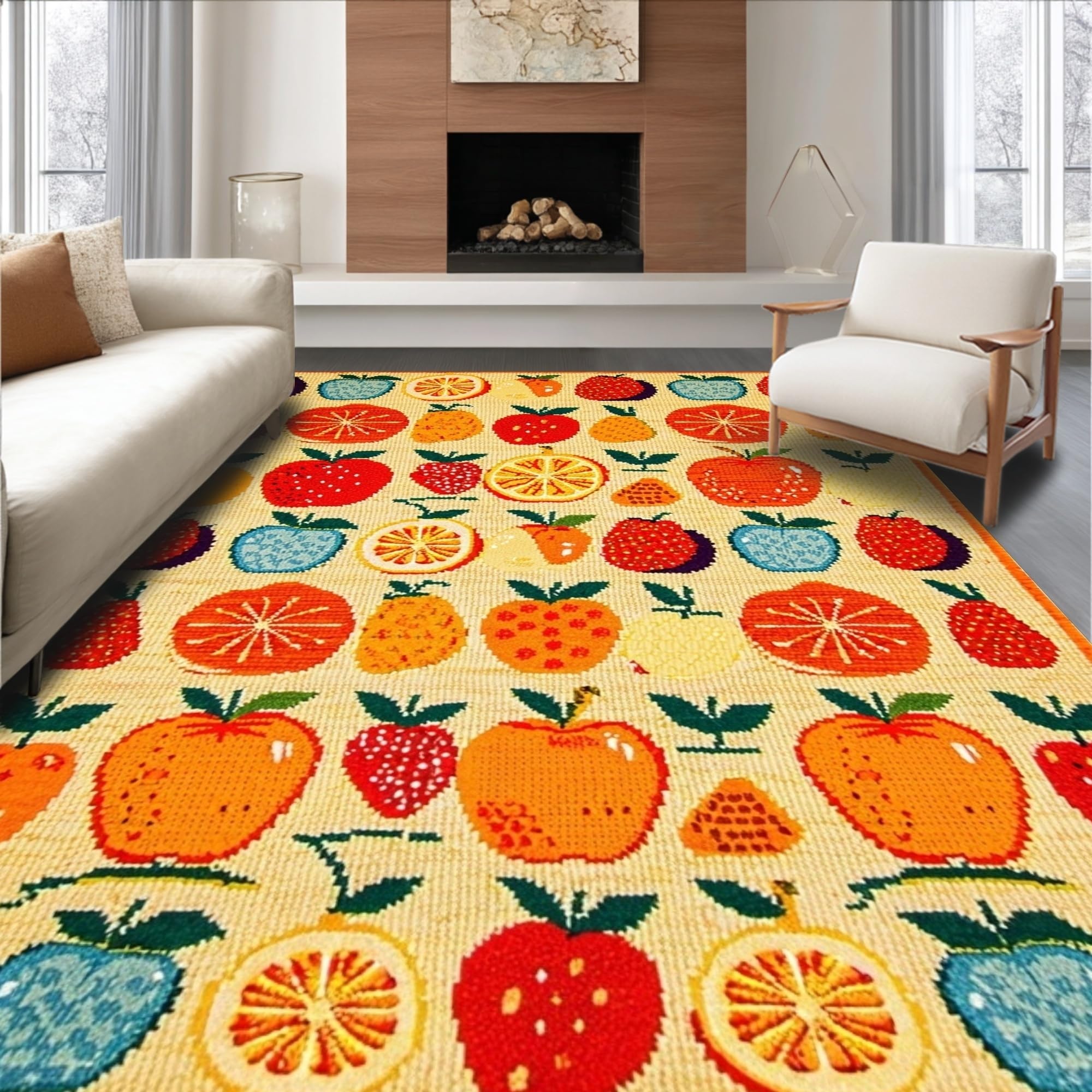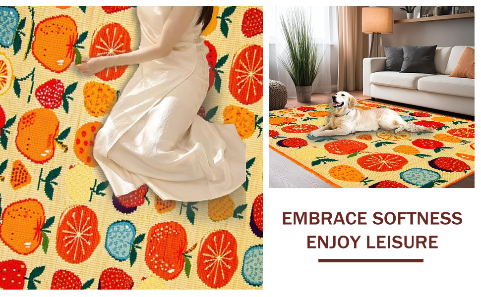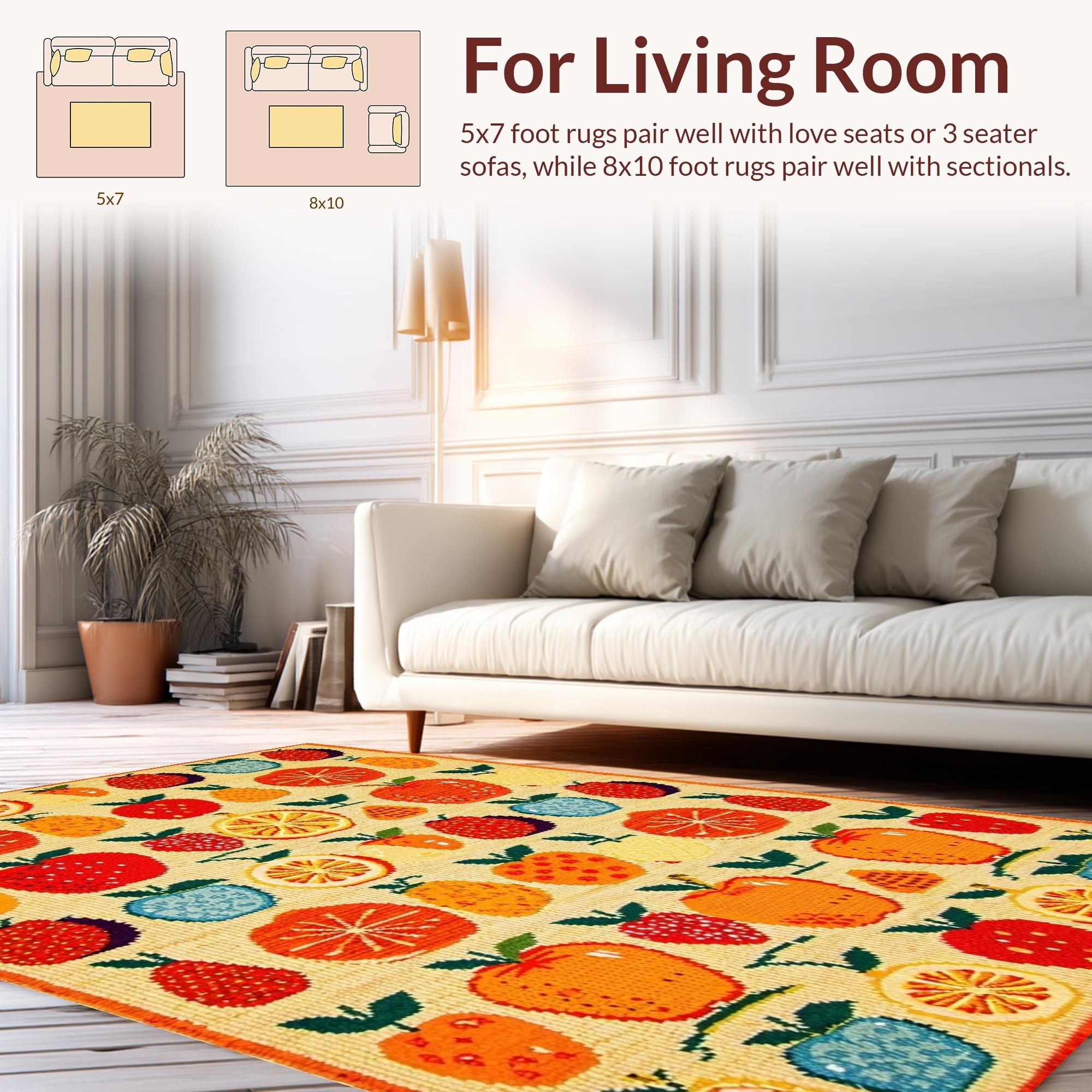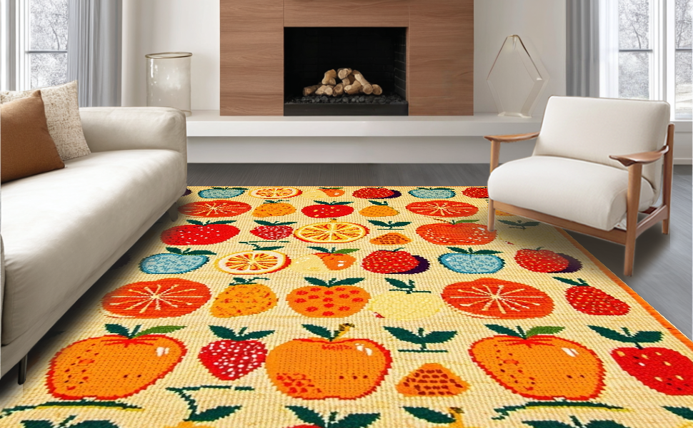 Ultra Soft Area Rug, Non Slip, Stain Resistant, Washable Area Rugs for Living Room, Bedroom, Sunny Tropical Aesthetic Design(Orange) Overview:
