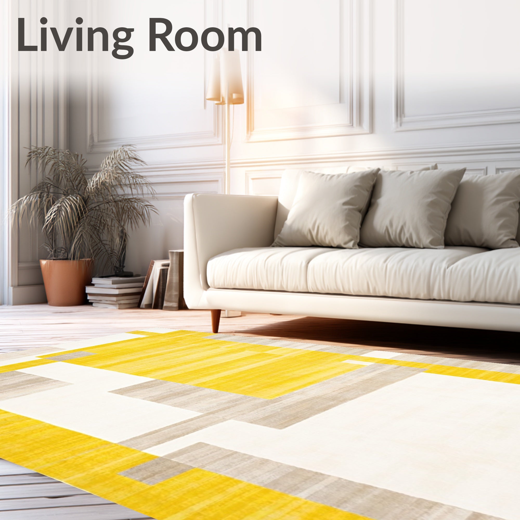 Ultra Soft Area Rug, Non Slip, Stain Resistant, Washable Area Rugs for Living Room, Bedroom, Sunrise Haze Collection Mellow Yellow & Sandstone Abstract(Yellow) Overview: