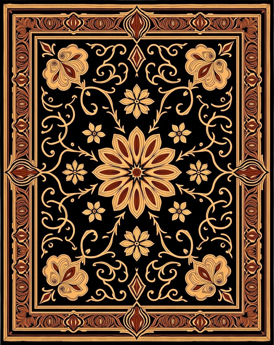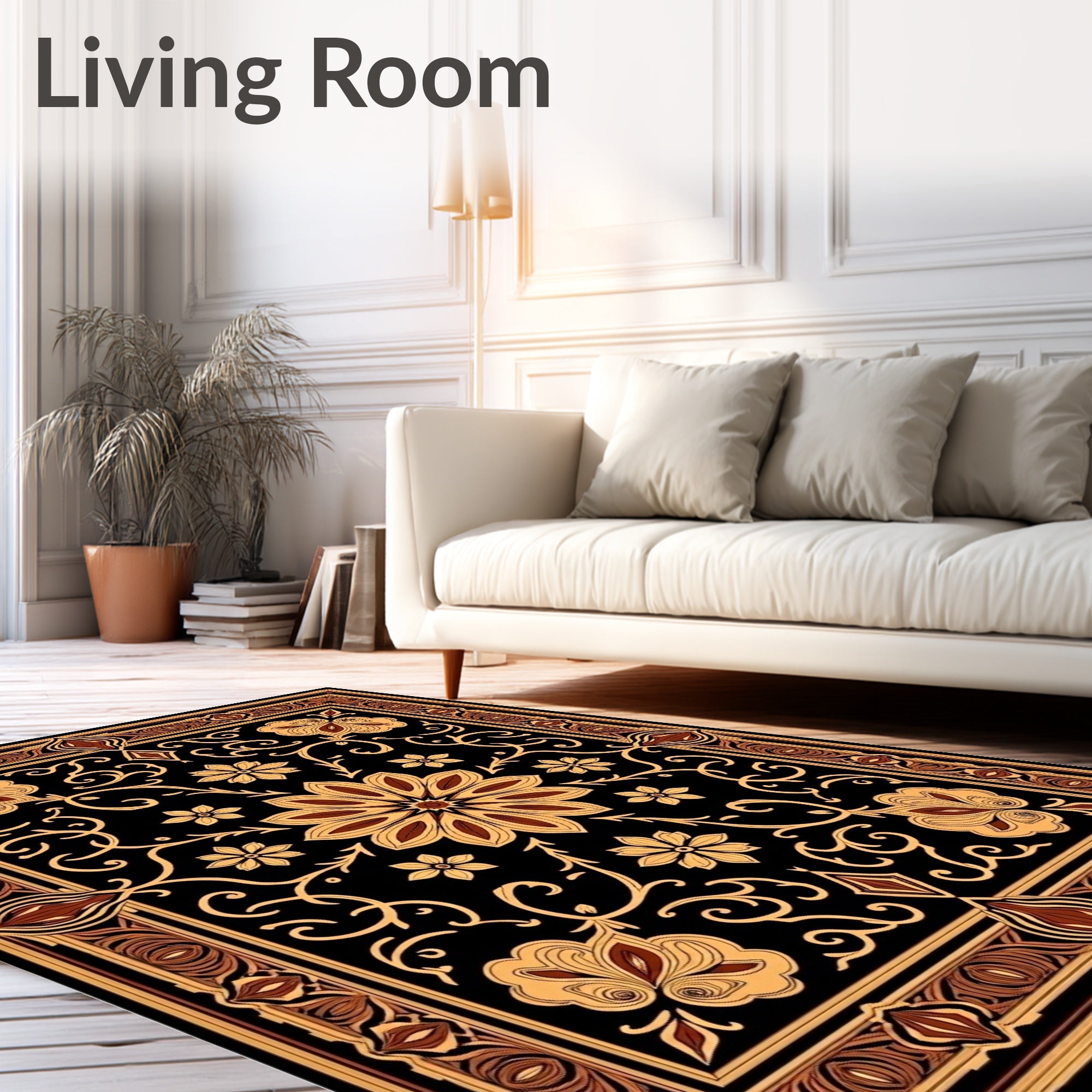 Ultra Soft Area Rug, Non Slip, Stain Resistant, Washable Area Rugs for Living Room, Bedroom, Sunset Medallion Interlocking Floral Motif(Black) Overview:
