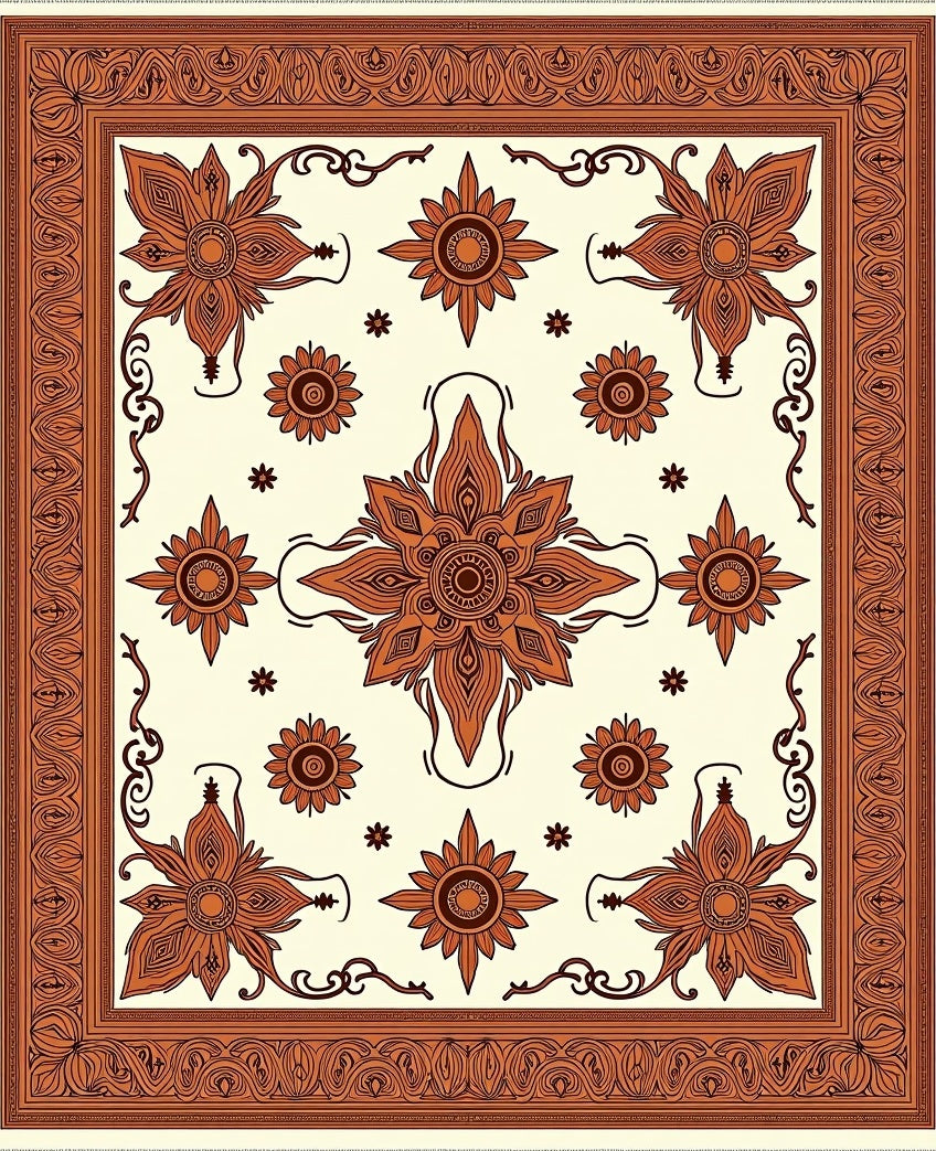 Sunset Medallion with Intricate Botanical Motifs(Brown)