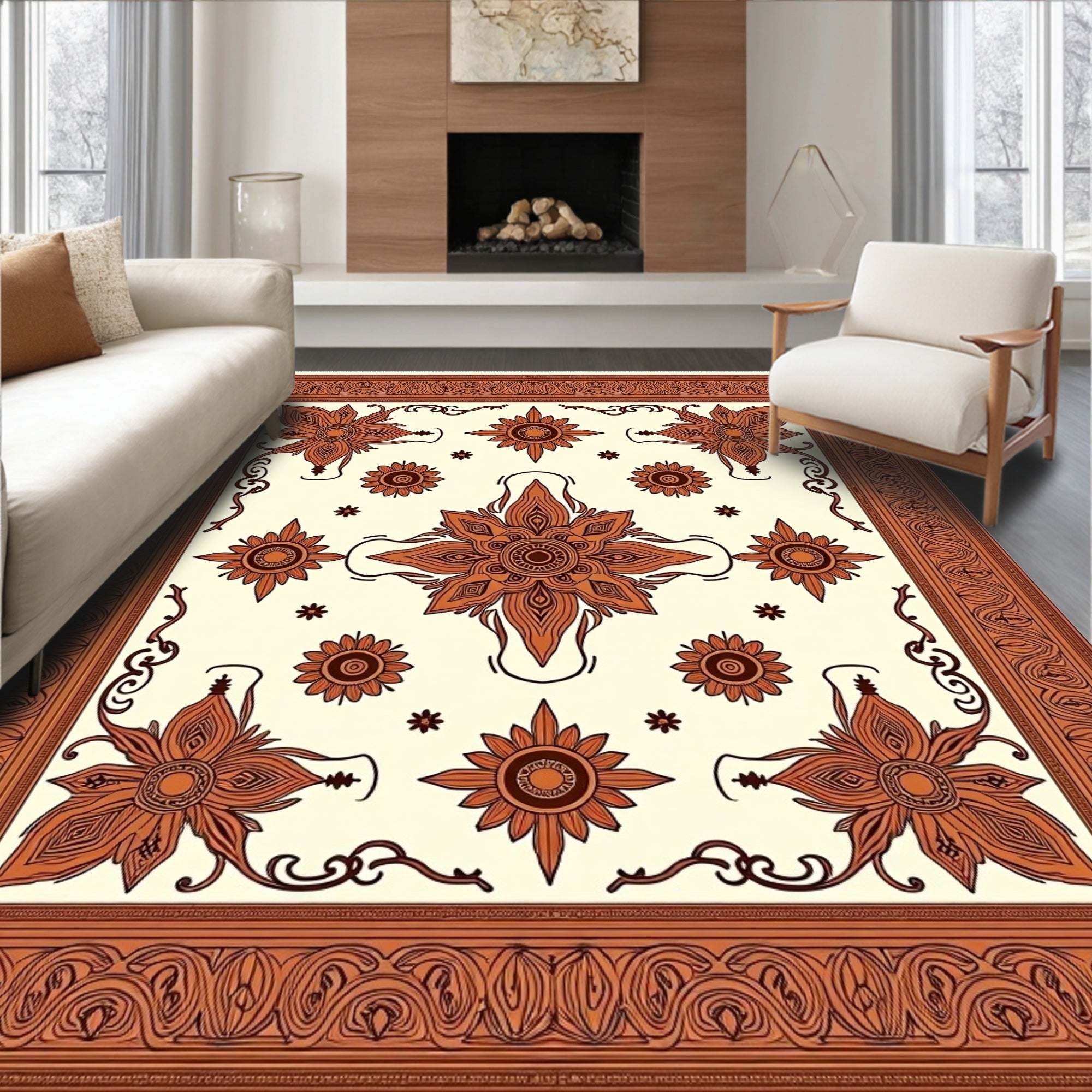 Flatwoven High Traffic Area Rug, Sunset Medallion with Intricate Botanical Motifs, Non Slip, Stain Resistant, Washable Area Rugs for Living Room, Bedroom (Brown) Overview: