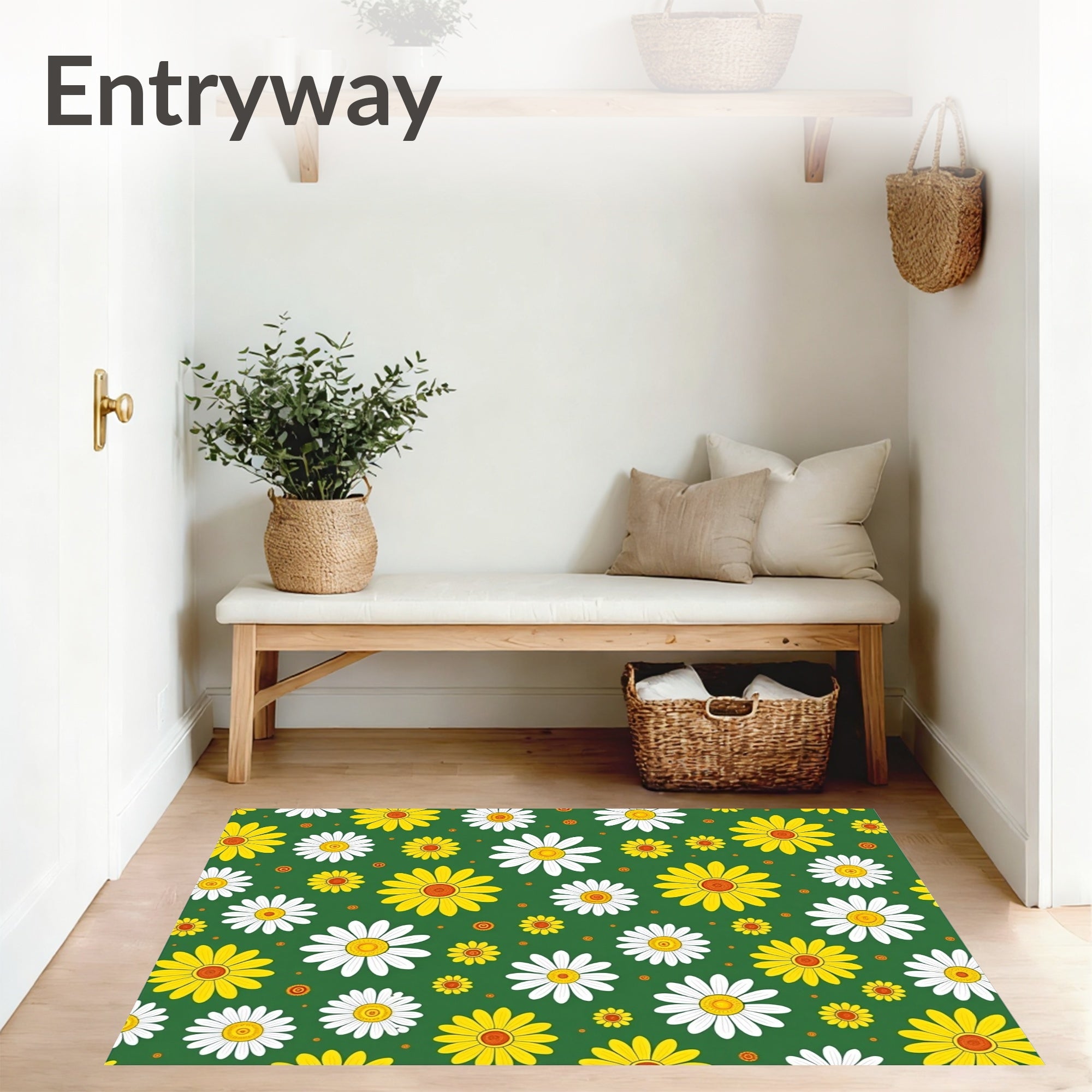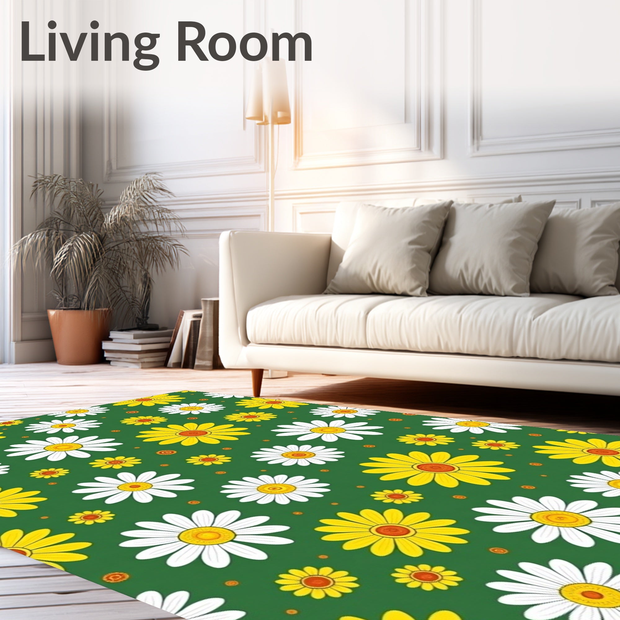 Ultra Soft Area Rug, Non Slip, Stain Resistant, Washable Area Rugs for Living Room, Bedroom, Sunshine Daisy Meadow Decorative(Green) Overview: