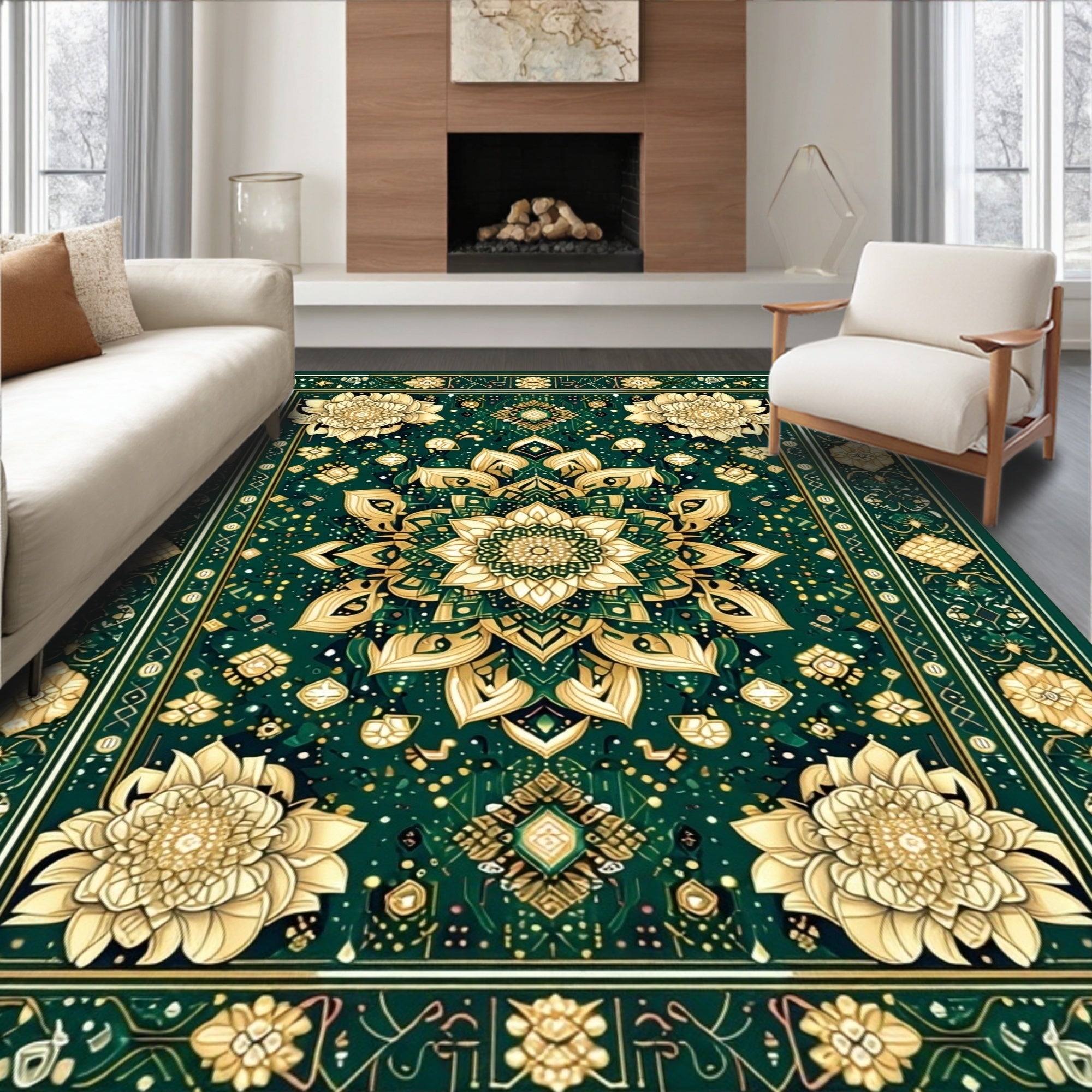 Flatwoven High Traffic Area Rug, Super Absorbent Mud Trapper Beige, Non Slip, Stain Resistant, Washable Area Rugs for Living Room, Bedroom (Green) Overview:
