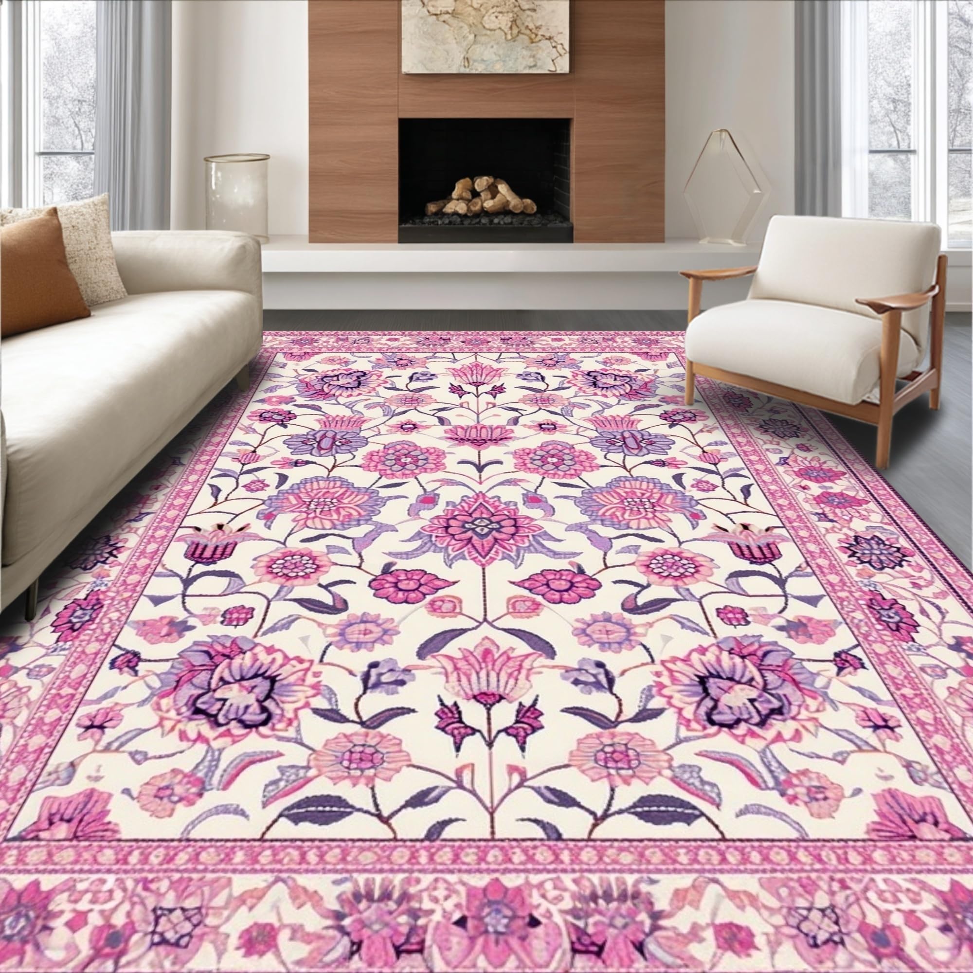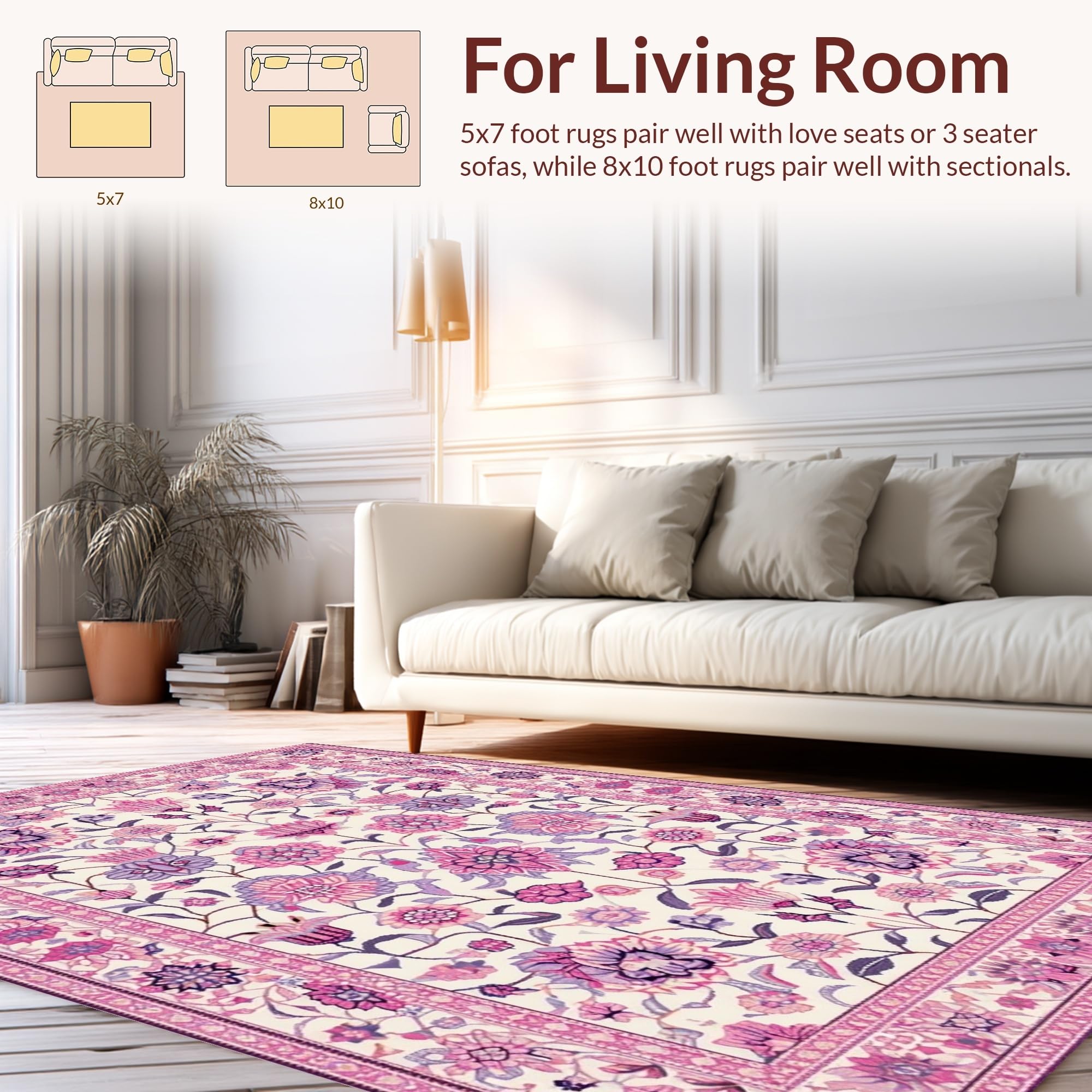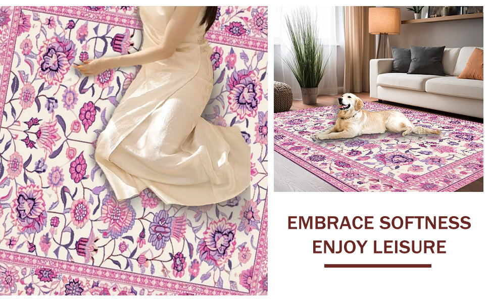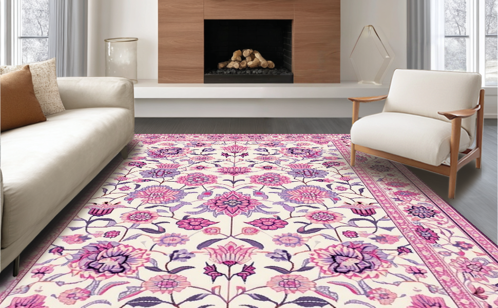 Ultra Soft Area Rug, Non Slip, Stain Resistant, Washable Area Rugs for Living Room, Bedroom, Sweet Colorful Leafy Arrangement(Ivory) Overview:
