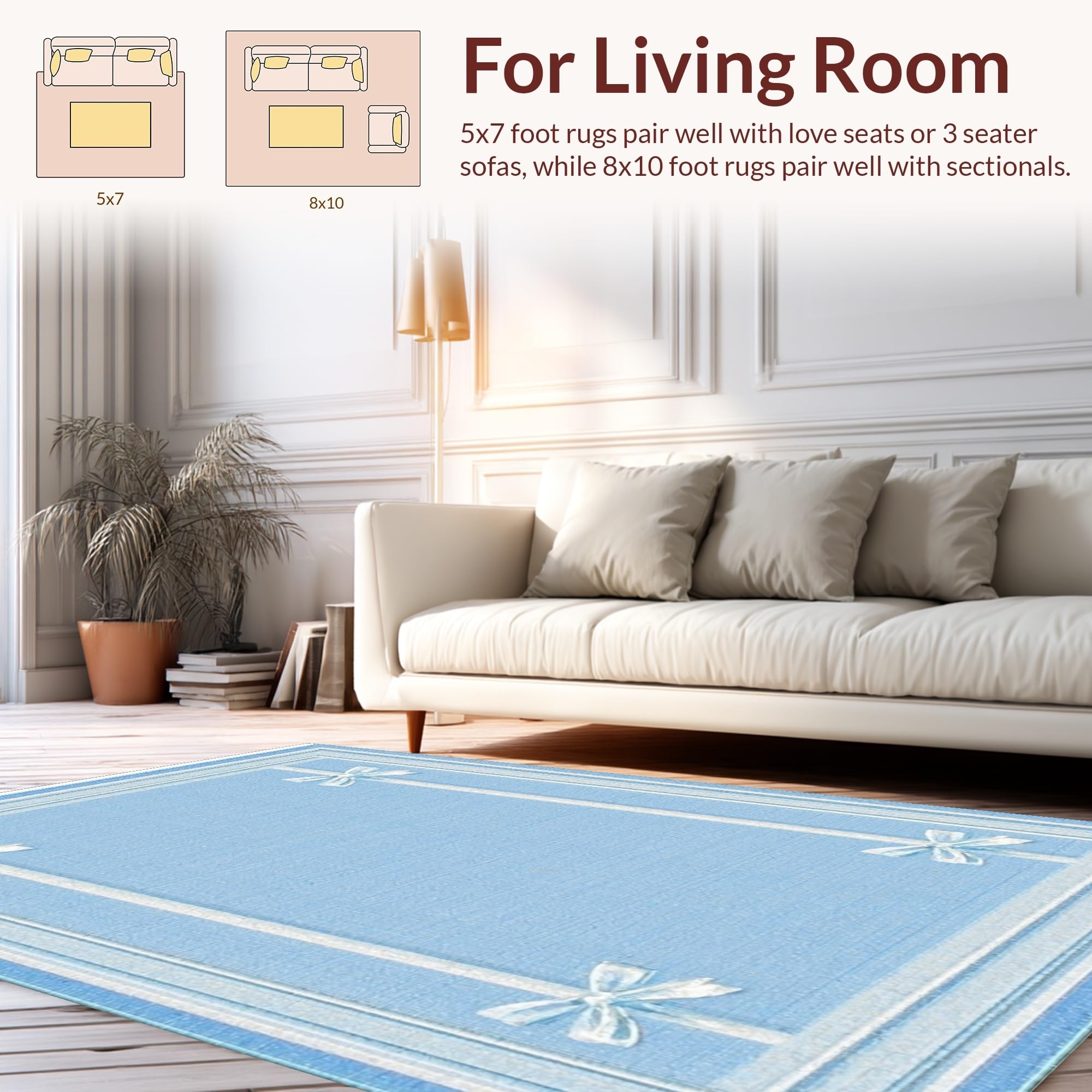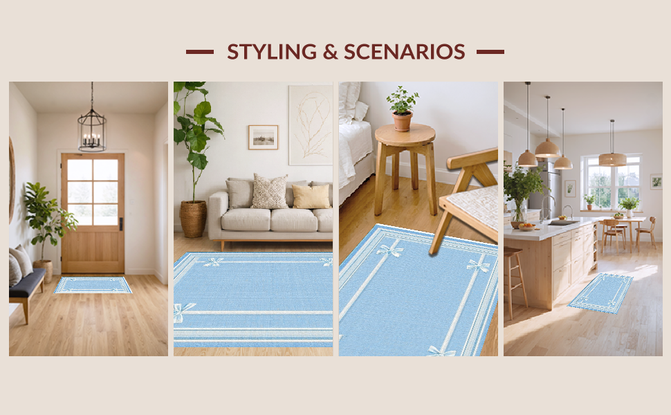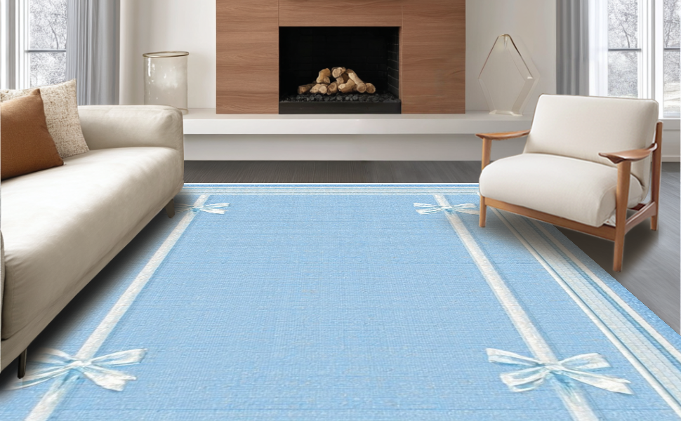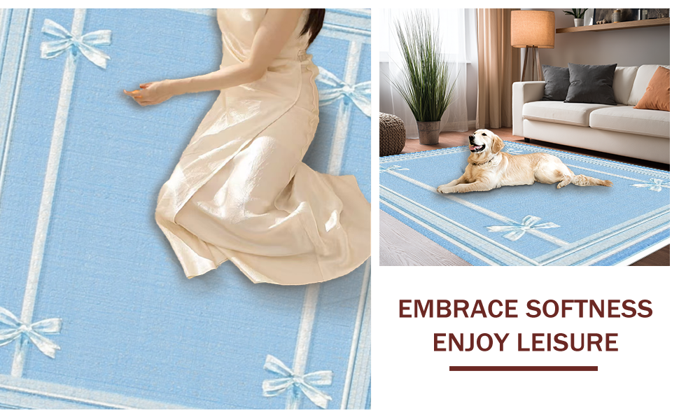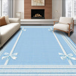Ultra Soft Area Rug, Non Slip, Stain Resistant, Washable Area Rugs for Living Room, Bedroom, Sweet Ribbon Accent Rug Preppy Decor Coquette Style Chic Bathroom Carpet(Blue) Overview: