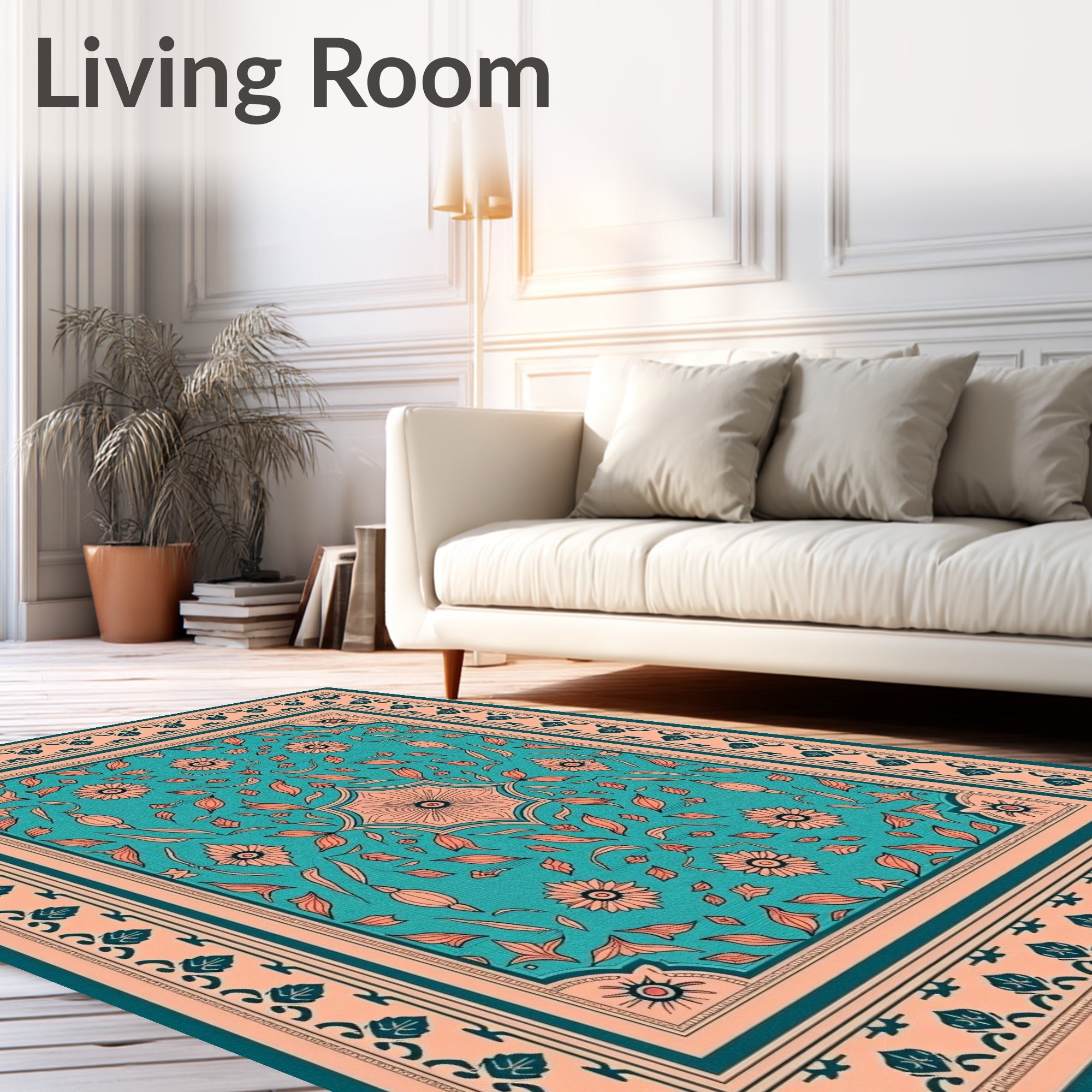 Ultra Soft Area Rug, Non Slip, Stain Resistant, Washable Area Rugs for Living Room, Bedroom, Symphony Mosaic Treasure Revival Exquisite(Blue) Overview: