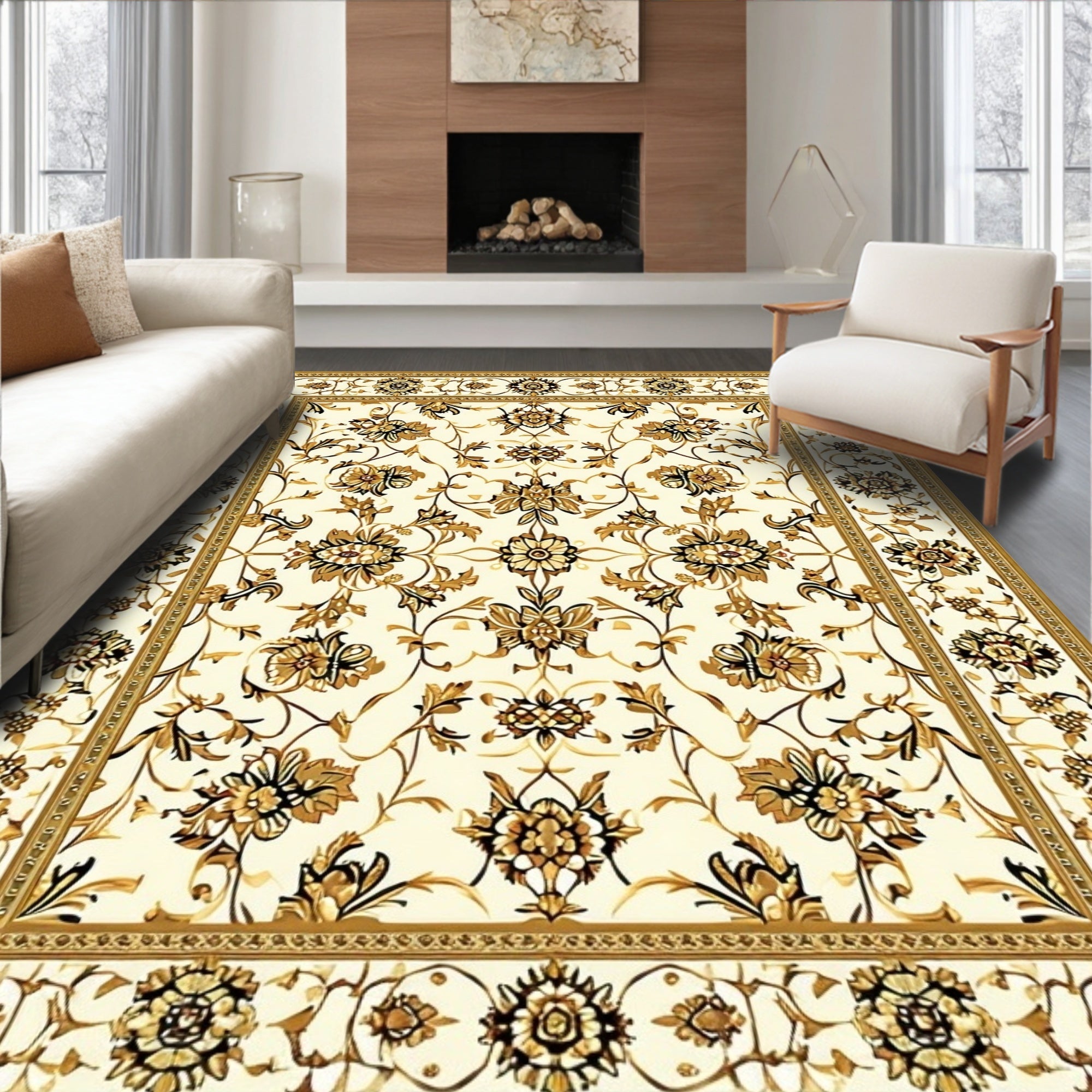 Ultra Soft Area Rug, Non Slip, Stain Resistant, Washable Area Rugs for Living Room, Bedroom, Tan and Gold Placemat for Dining(Beige) Overview: