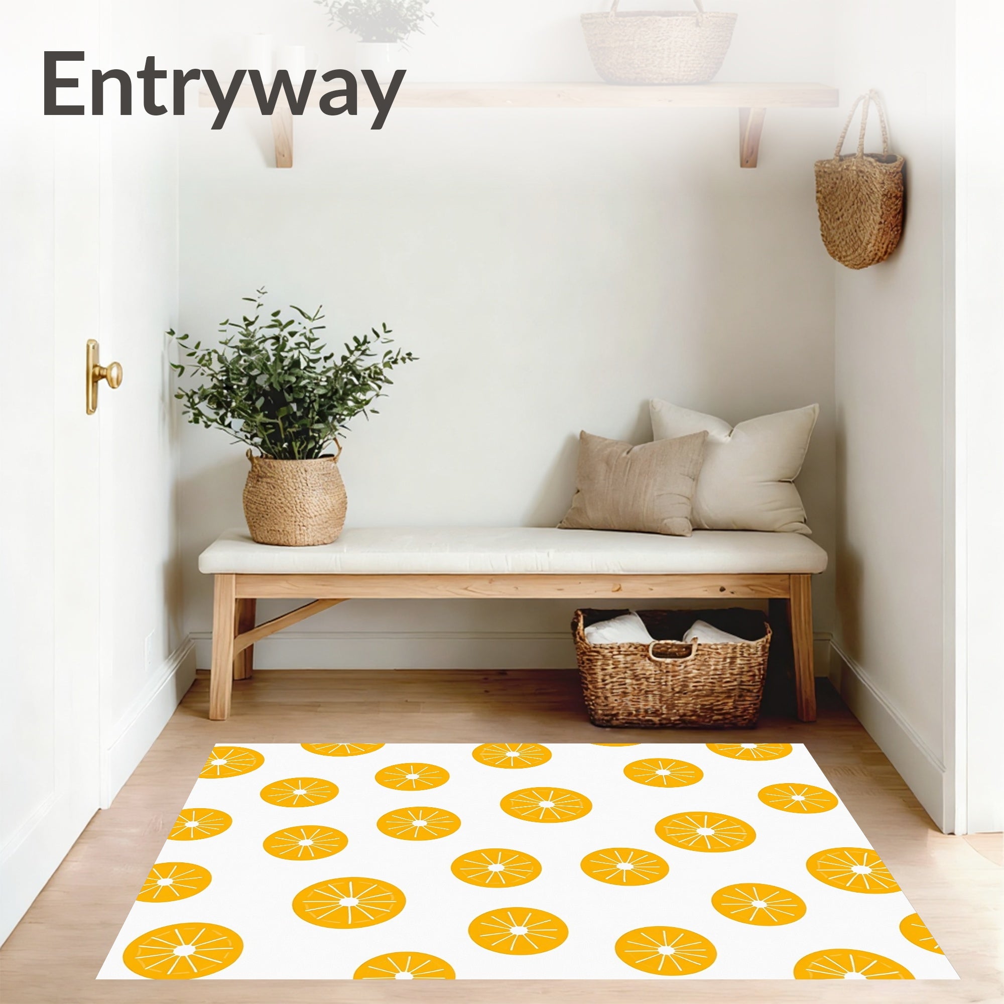 Ultra Soft Area Rug, Non Slip, Stain Resistant, Washable Area Rugs for Living Room, Bedroom, Tangy Slice Juicy Motif Elegant Professional Standing Support(Yellow) Overview: