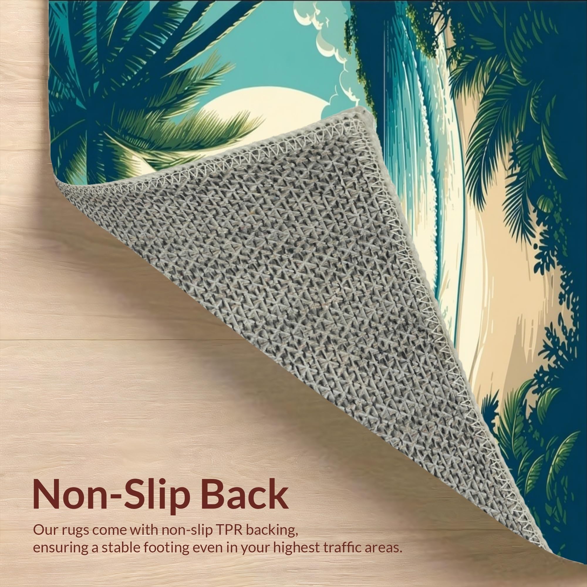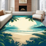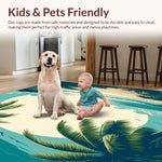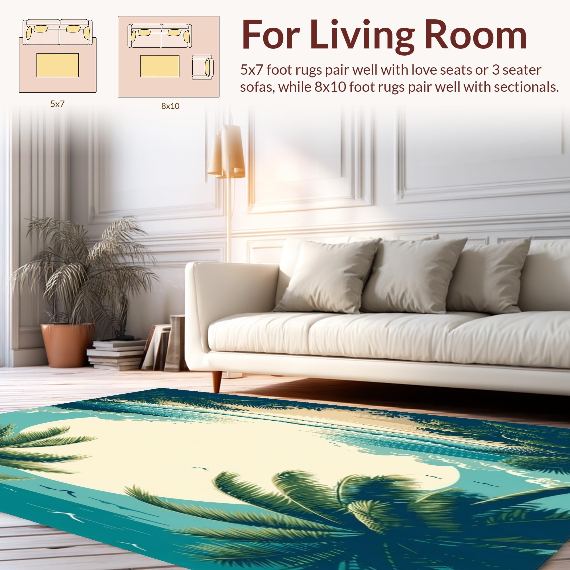 Ultra Soft Area Rug, Non Slip, Stain Resistant, Washable Area Rugs for Living Room, Bedroom, Teal Beige Tropical Coconut Tree Beach Scenery Indoor(Blue) Overview: