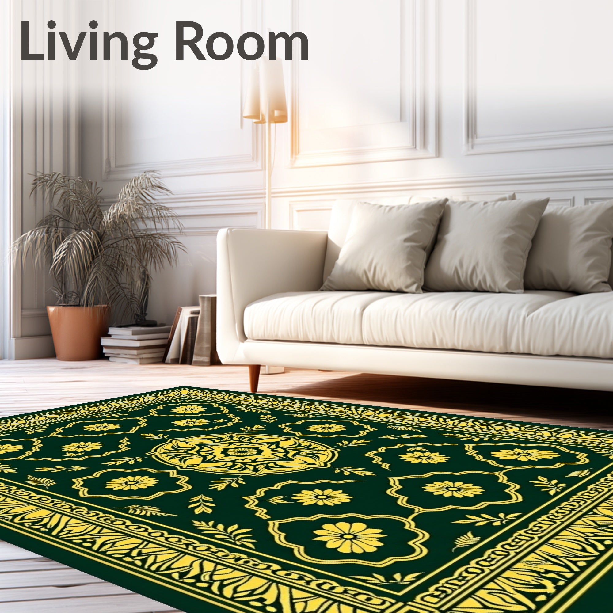 Ultra Soft Area Rug, Non Slip, Stain Resistant, Washable Area Rugs for Living Room, Bedroom, Tessellated Mosaic with Repeating Tile Motifs(Green) Overview: