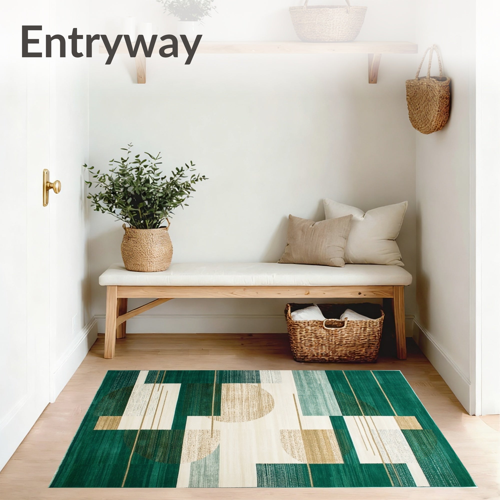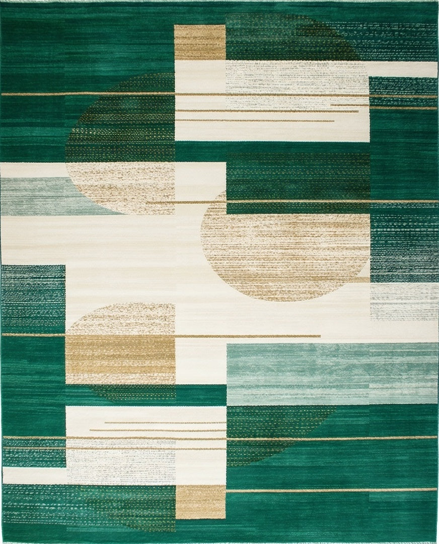 Ultra Soft Area Rug, Non Slip, Stain Resistant, Washable Area Rugs for Living Room, Bedroom, Textured Beige With Abstract Shapes And Deep Green Highlights(Green) Overview: