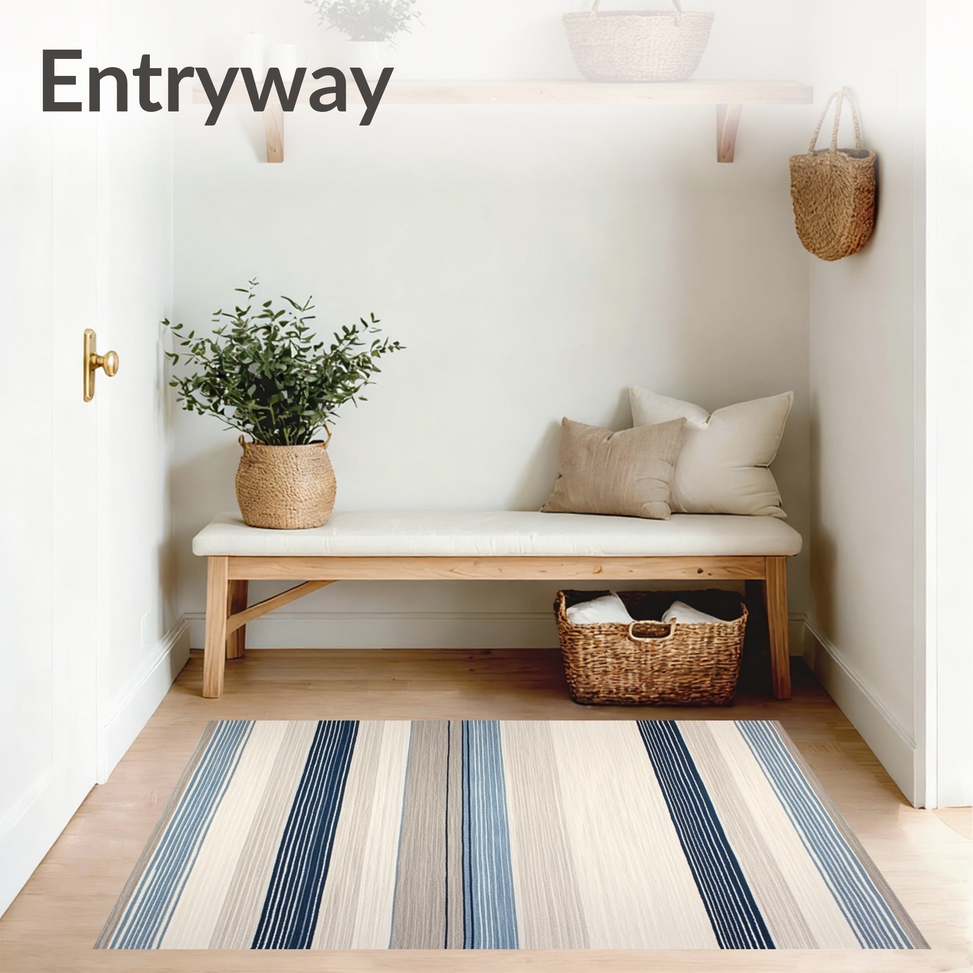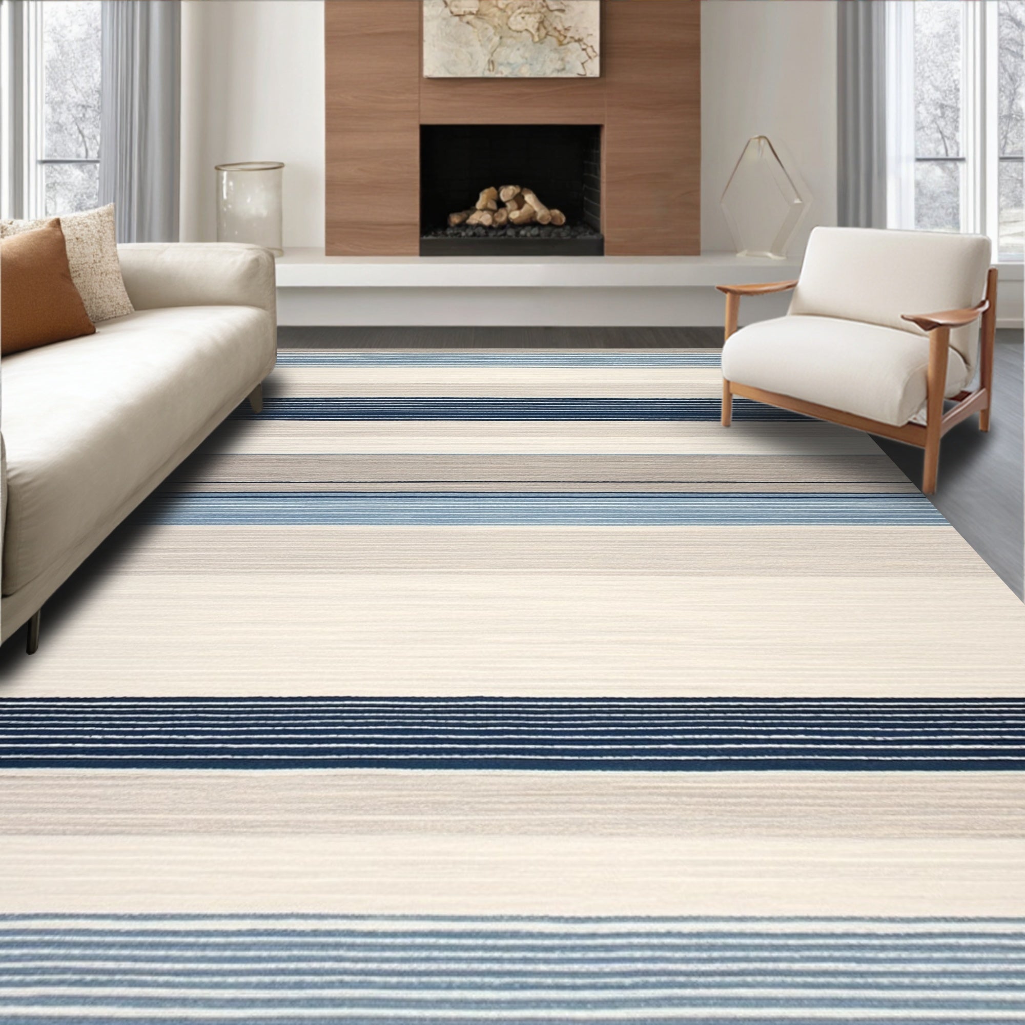 Ultra Soft Area Rug, Non Slip, Stain Resistant, Washable Area Rugs for Living Room, Bedroom, Textured Stripe Beige Blue Area(Beige) Overview:
