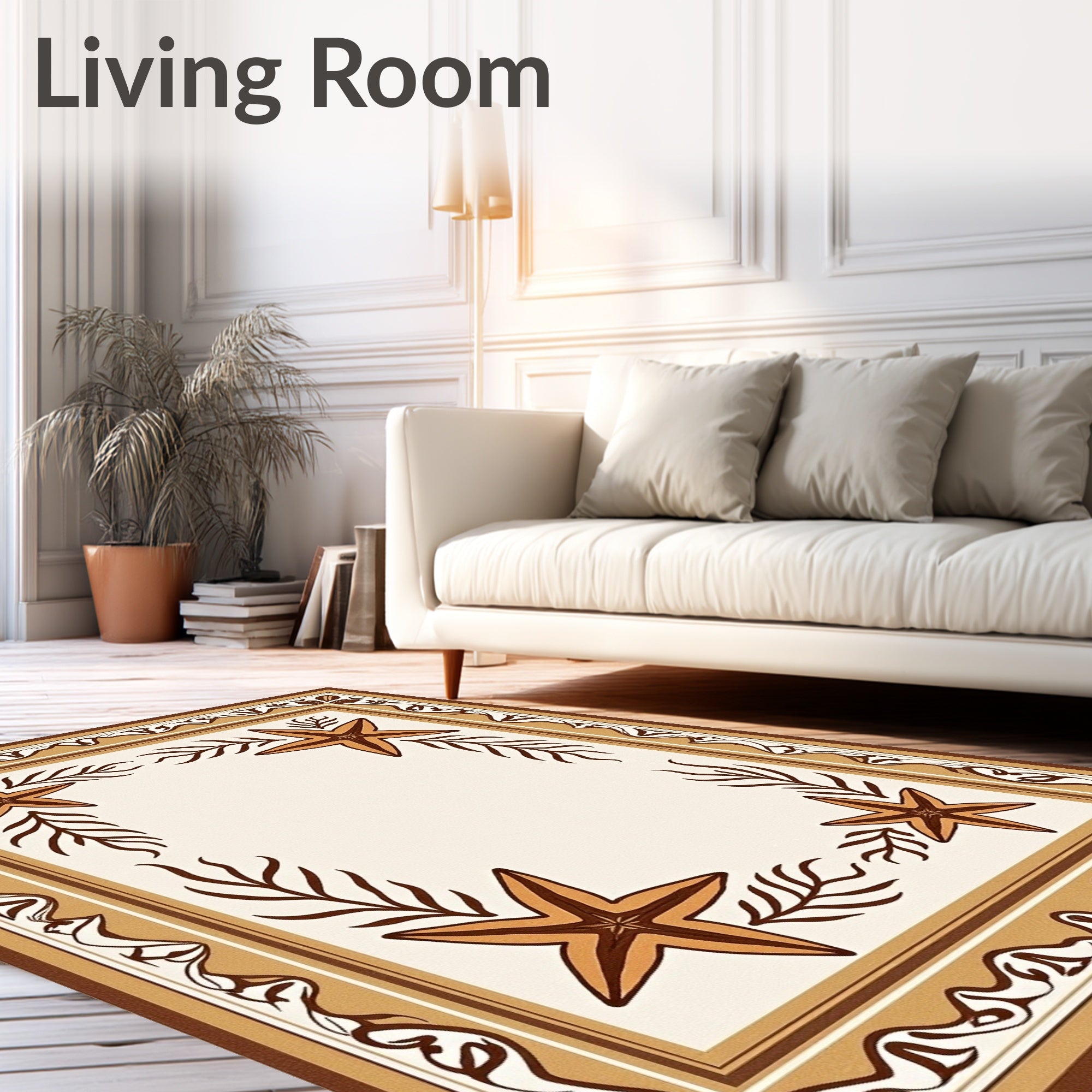 Ultra Soft Area Rug, Non Slip, Stain Resistant, Washable Area Rugs for Living Room, Bedroom, Tidal Sanctuary Marine Ecosystem Arrangement(Beige) Overview: